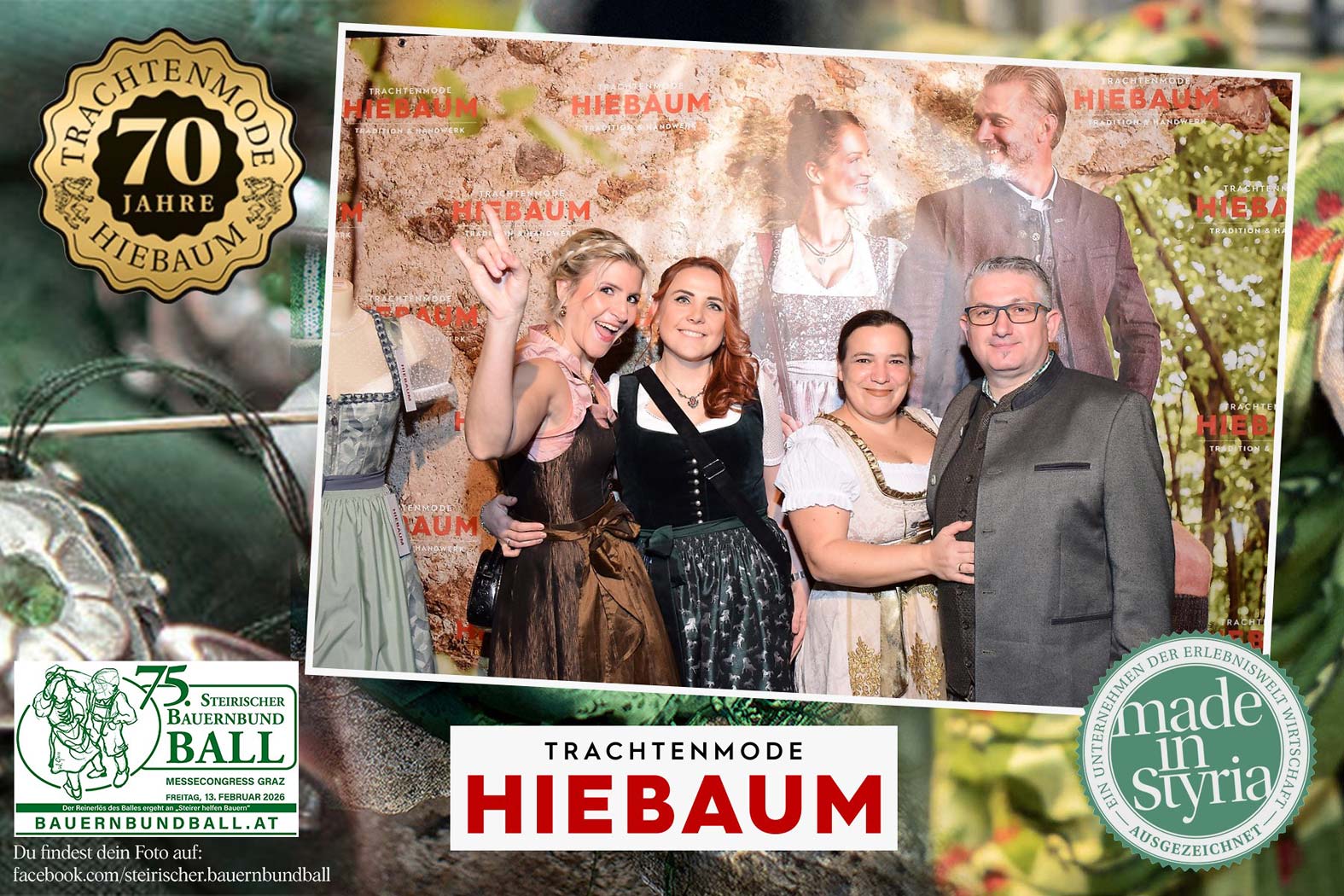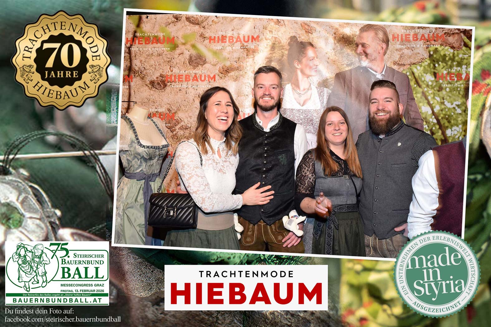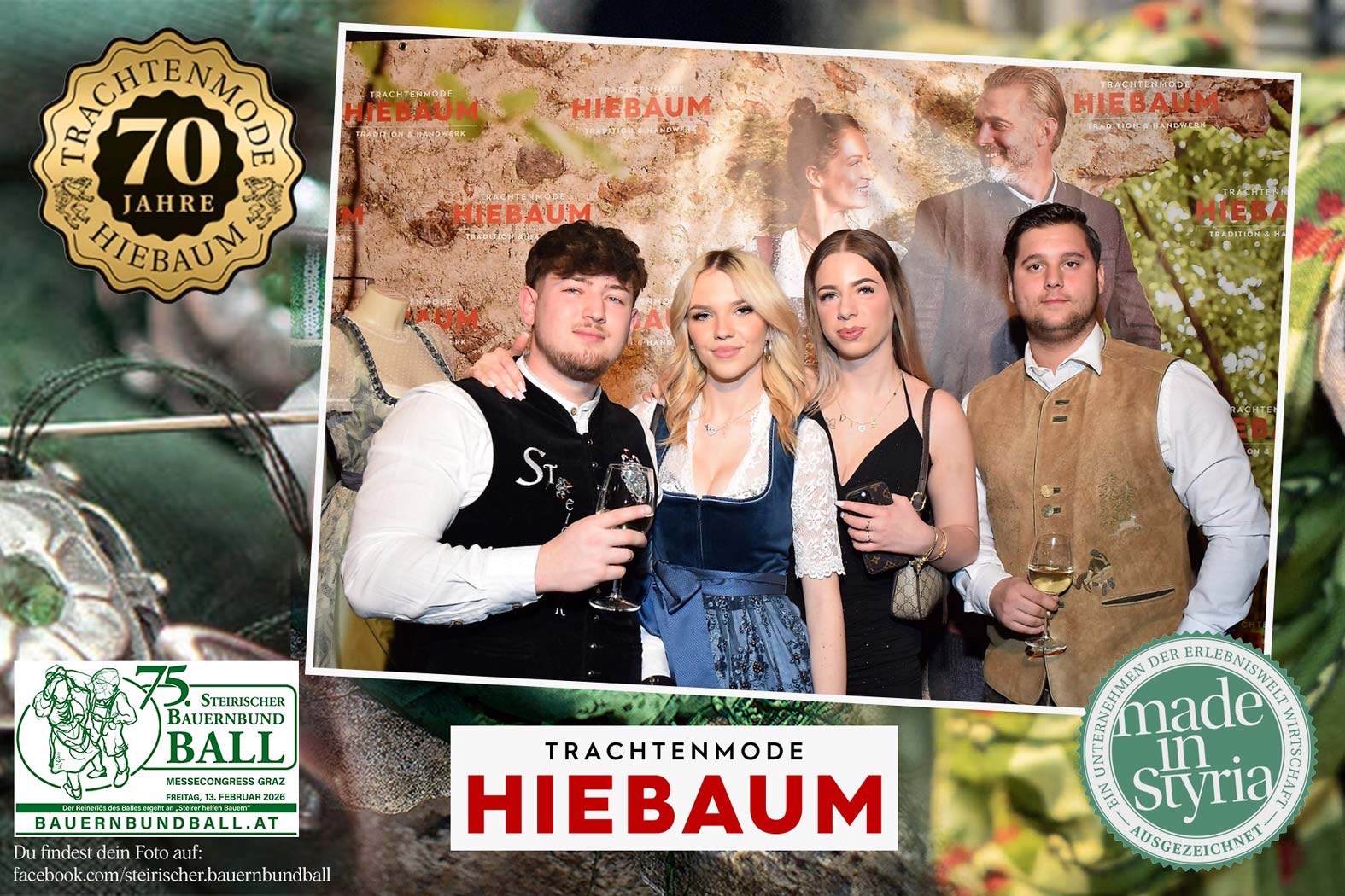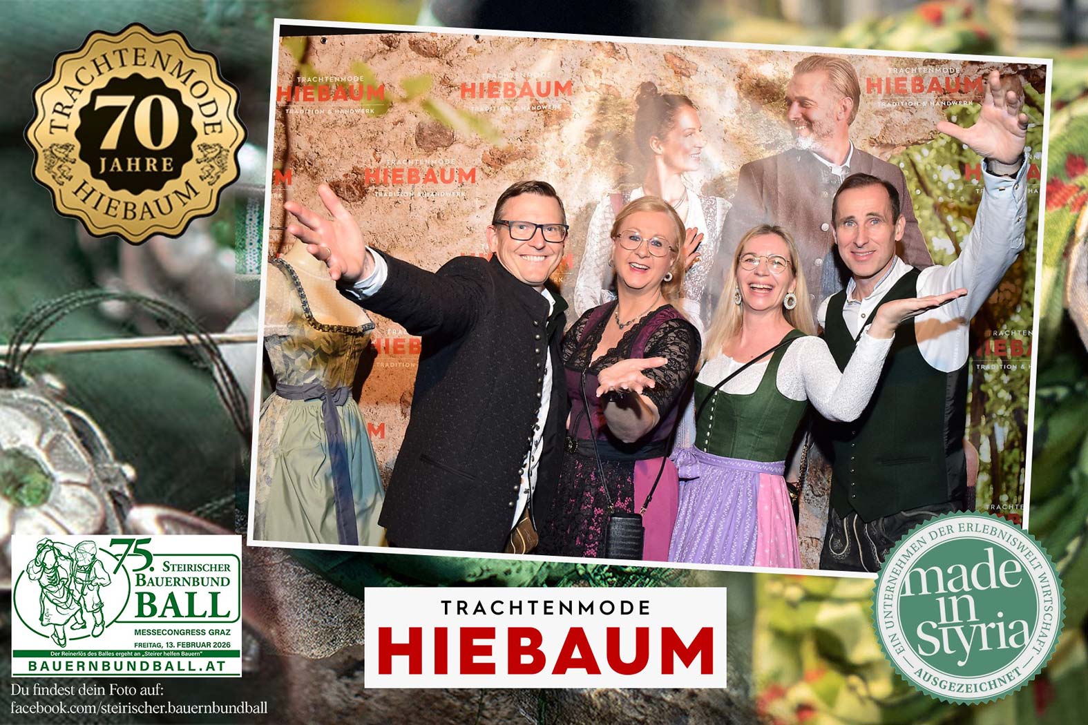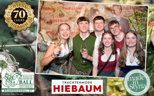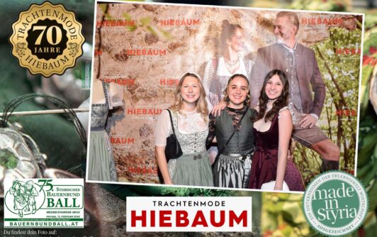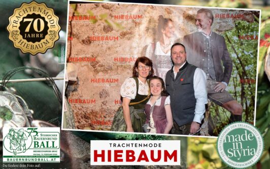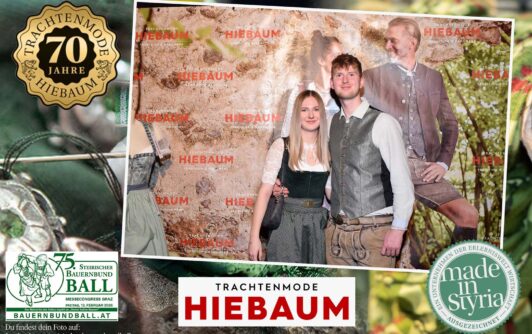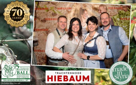 Trachtenmode Hiebaum war offizieller Partner des steirischen Bauernbundballs 2026. Zahlreiche Besucher haben sich in unserer Fotobox am Bauernbundball fotografieren lassen.