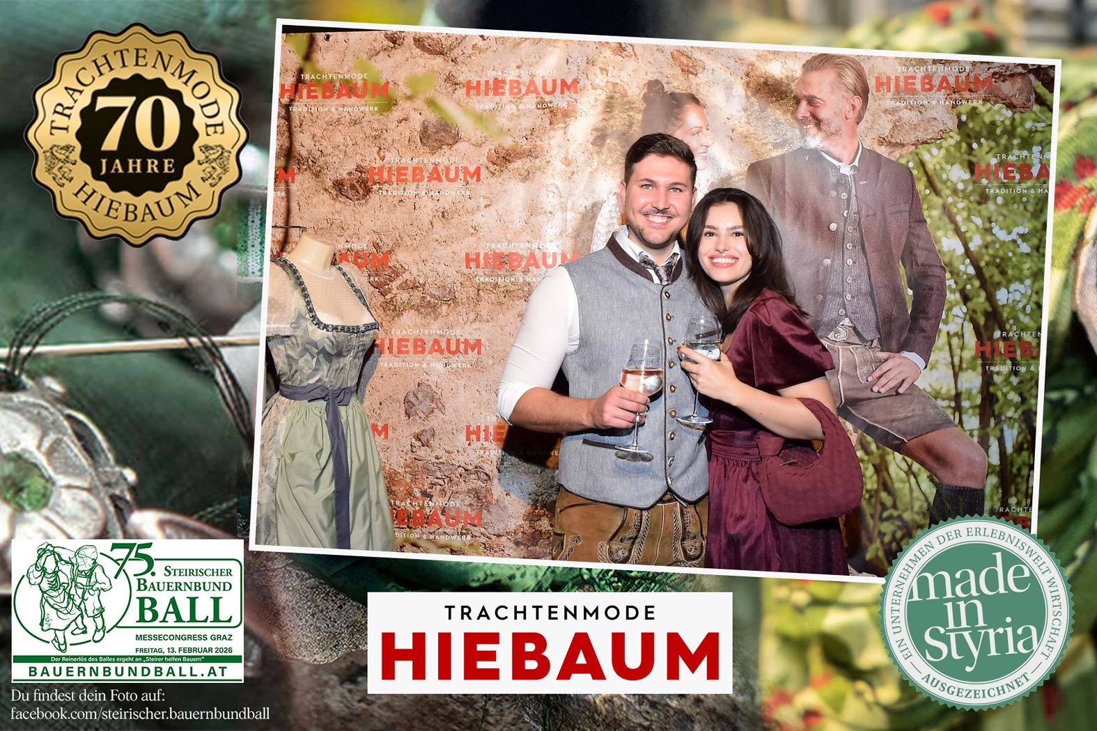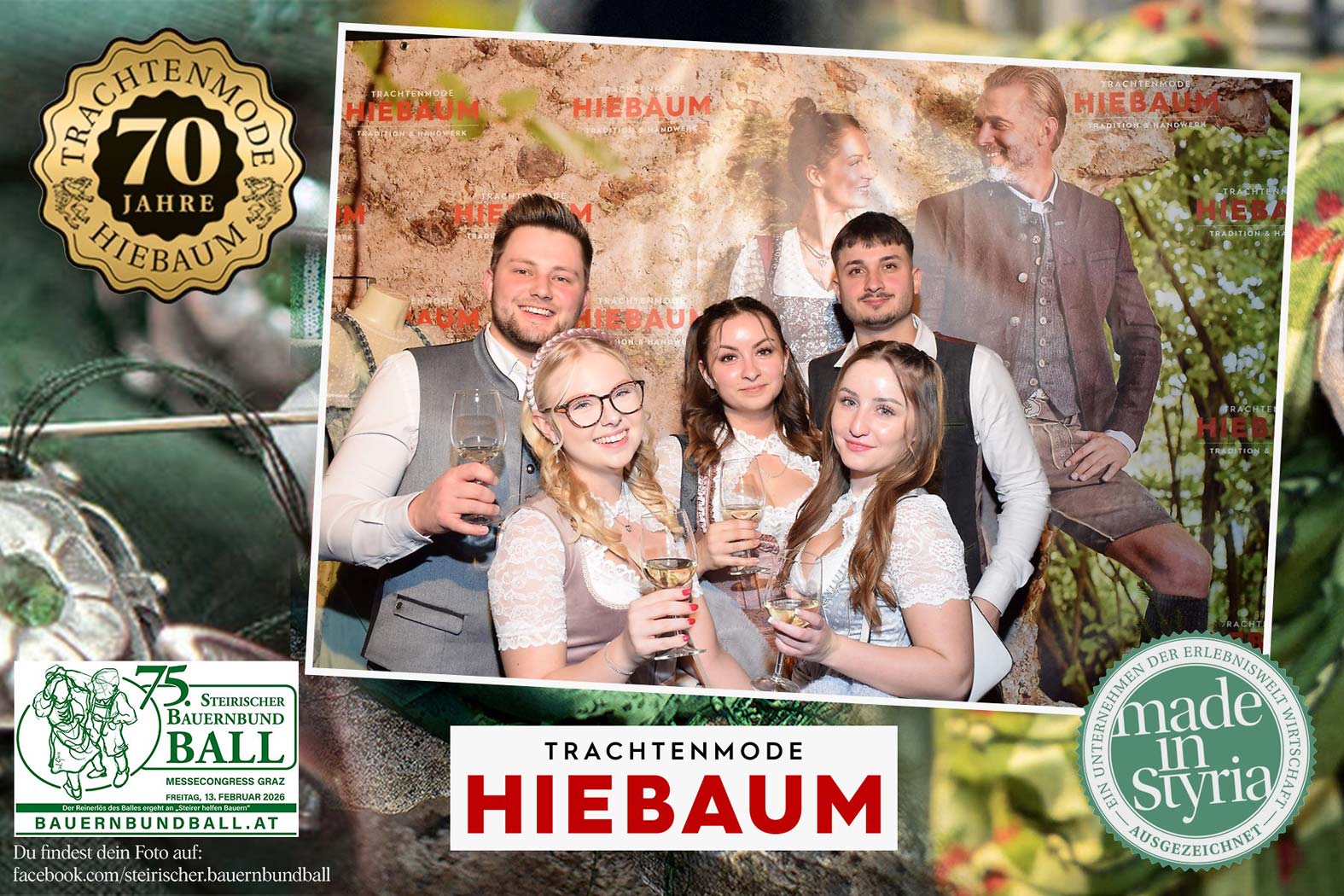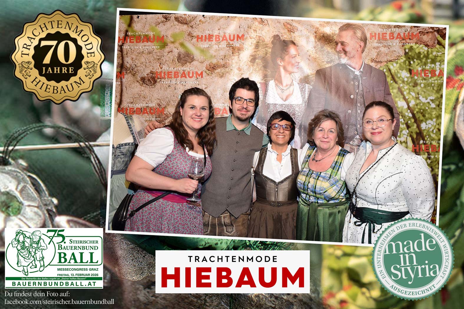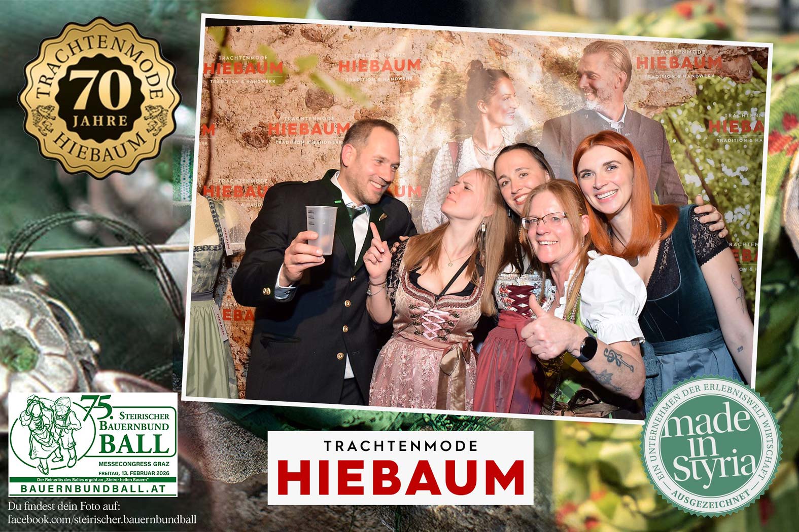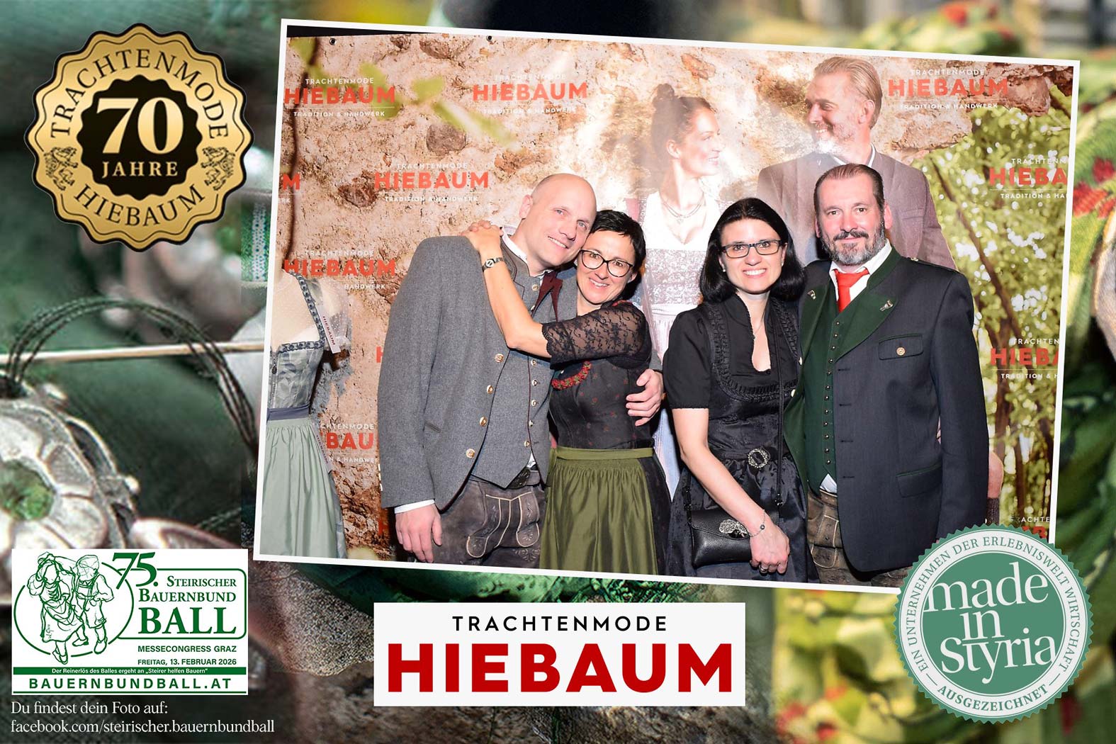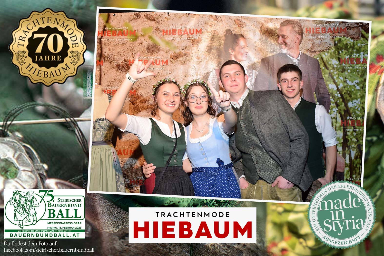 Trachtenmode Hiebaum war offizieller Partner des steirischen Bauernbundballs 2026. Zahlreiche Besucher haben sich in unserer Fotobox am Bauernbundball fotografieren lassen.