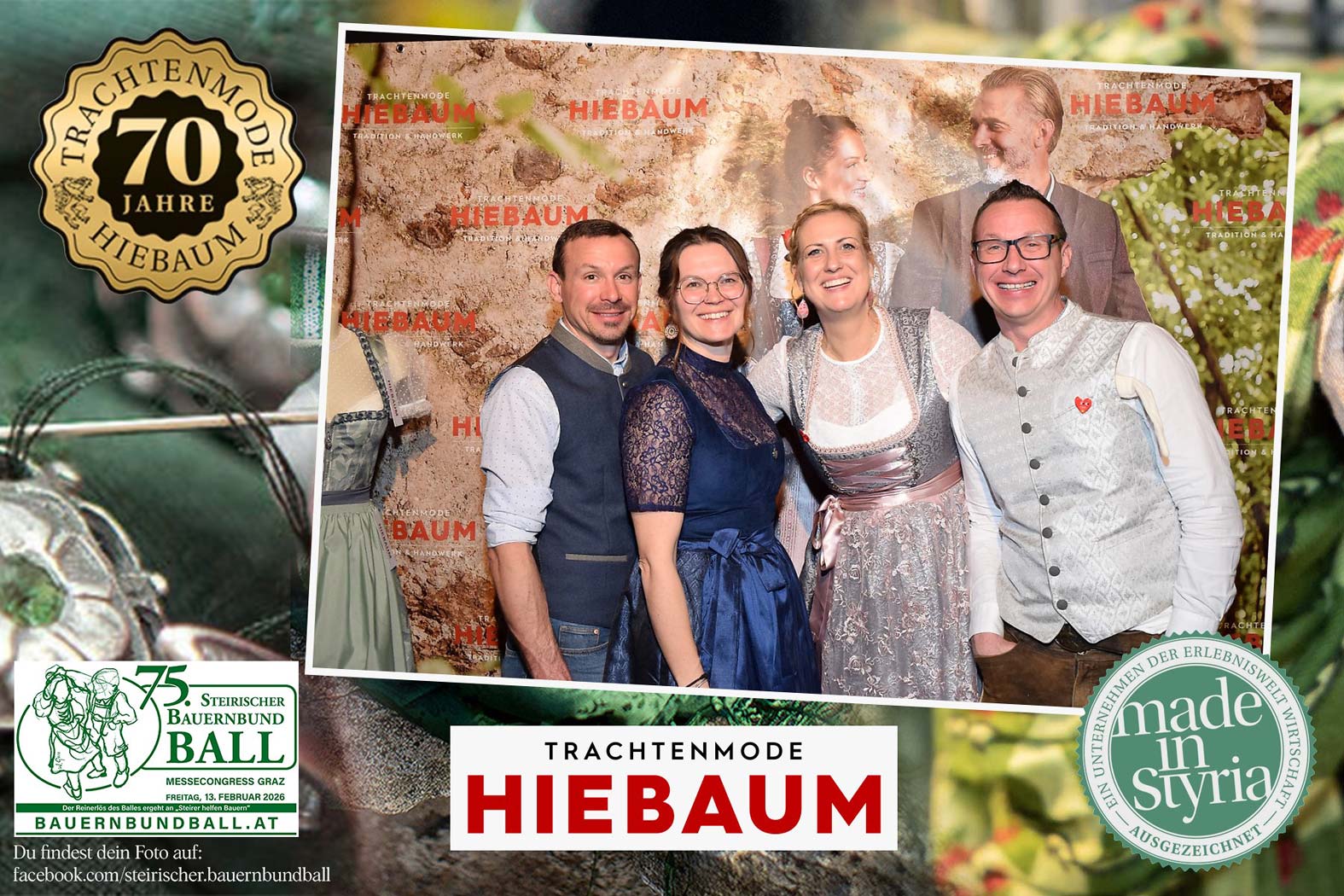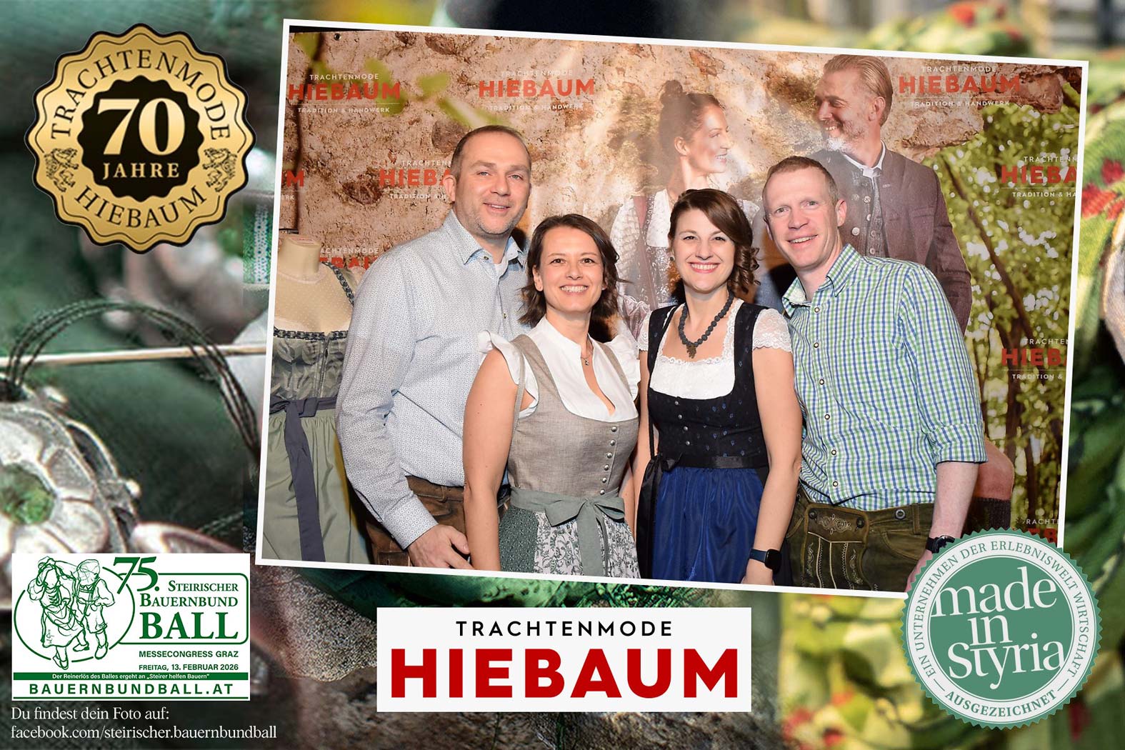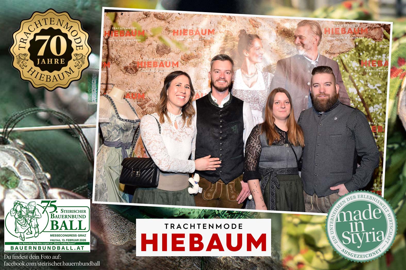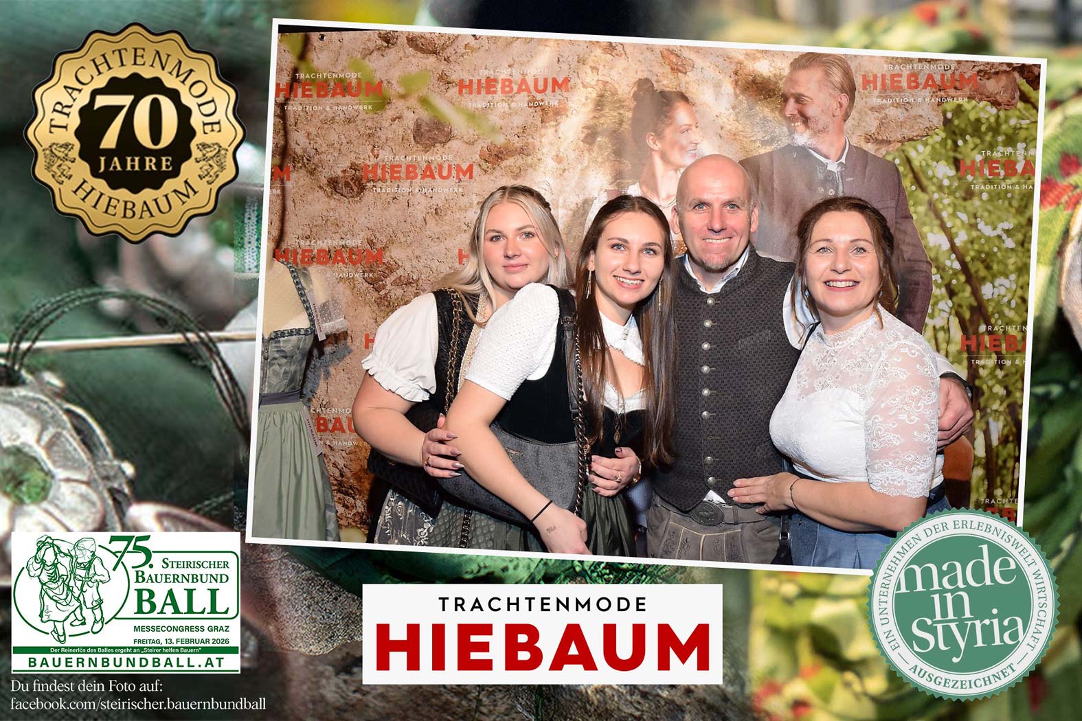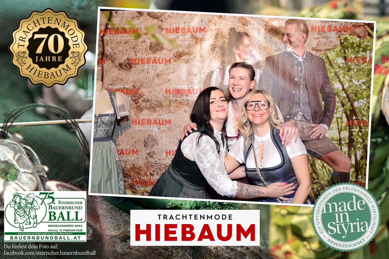 Trachtenmode Hiebaum war offizieller Partner des steirischen Bauernbundballs 2026. Zahlreiche Besucher haben sich in unserer Fotobox am Bauernbundball fotografieren lassen.