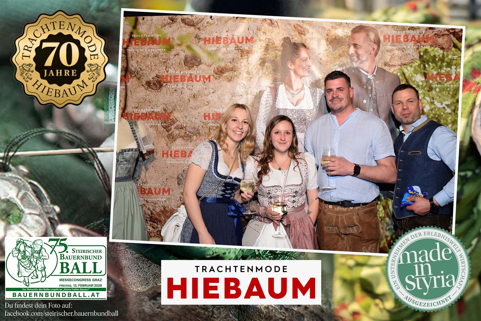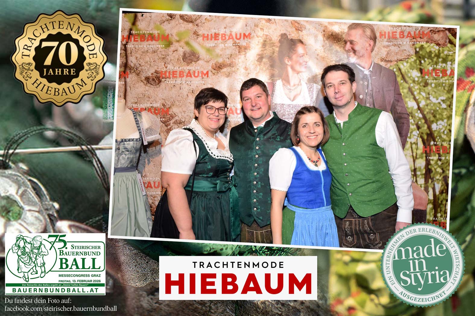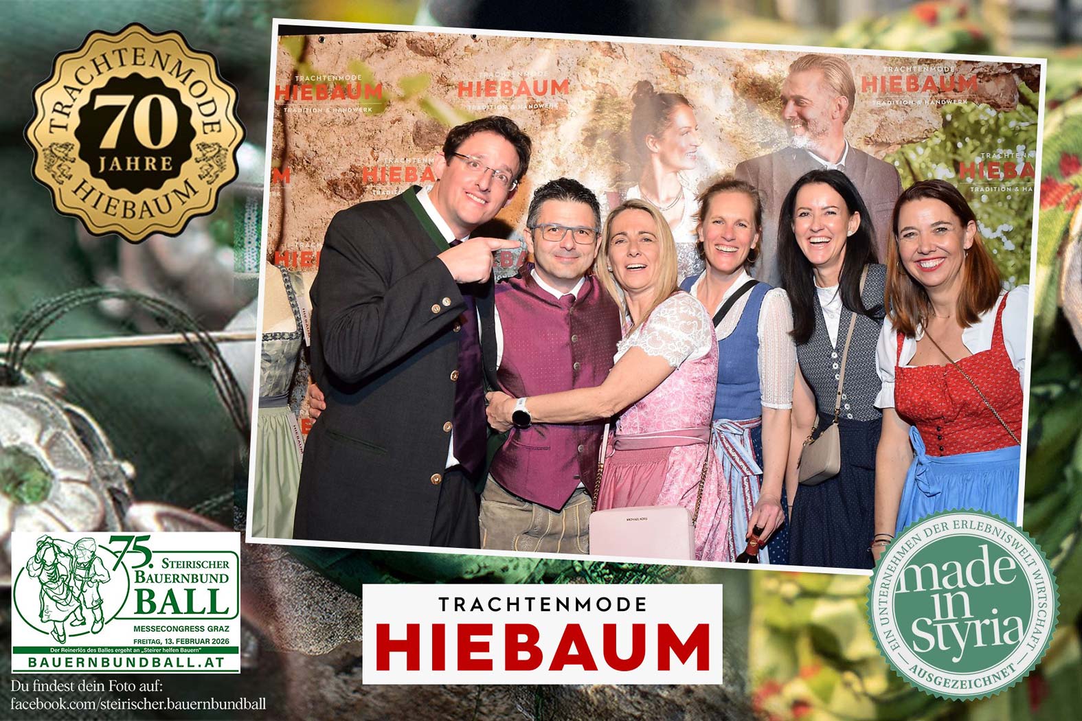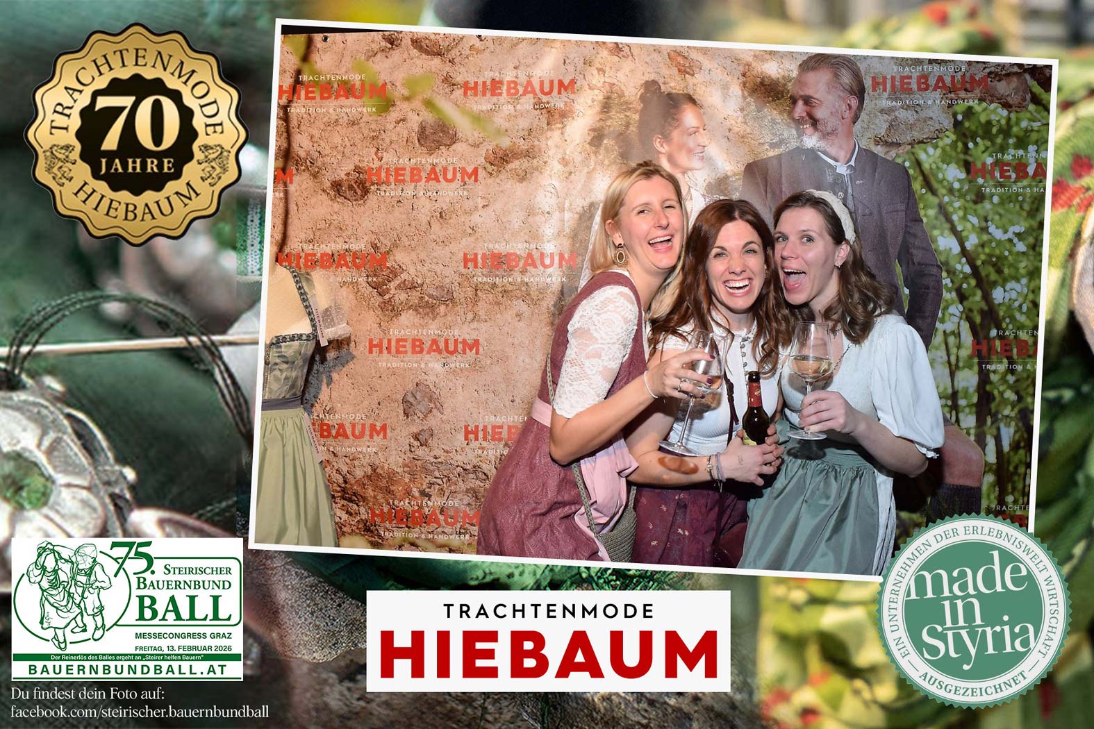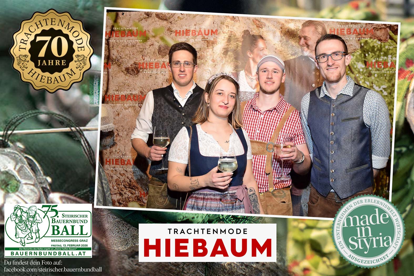 Trachtenmode Hiebaum war offizieller Partner des steirischen Bauernbundballs 2026. Zahlreiche Besucher haben sich in unserer Fotobox am Bauernbundball fotografieren lassen.