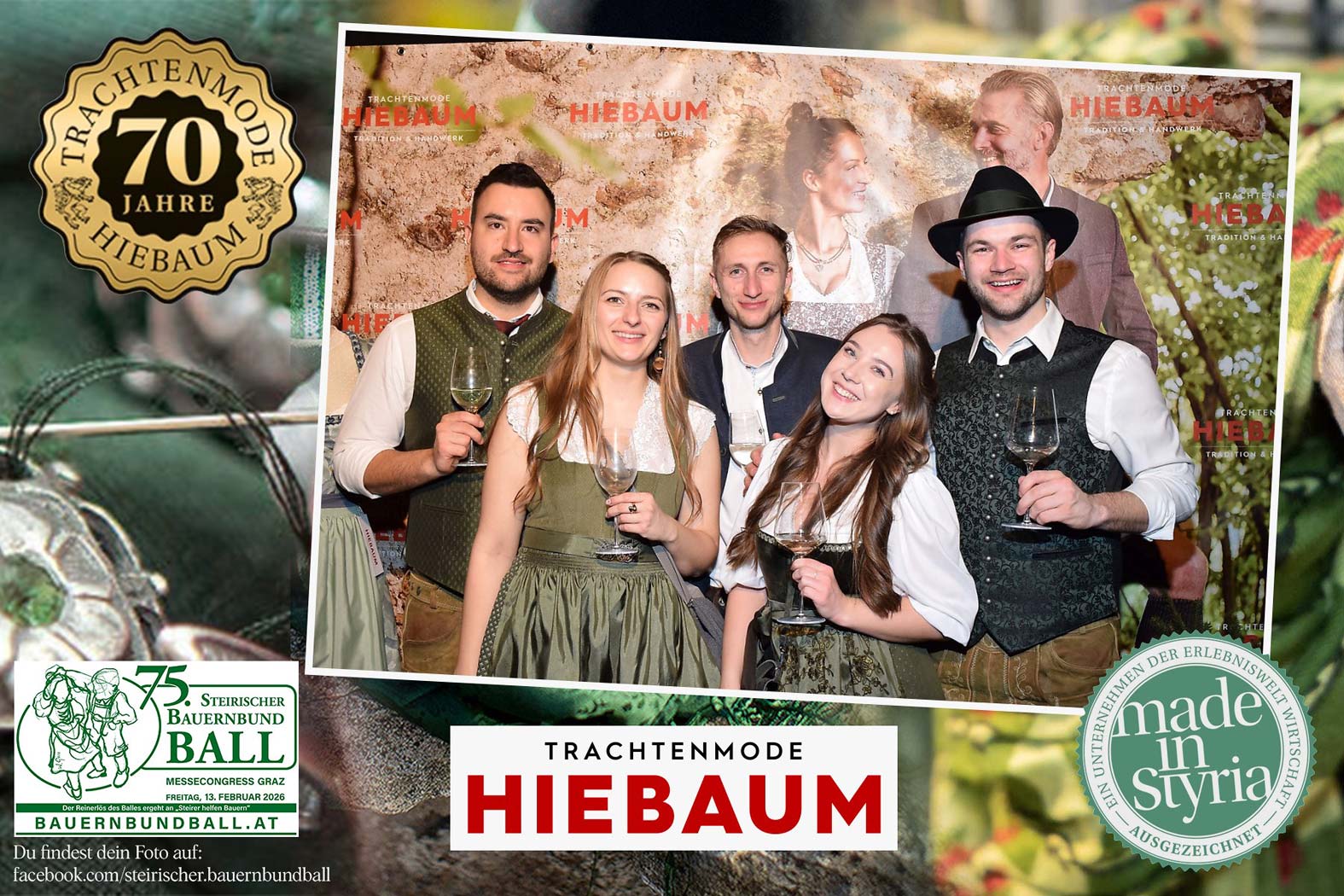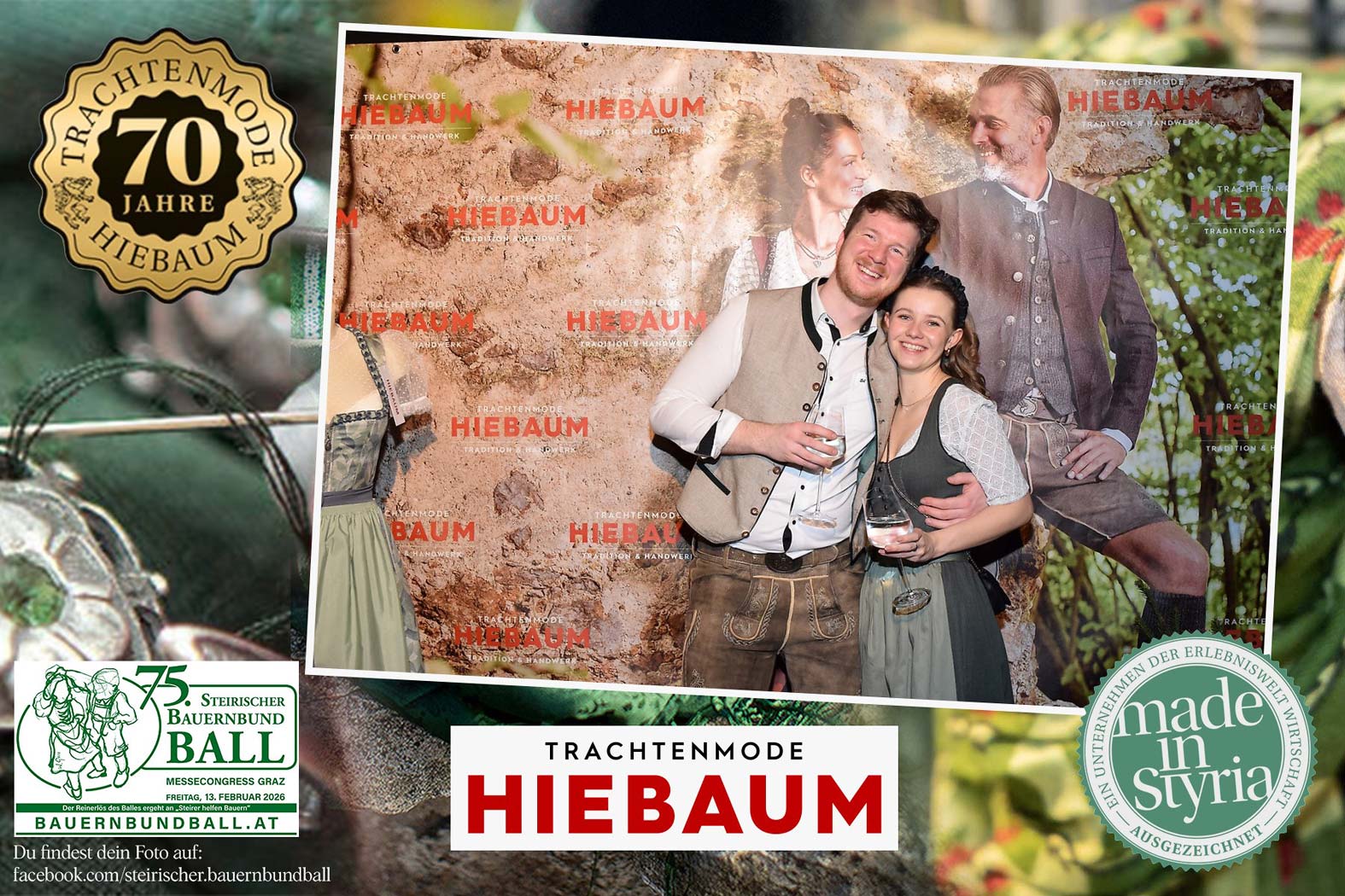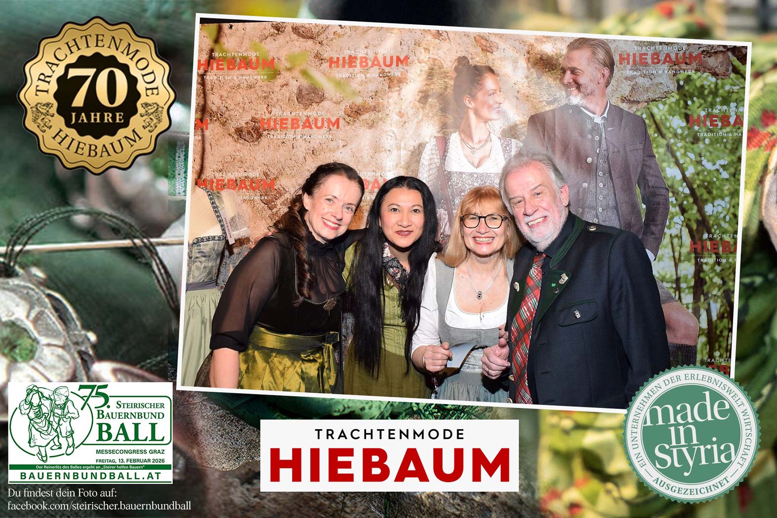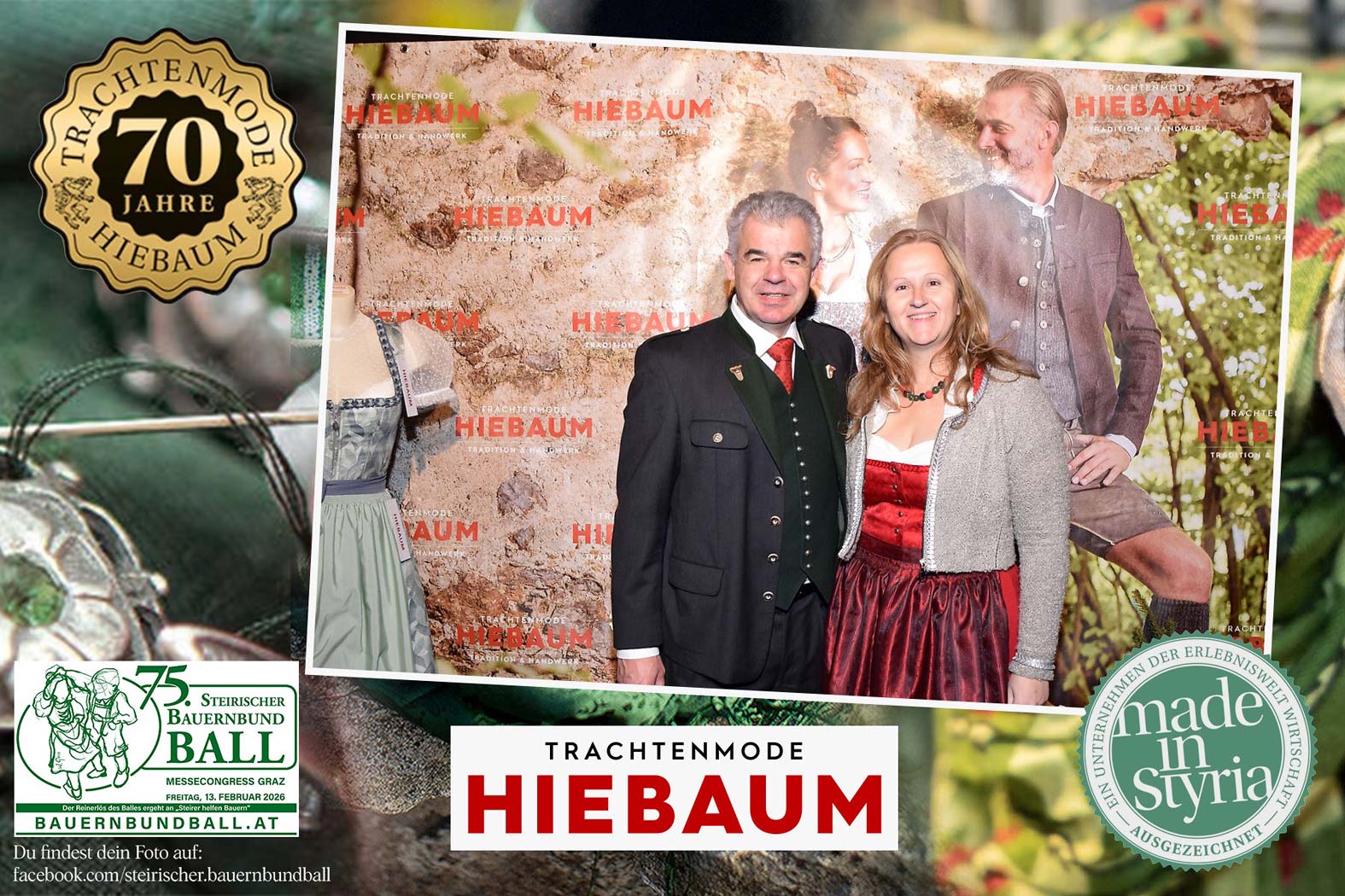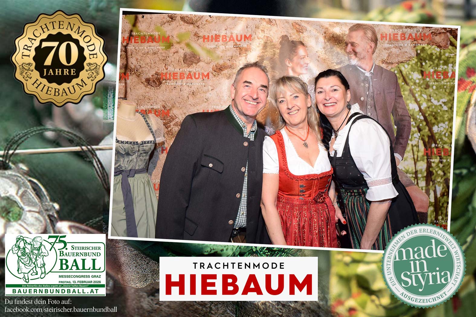 Trachtenmode Hiebaum war offizieller Partner des steirischen Bauernbundballs 2026. Zahlreiche Besucher haben sich in unserer Fotobox am Bauernbundball fotografieren lassen.