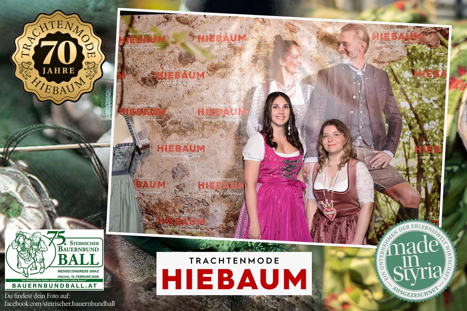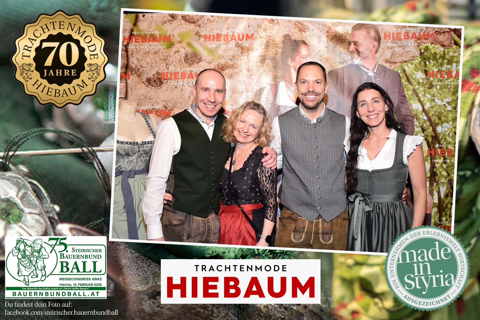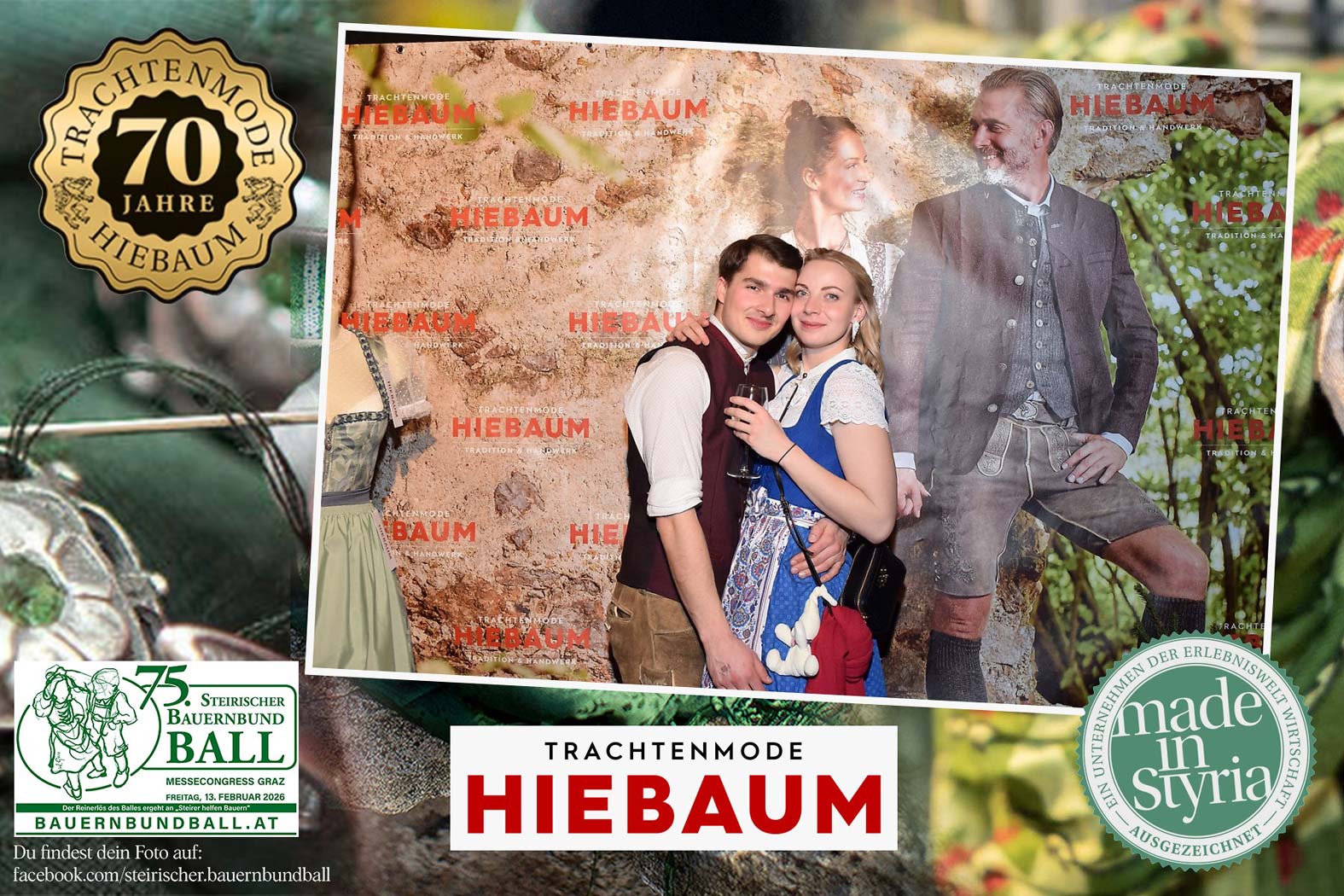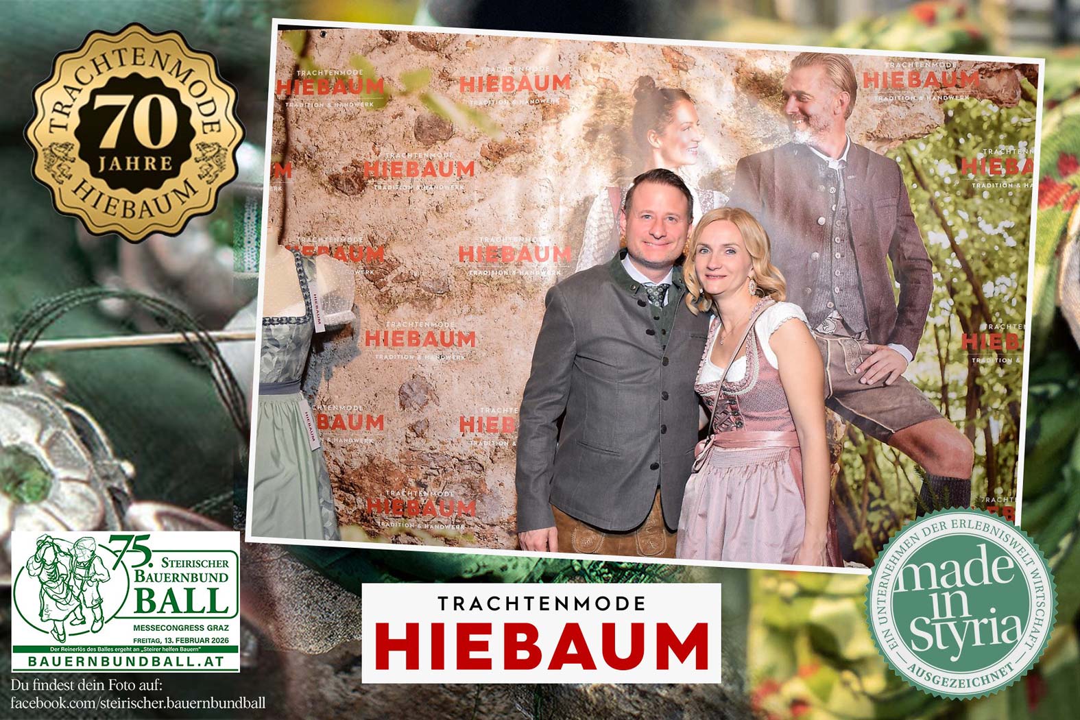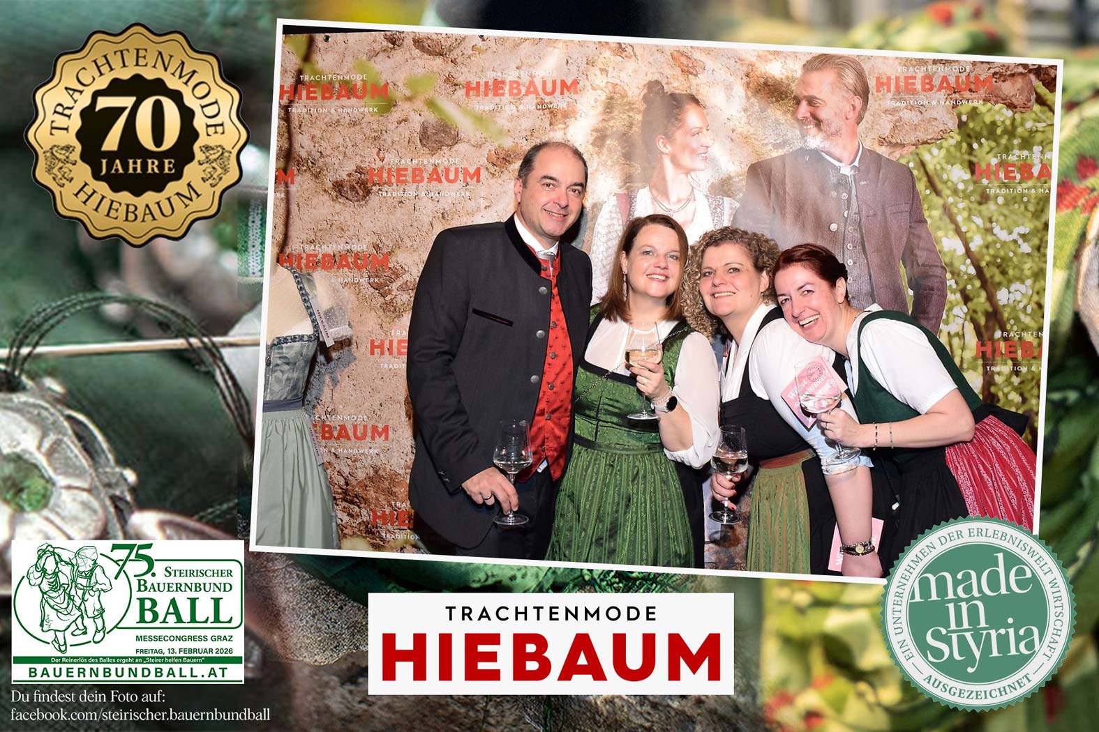 Trachtenmode Hiebaum war offizieller Partner des steirischen Bauernbundballs 2026. Zahlreiche Besucher haben sich in unserer Fotobox am Bauernbundball fotografieren lassen.