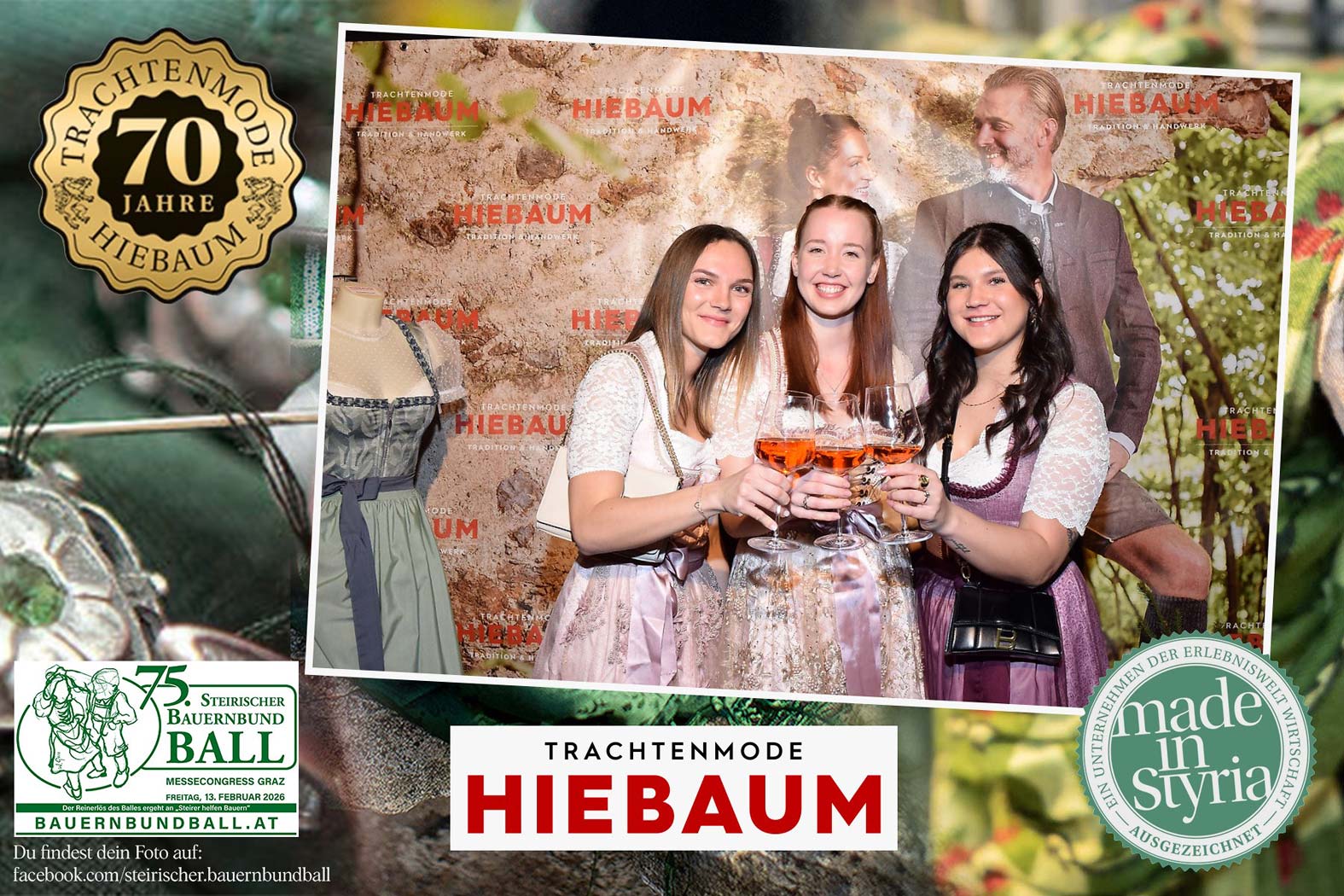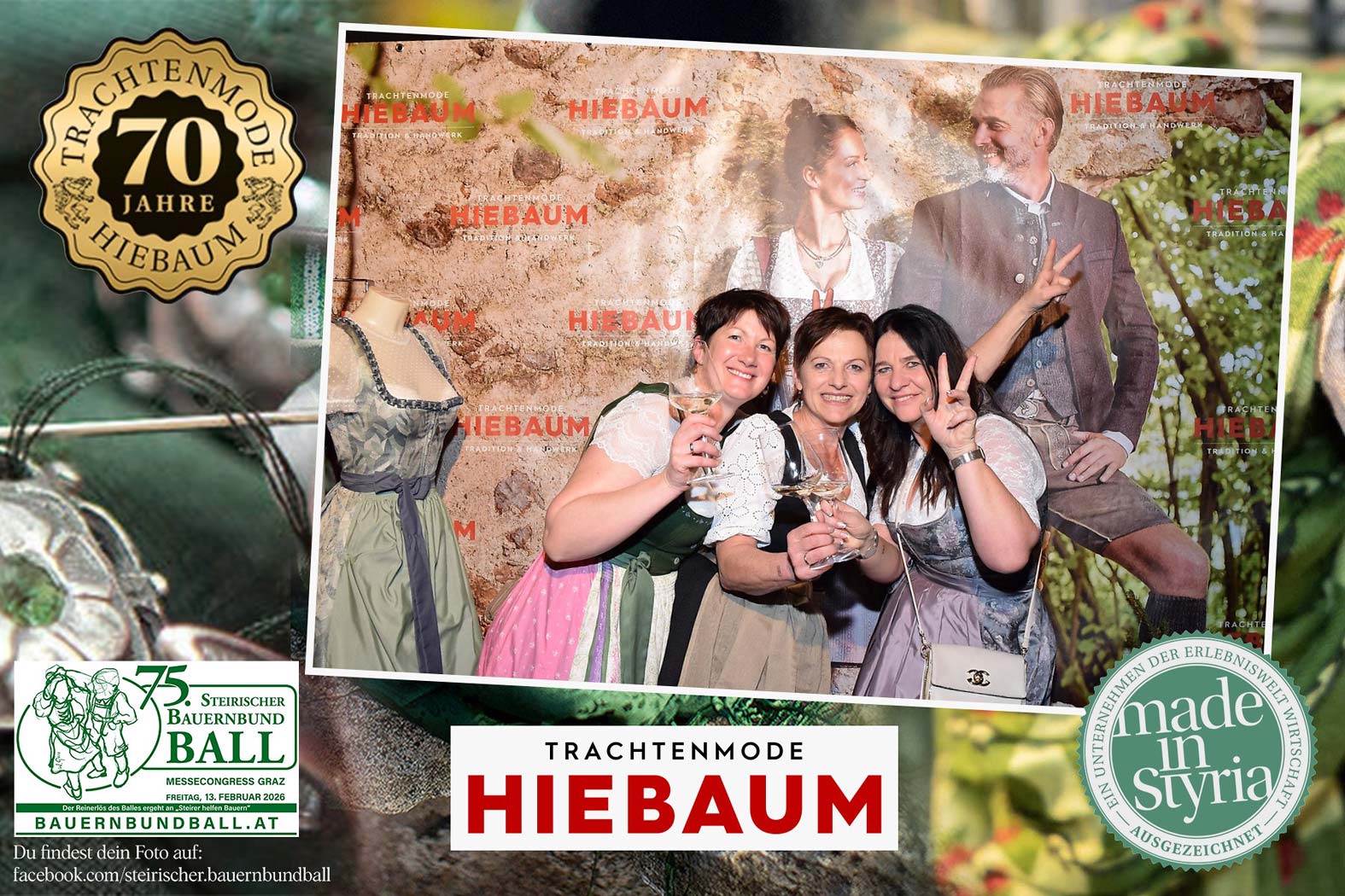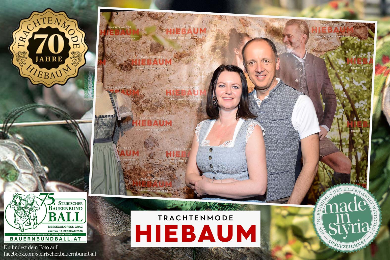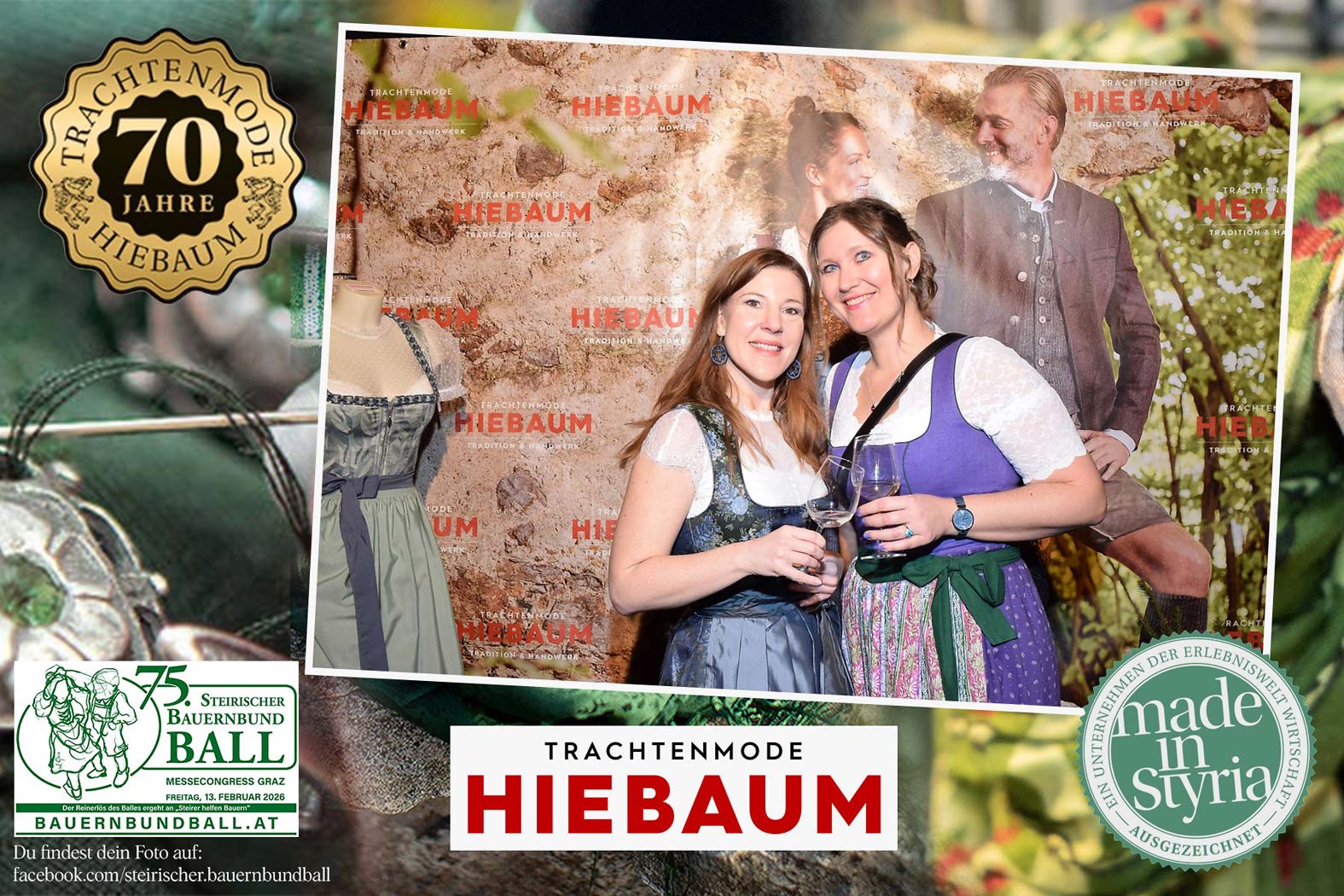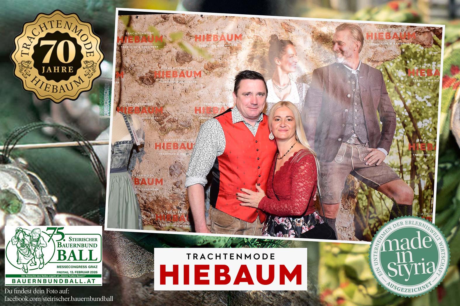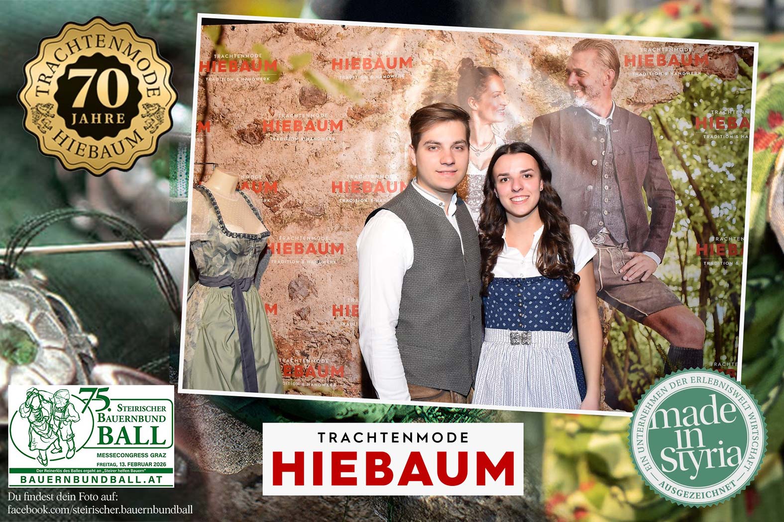 Trachtenmode Hiebaum war offizieller Partner des steirischen Bauernbundballs 2026. Zahlreiche Besucher haben sich in unserer Fotobox am Bauernbundball fotografieren lassen.