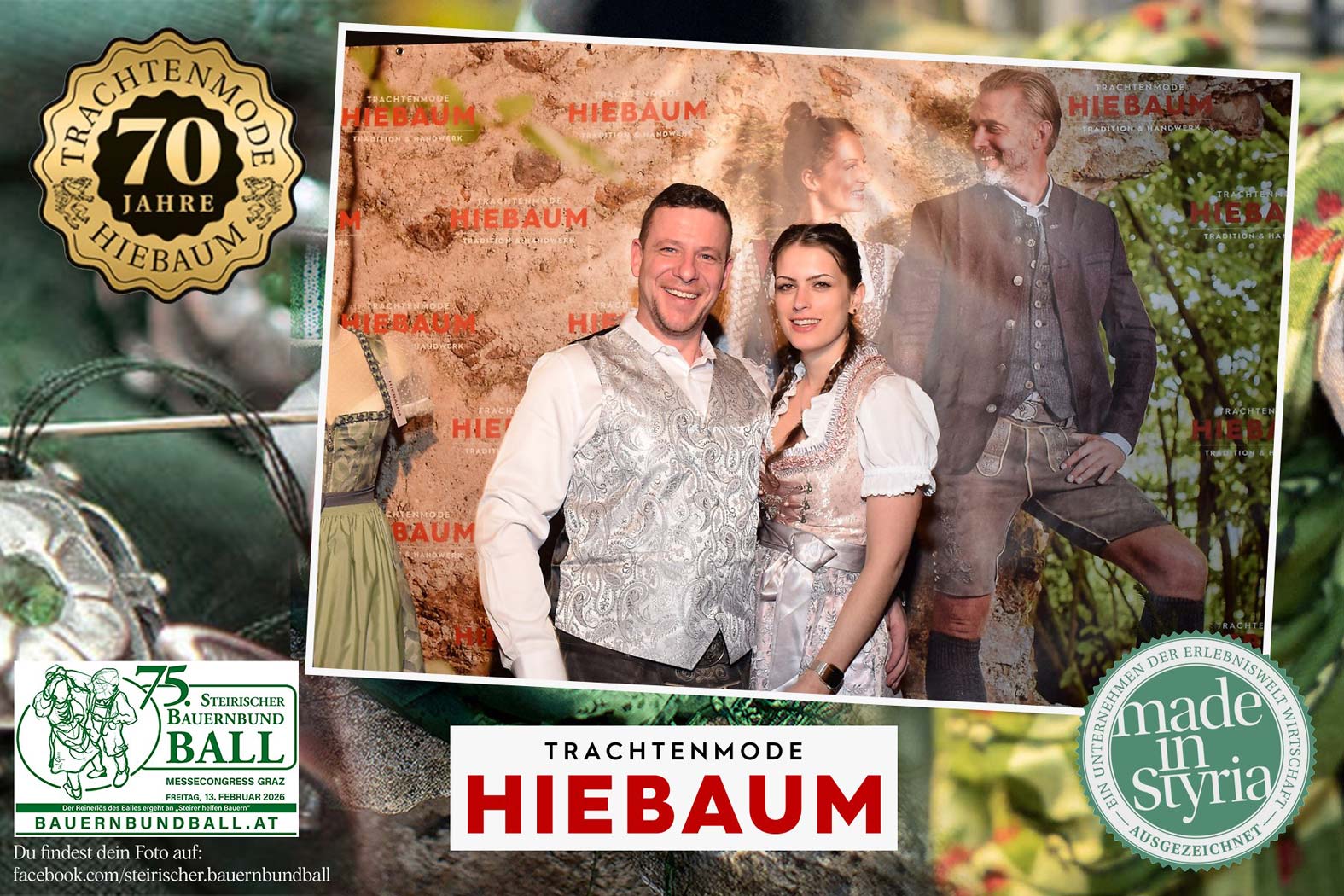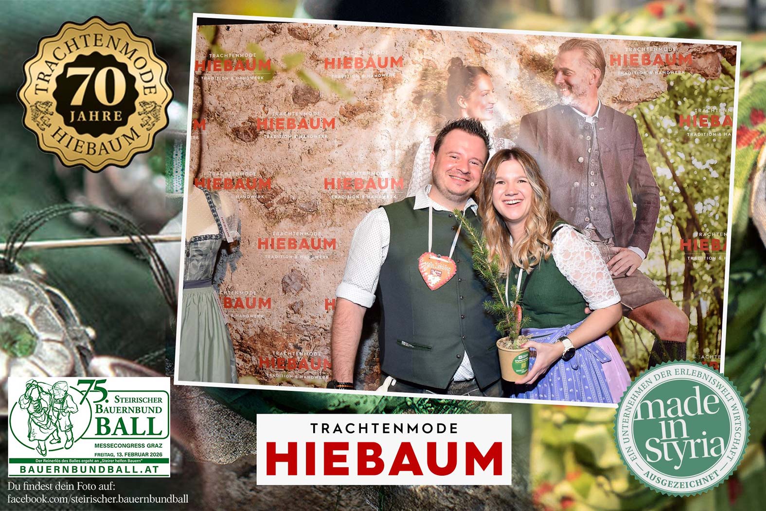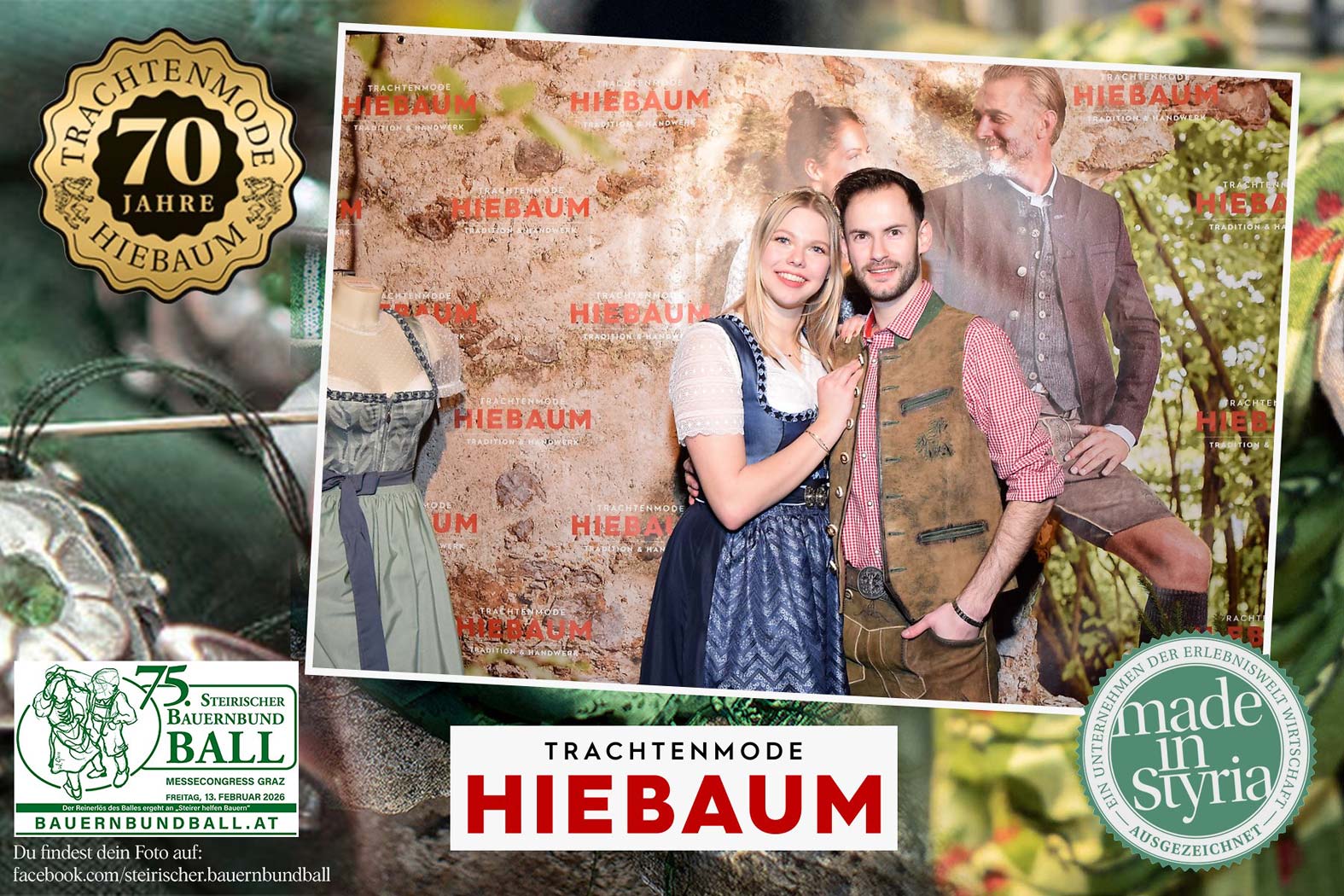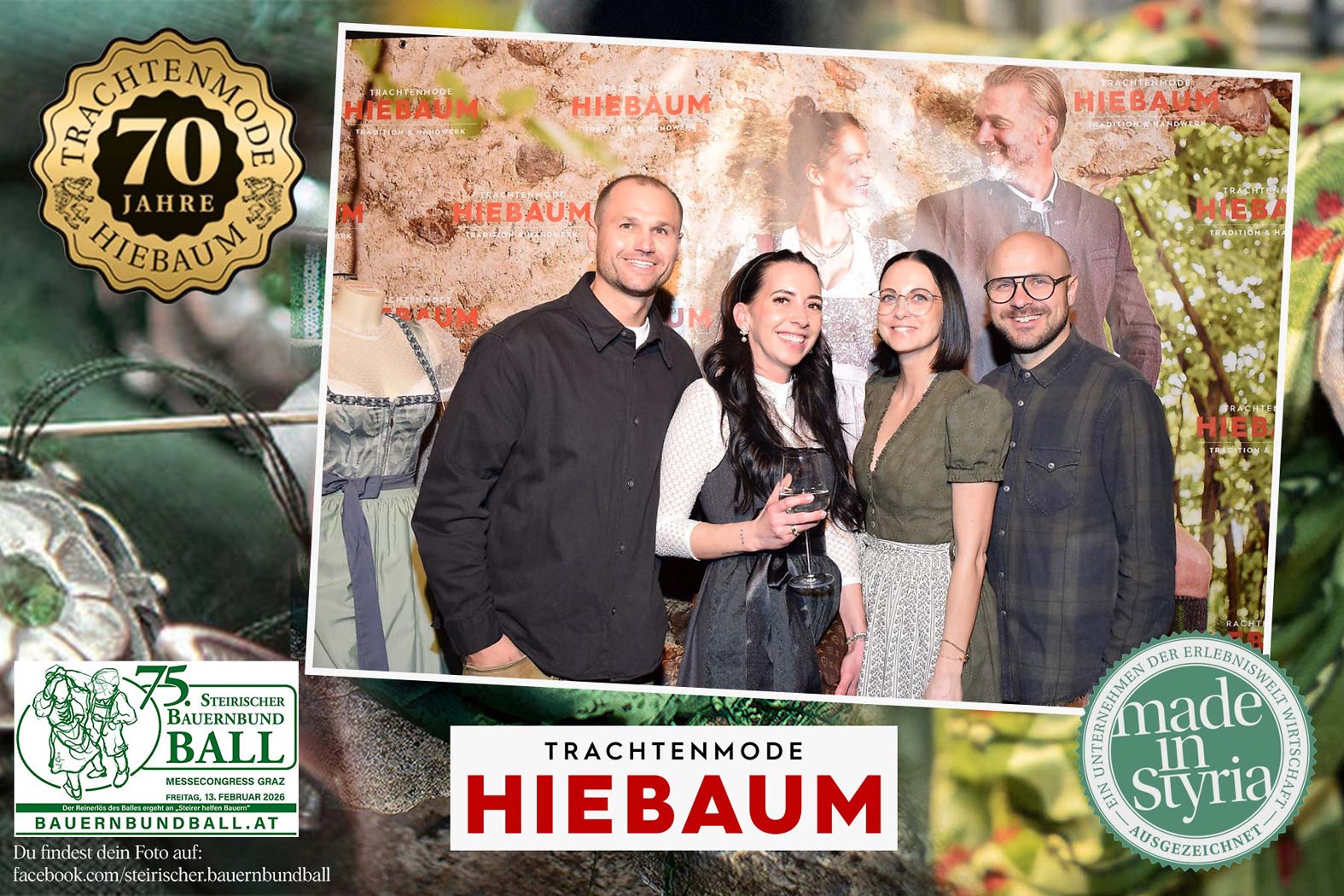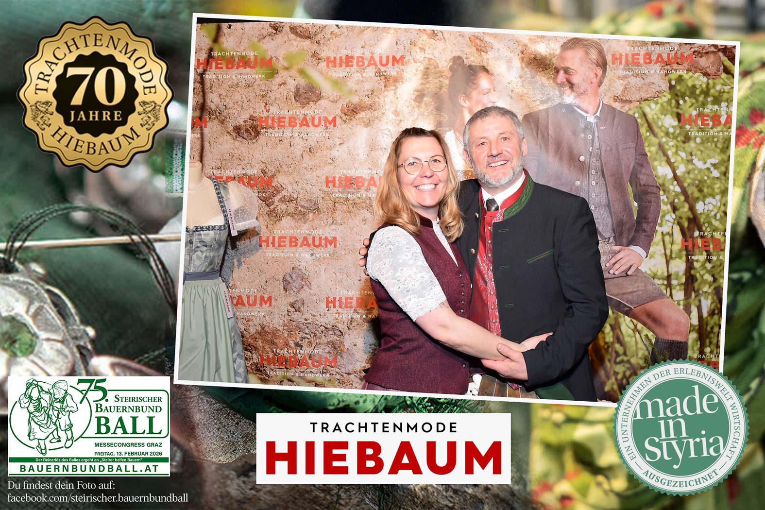 Trachtenmode Hiebaum war offizieller Partner des steirischen Bauernbundballs 2026. Zahlreiche Besucher haben sich in unserer Fotobox am Bauernbundball fotografieren lassen.
