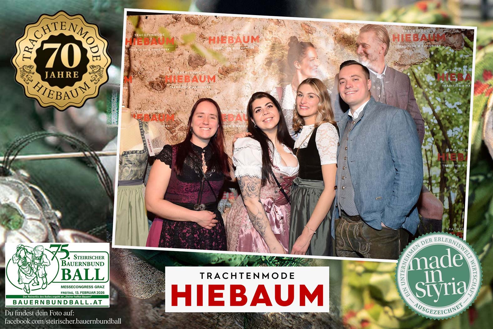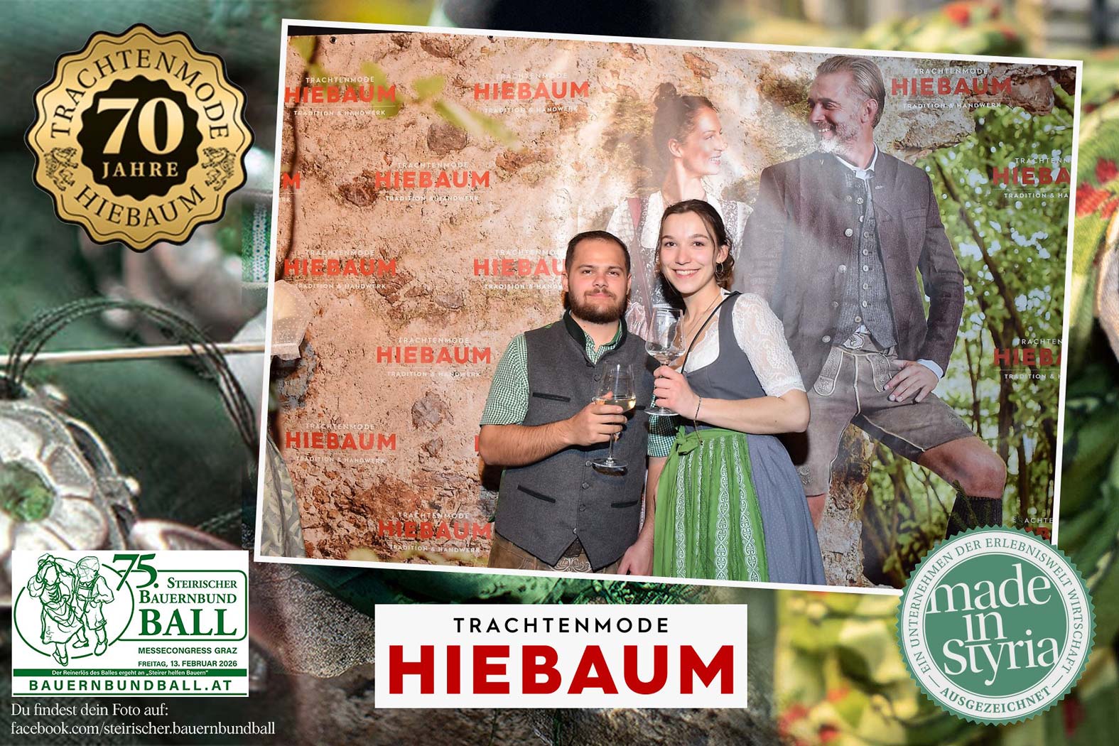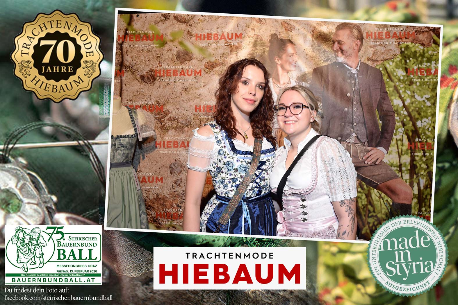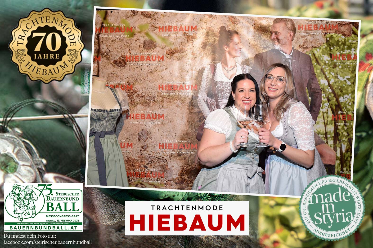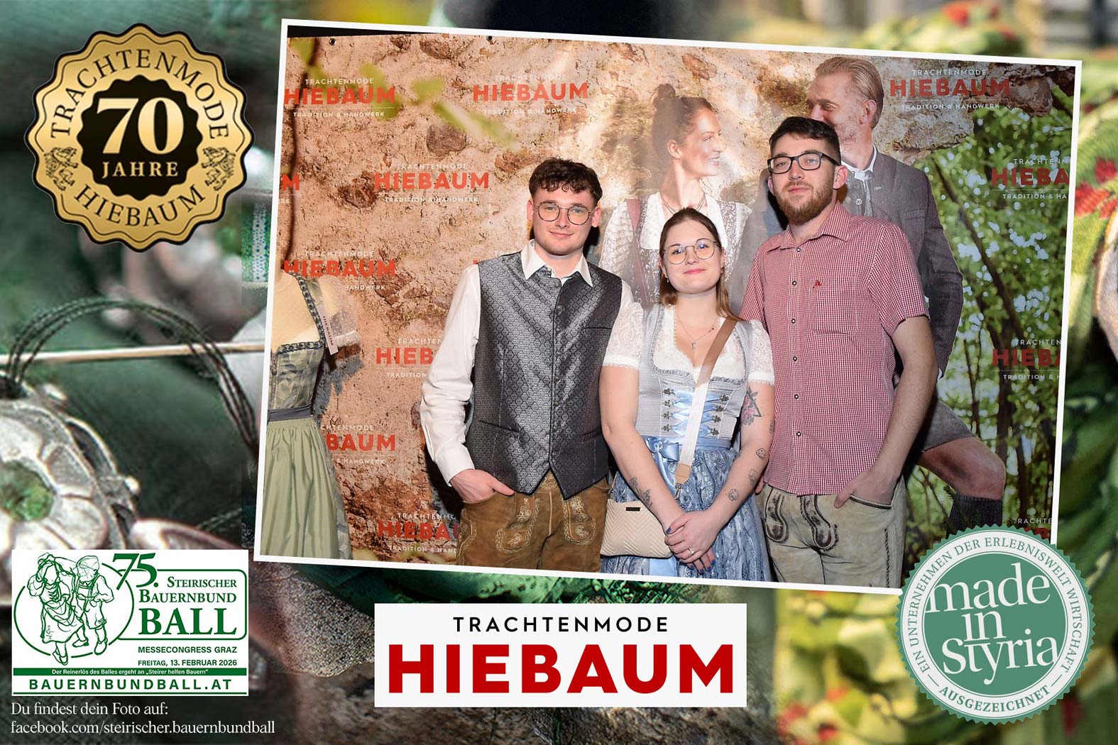 Trachtenmode Hiebaum war offizieller Partner des steirischen Bauernbundballs 2026. Zahlreiche Besucher haben sich in unserer Fotobox am Bauernbundball fotografieren lassen.