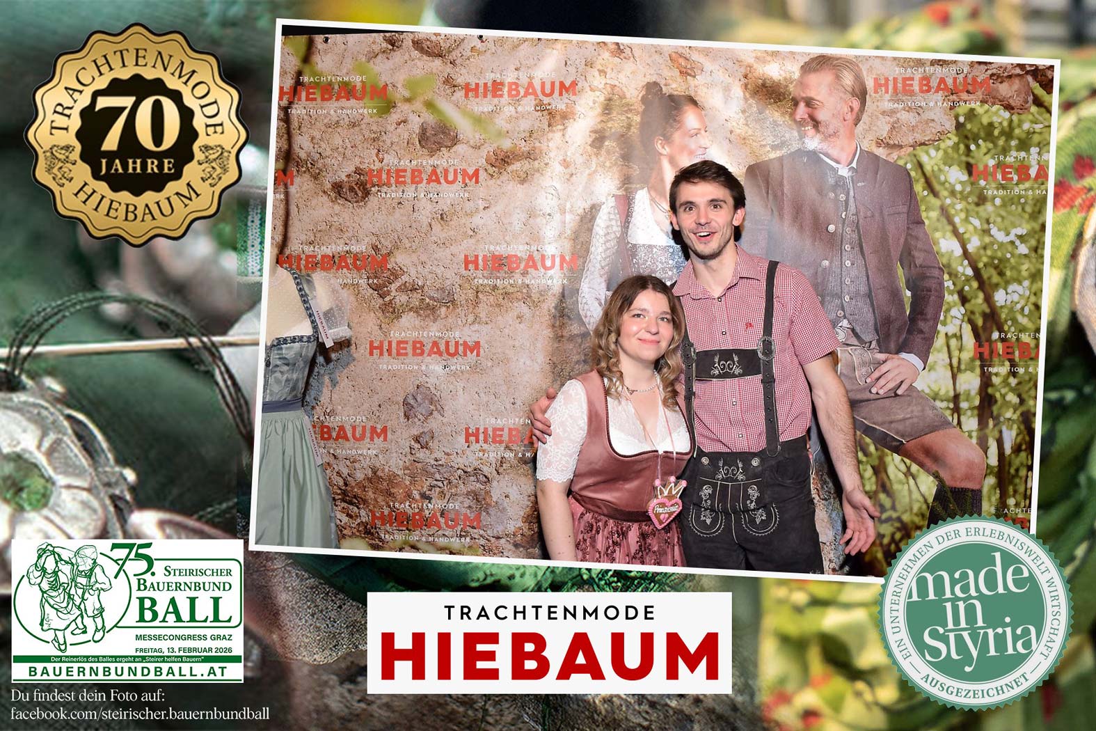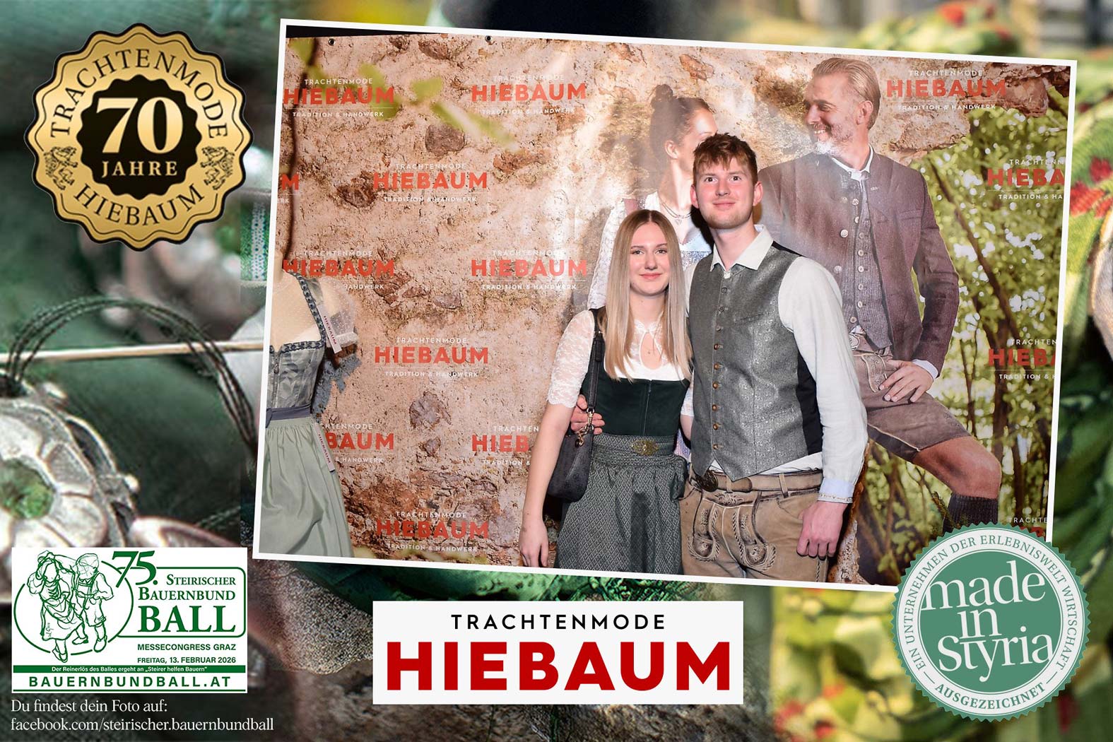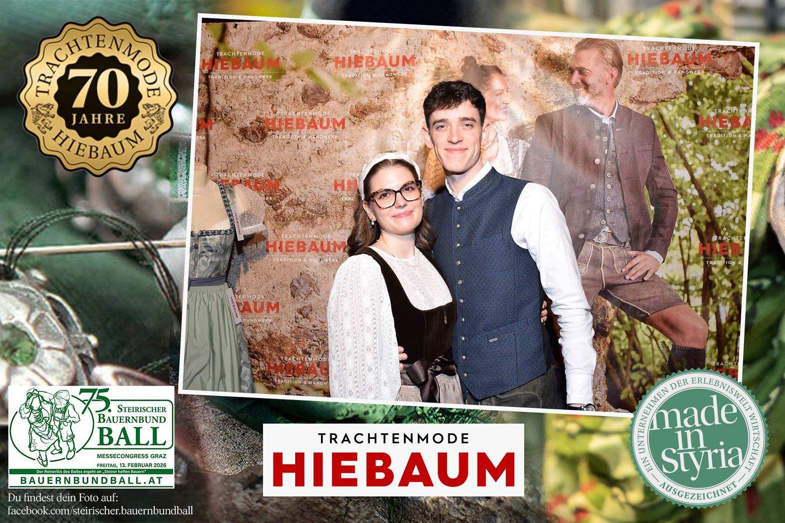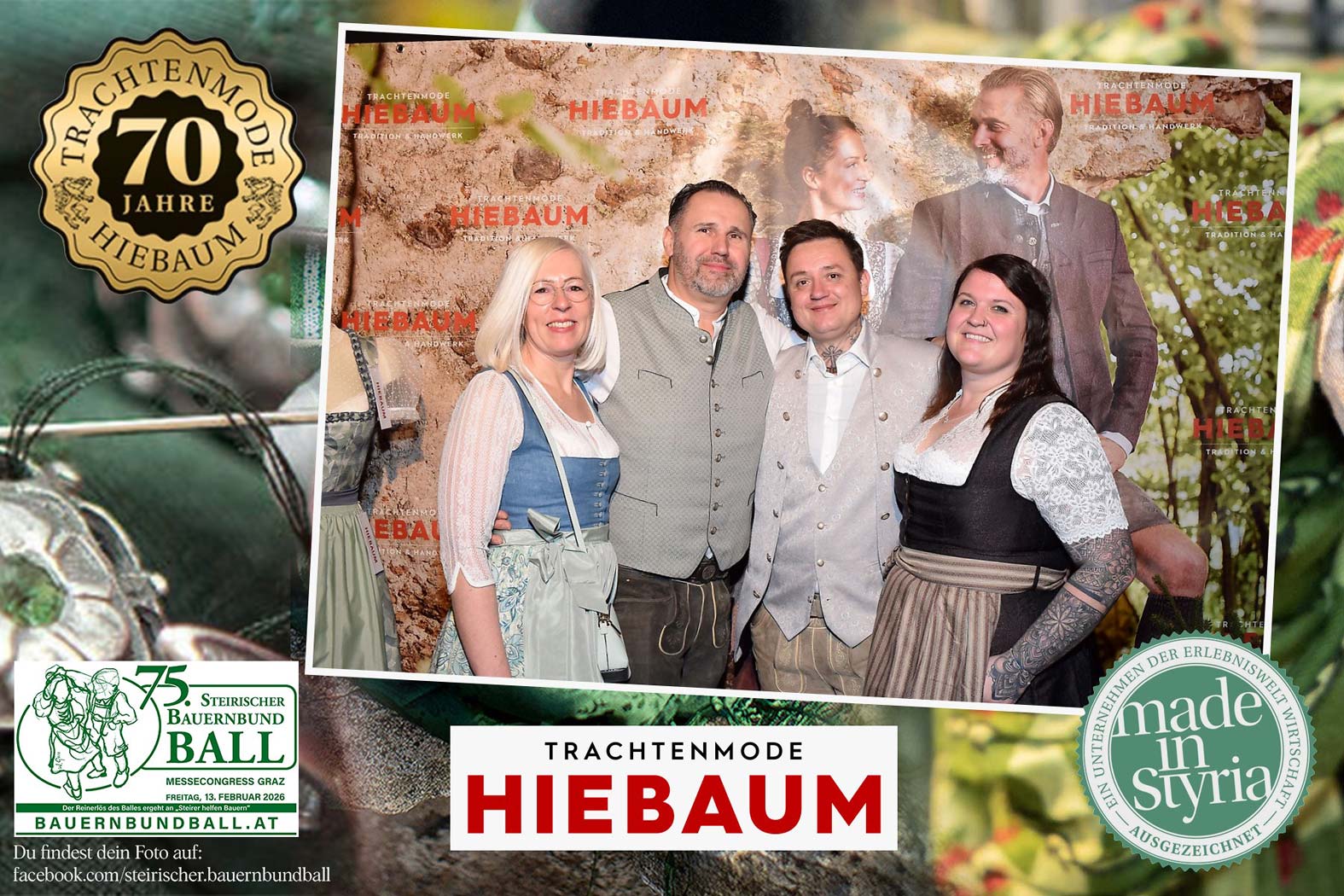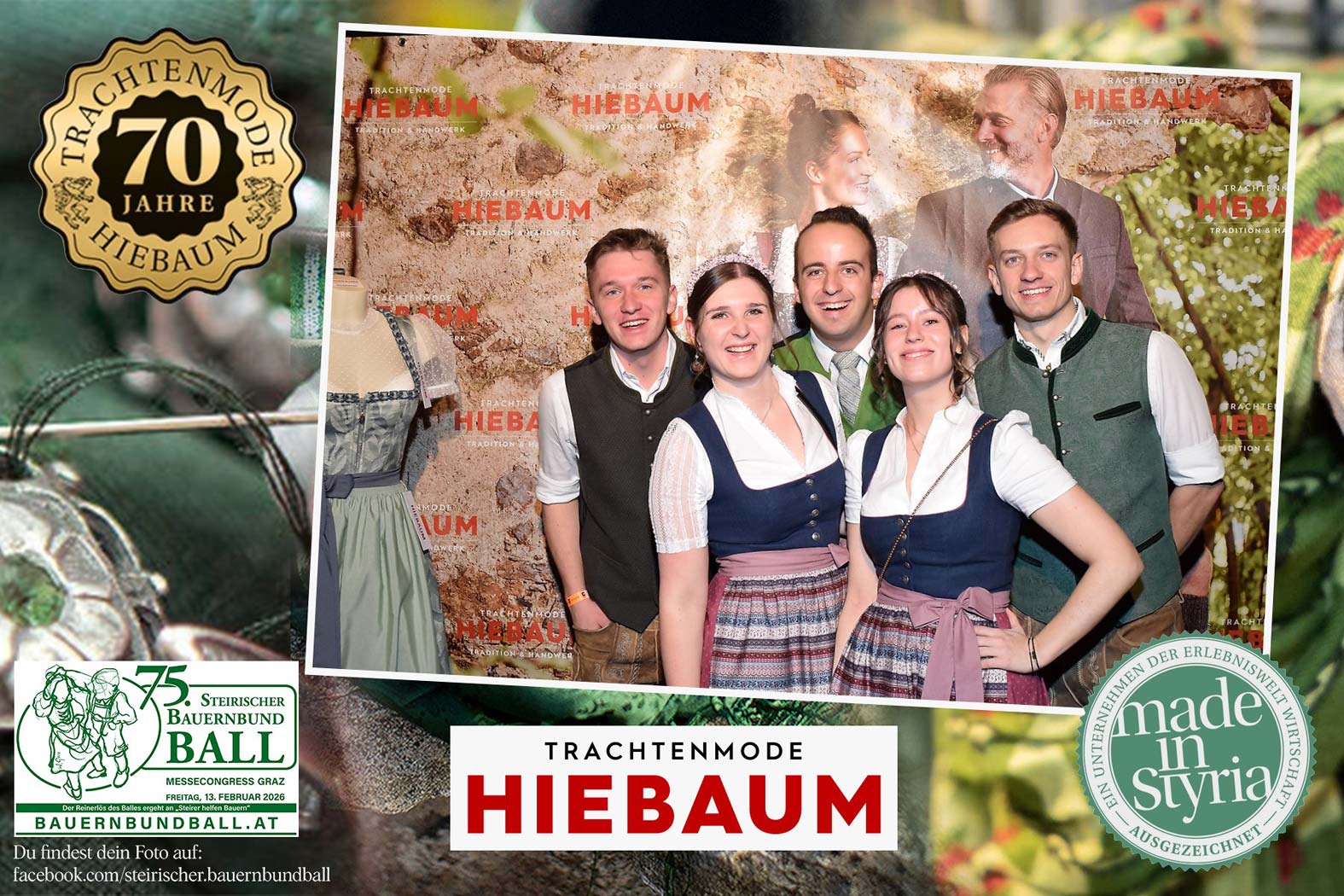 Trachtenmode Hiebaum war offizieller Partner des steirischen Bauernbundballs 2026. Zahlreiche Besucher haben sich in unserer Fotobox am Bauernbundball fotografieren lassen.
