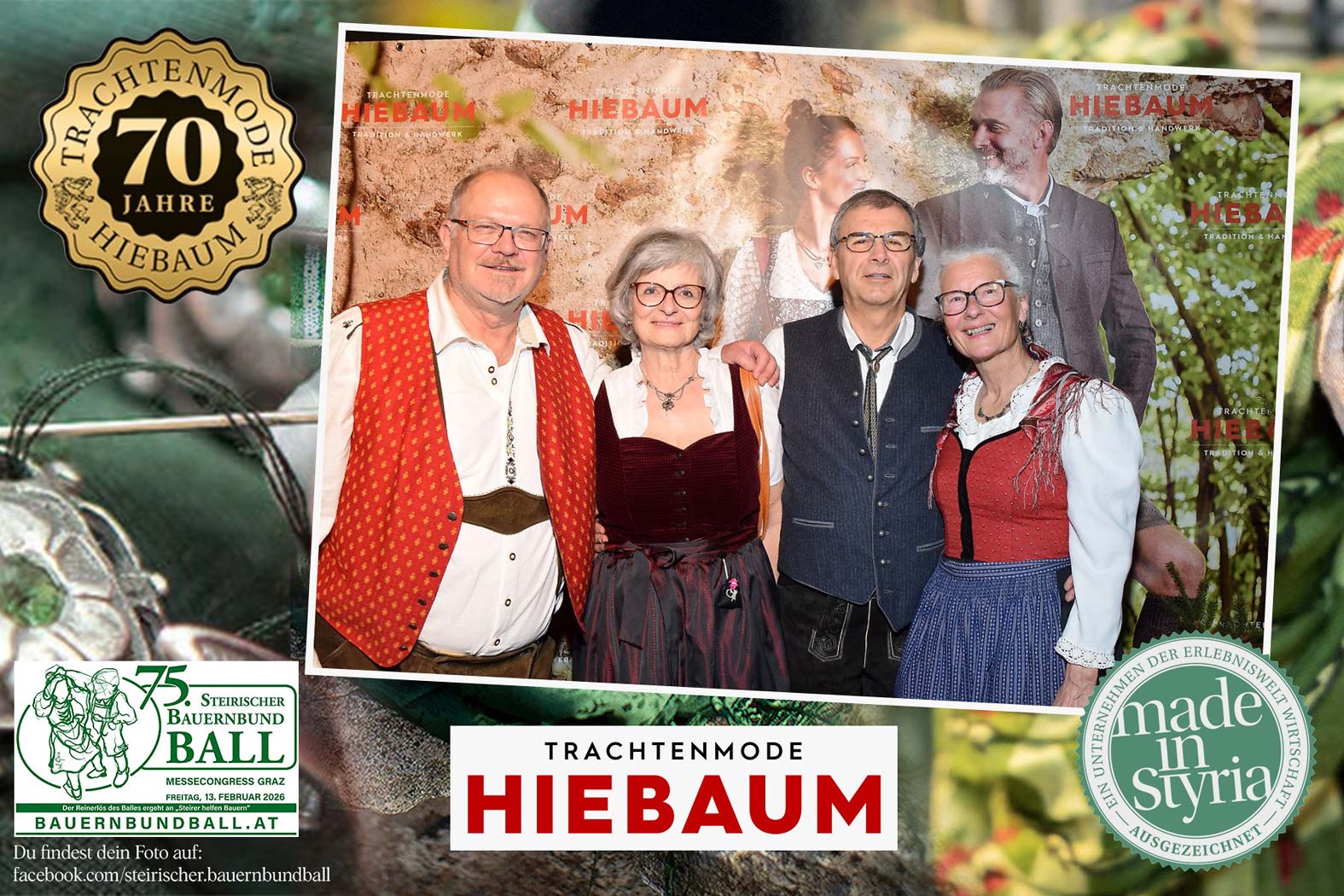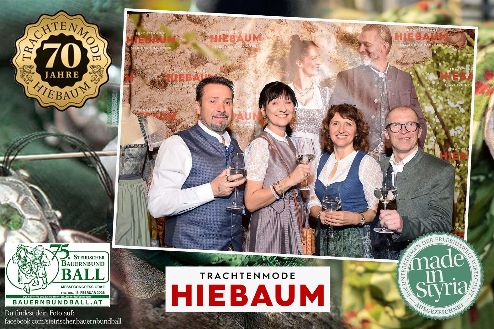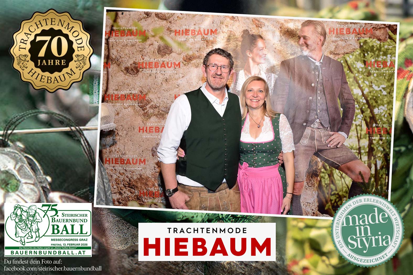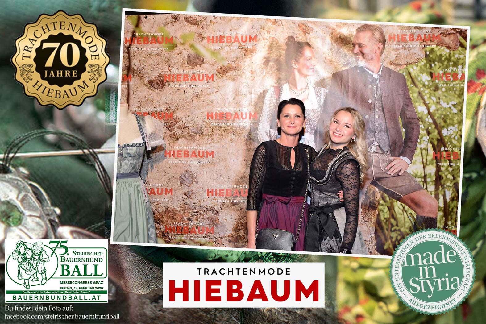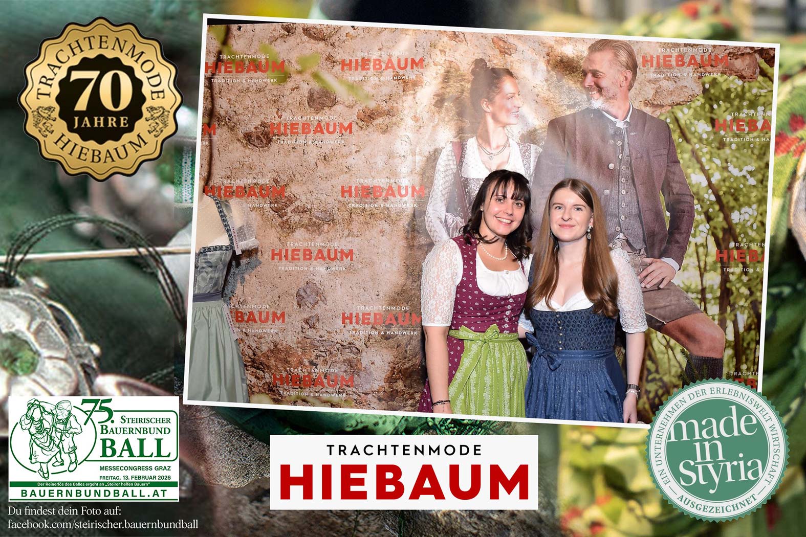 Trachtenmode Hiebaum war offizieller Partner des steirischen Bauernbundballs 2026. Zahlreiche Besucher haben sich in unserer Fotobox am Bauernbundball fotografieren lassen.