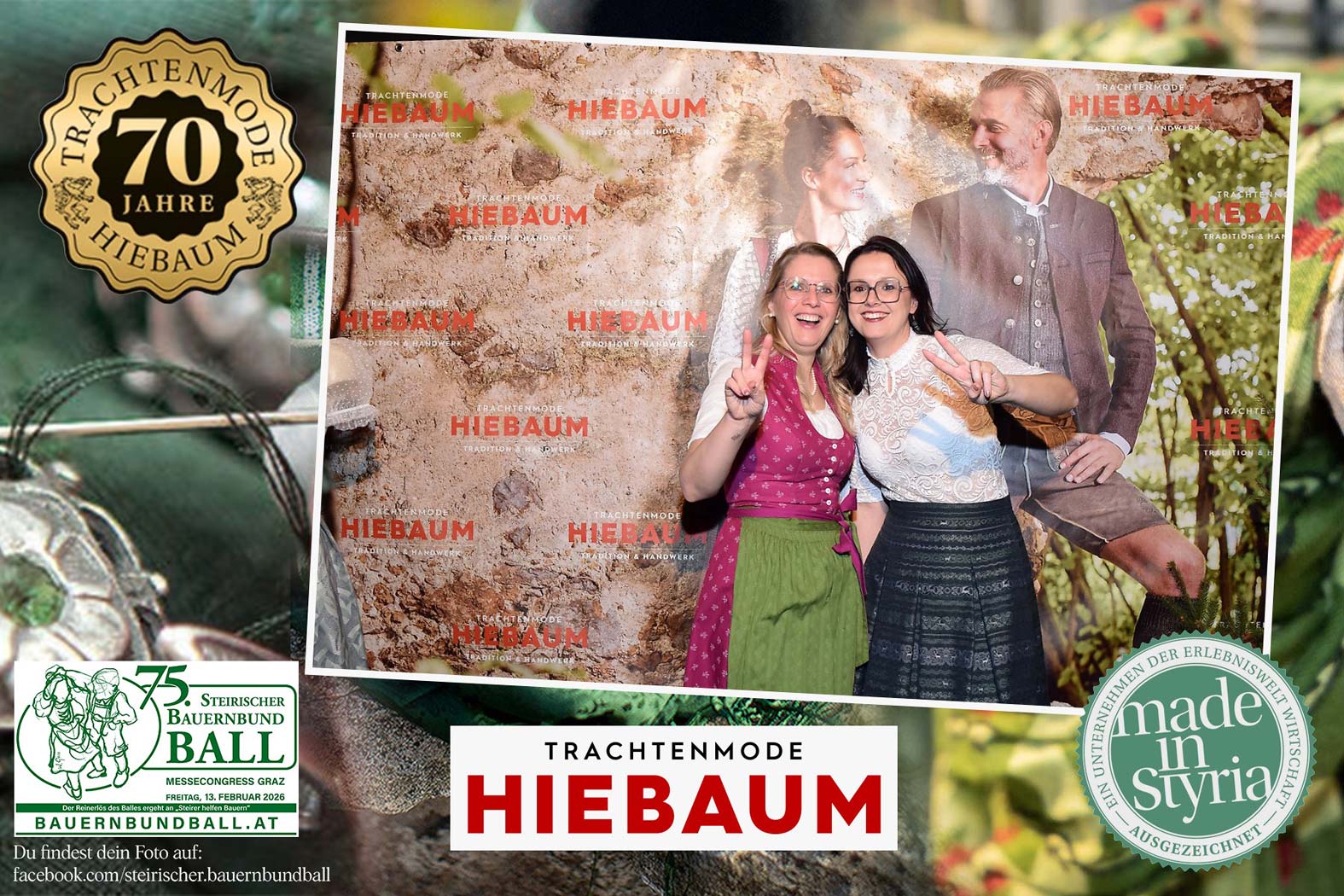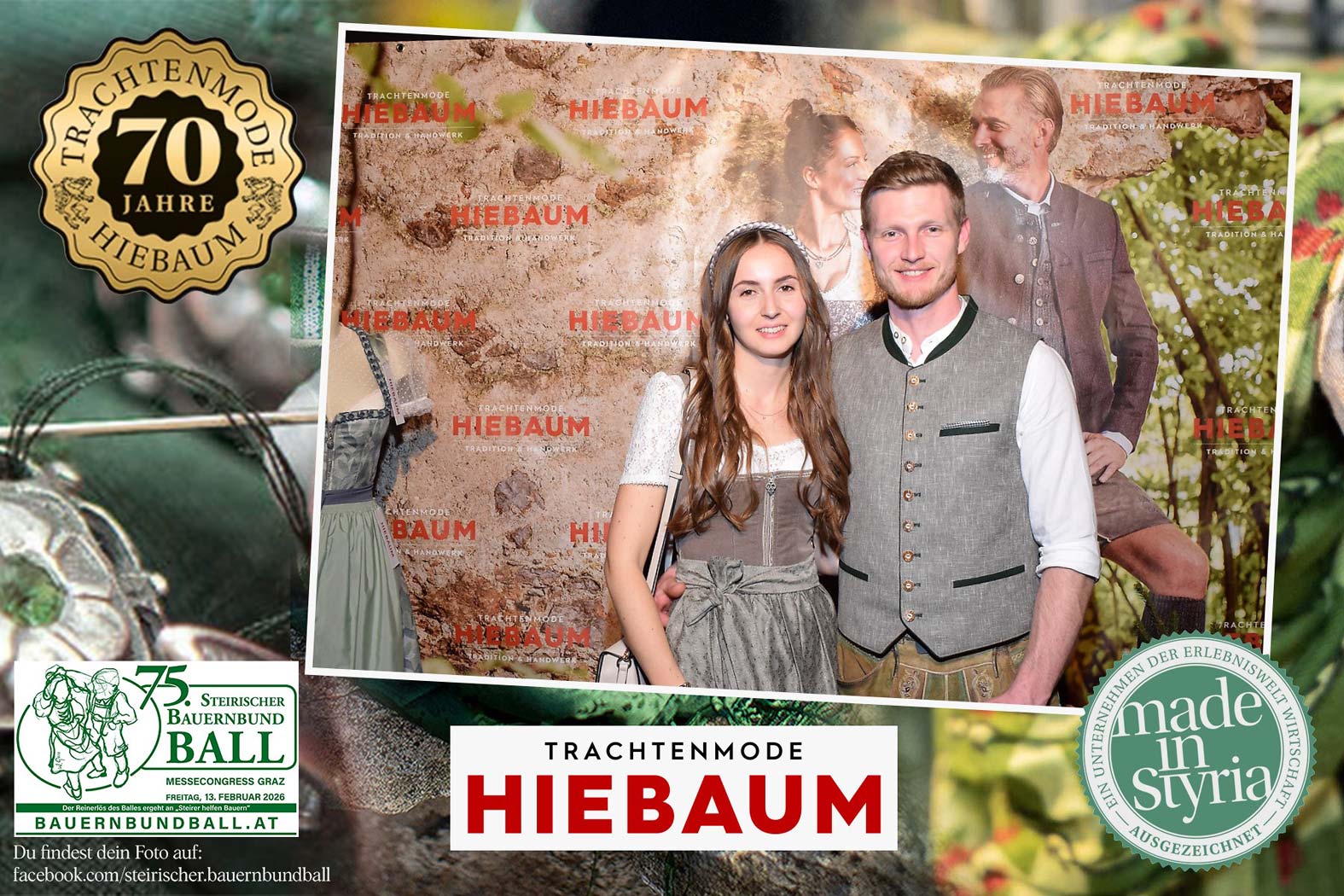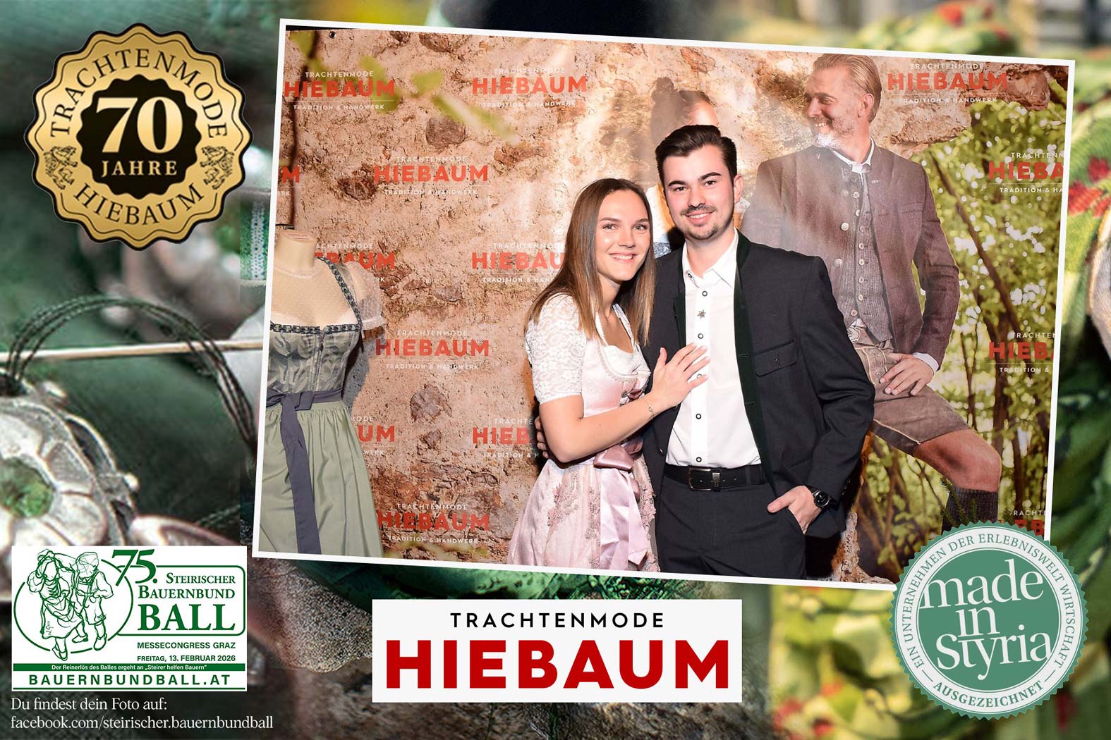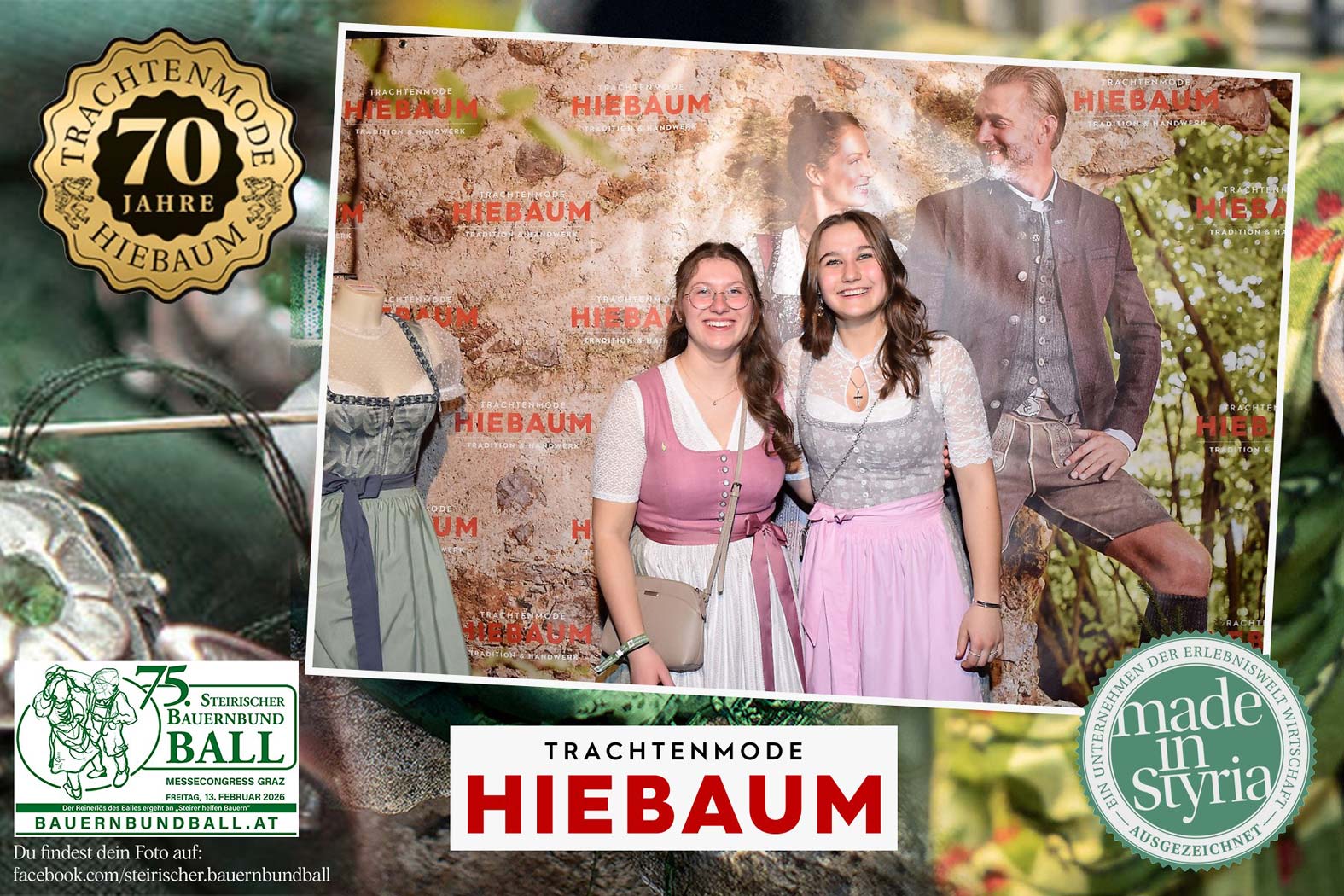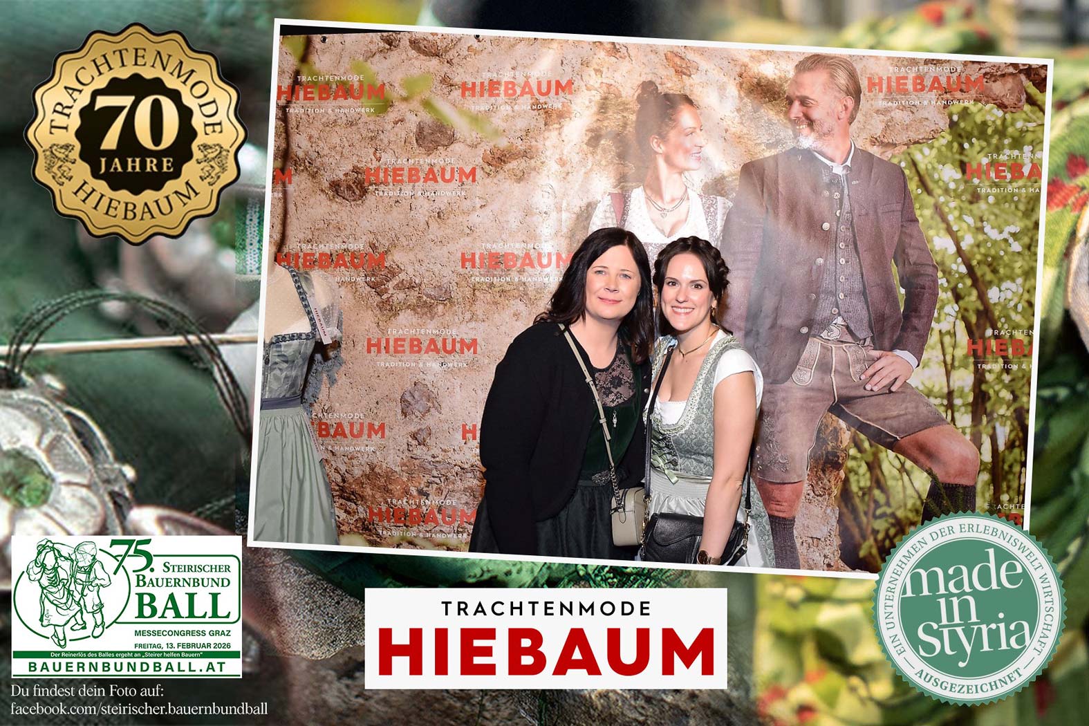 Trachtenmode Hiebaum war offizieller Partner des steirischen Bauernbundballs 2026. Zahlreiche Besucher haben sich in unserer Fotobox am Bauernbundball fotografieren lassen.