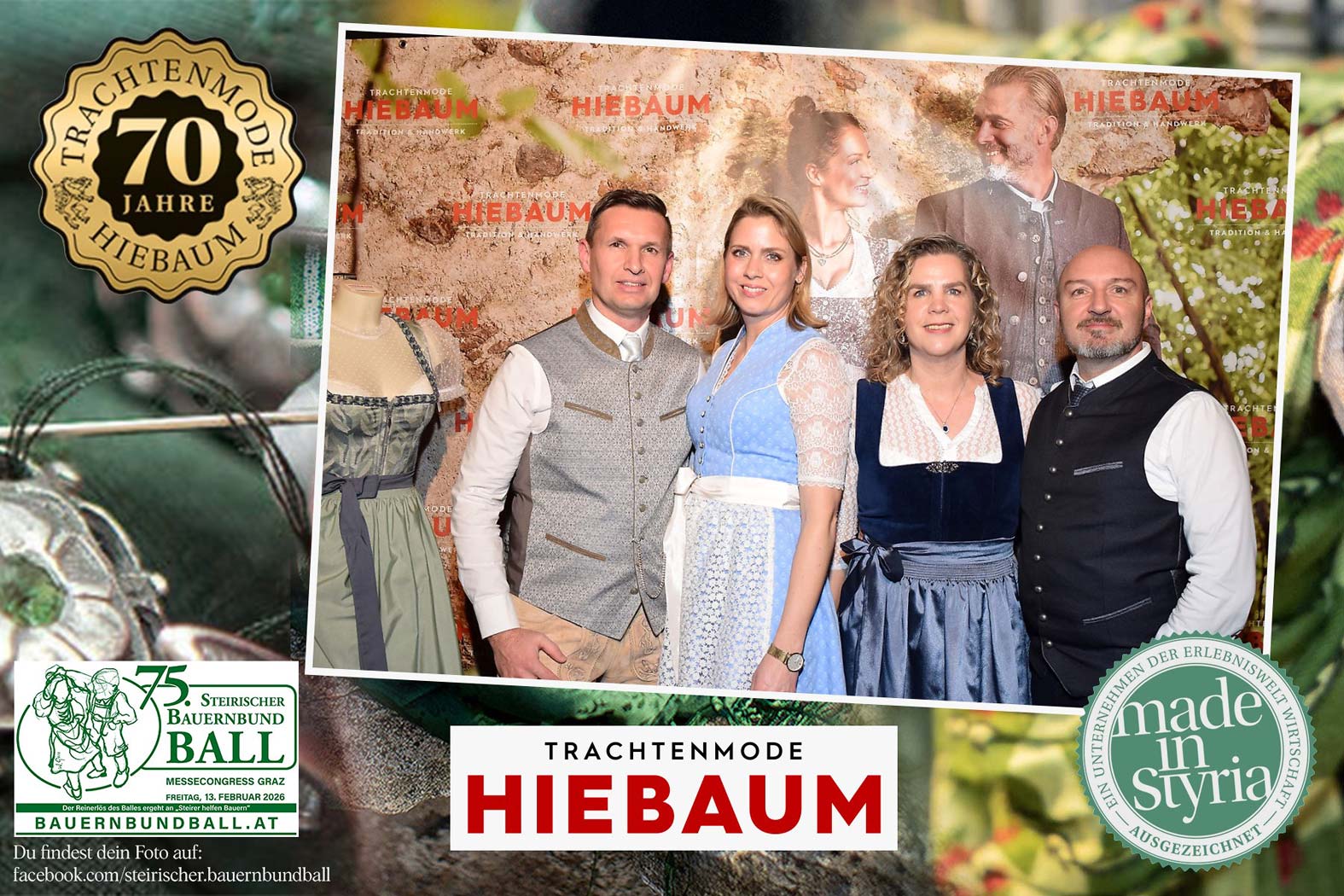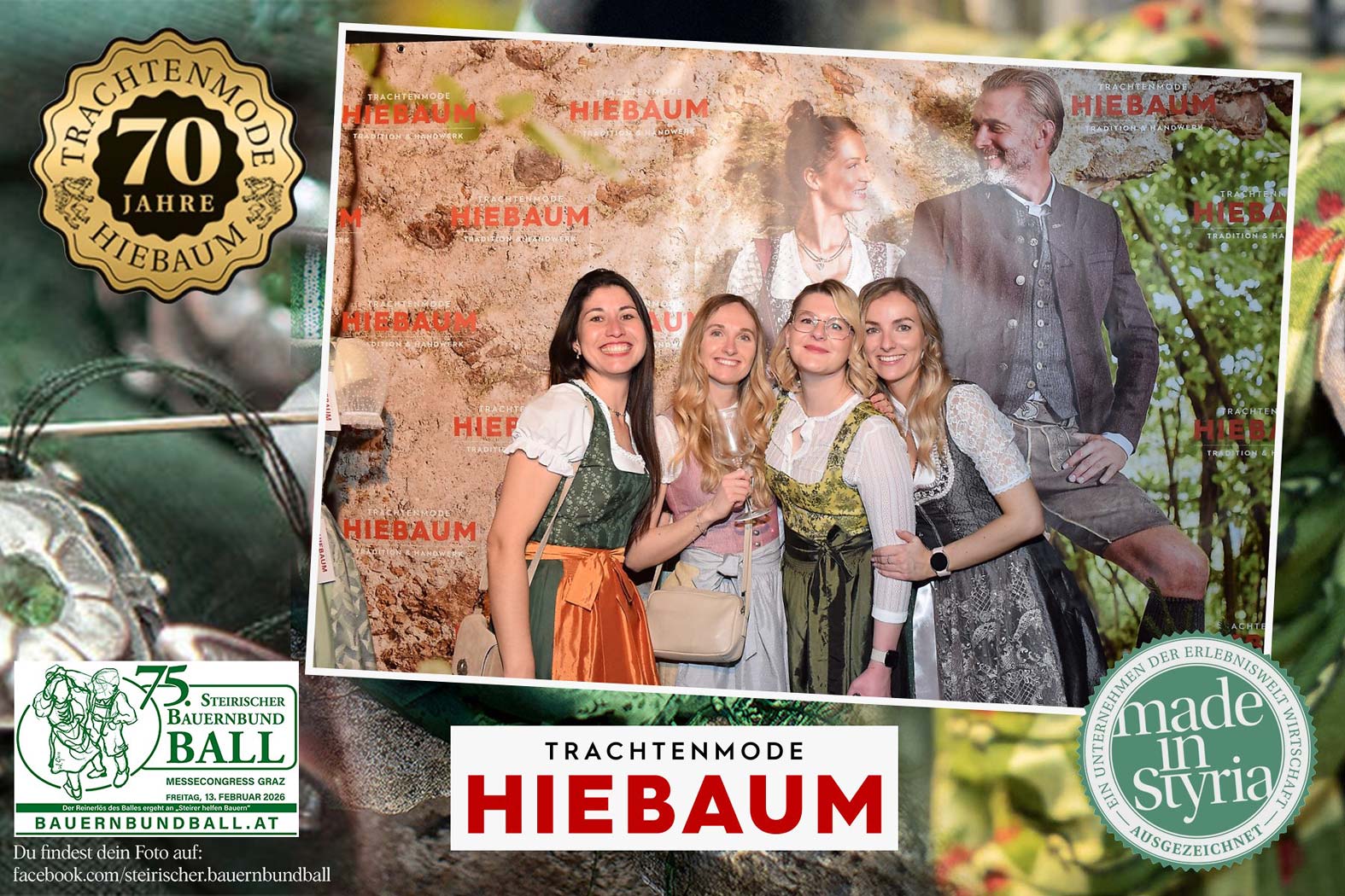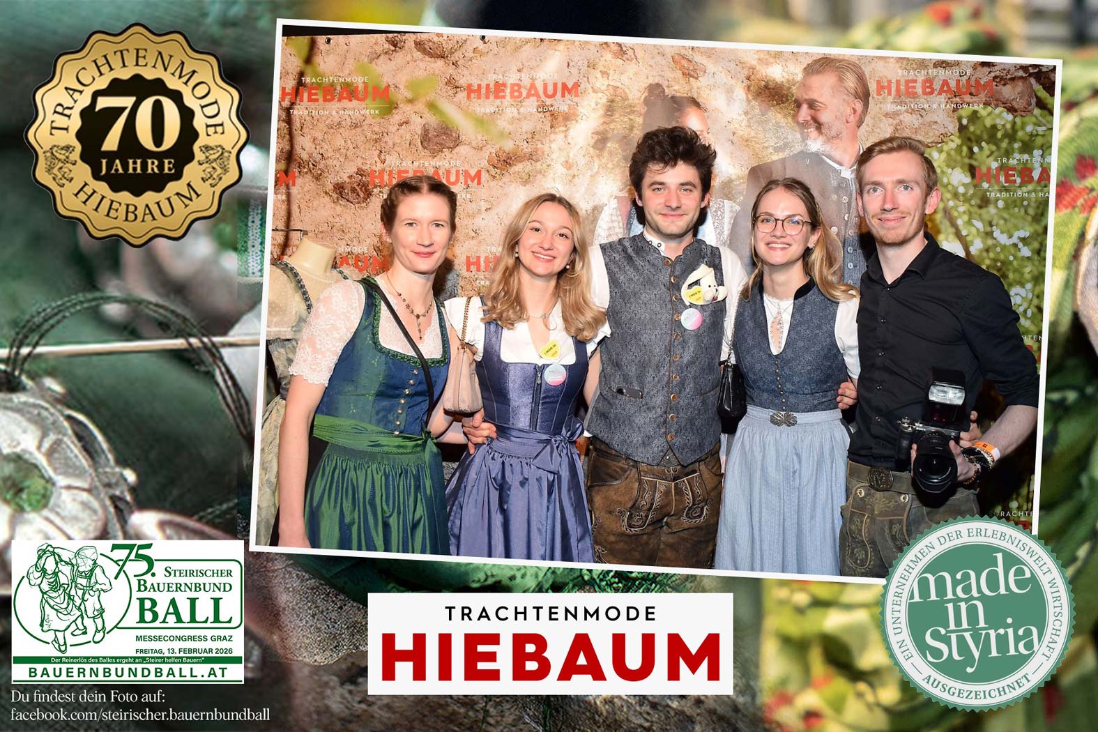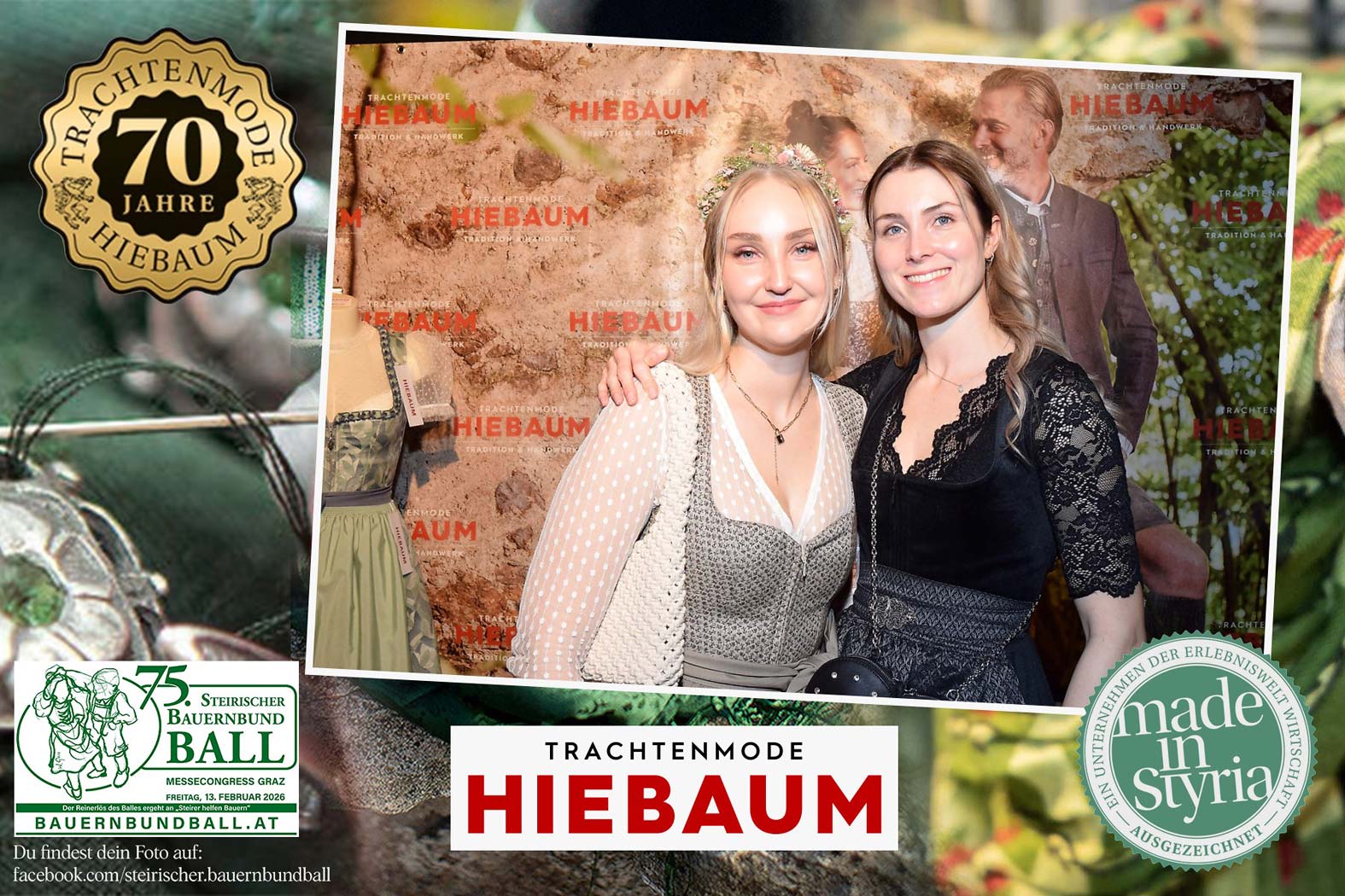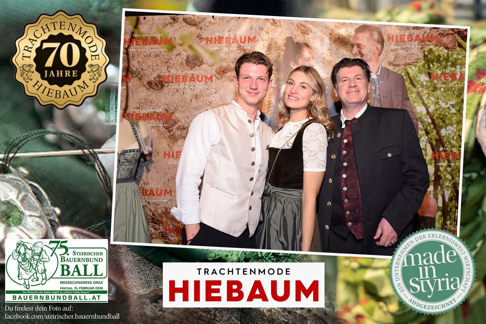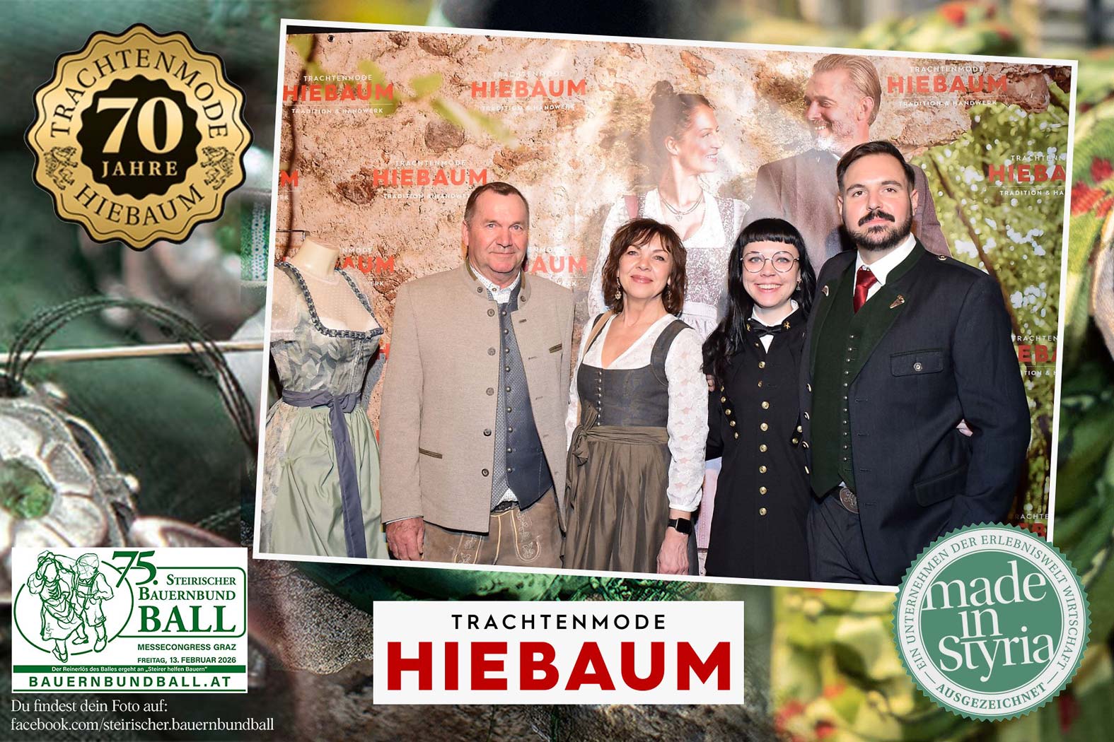 Trachtenmode Hiebaum war offizieller Partner des steirischen Bauernbundballs 2026. Zahlreiche Besucher haben sich in unserer Fotobox am Bauernbundball fotografieren lassen.