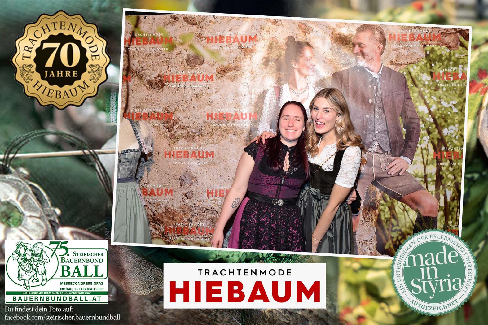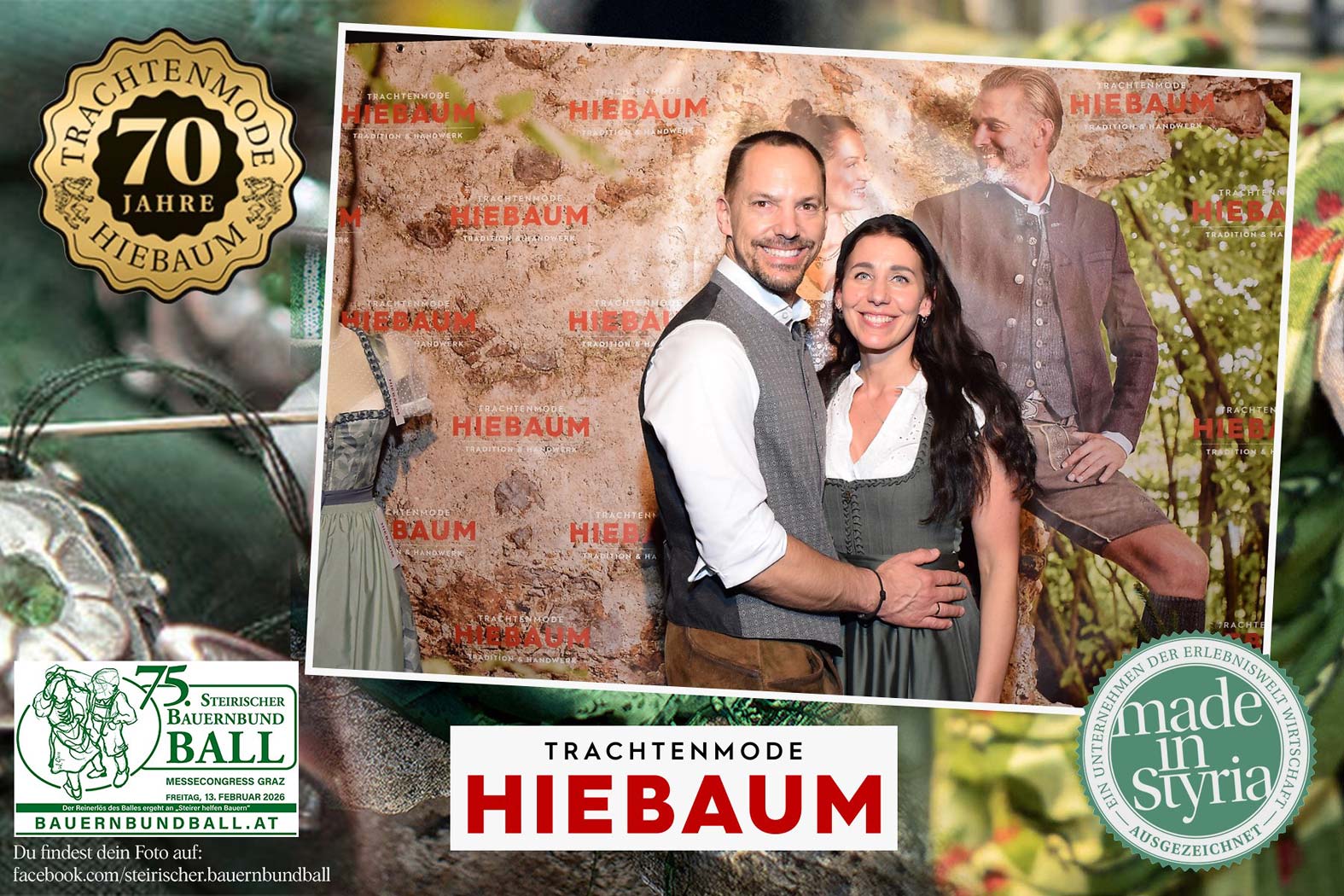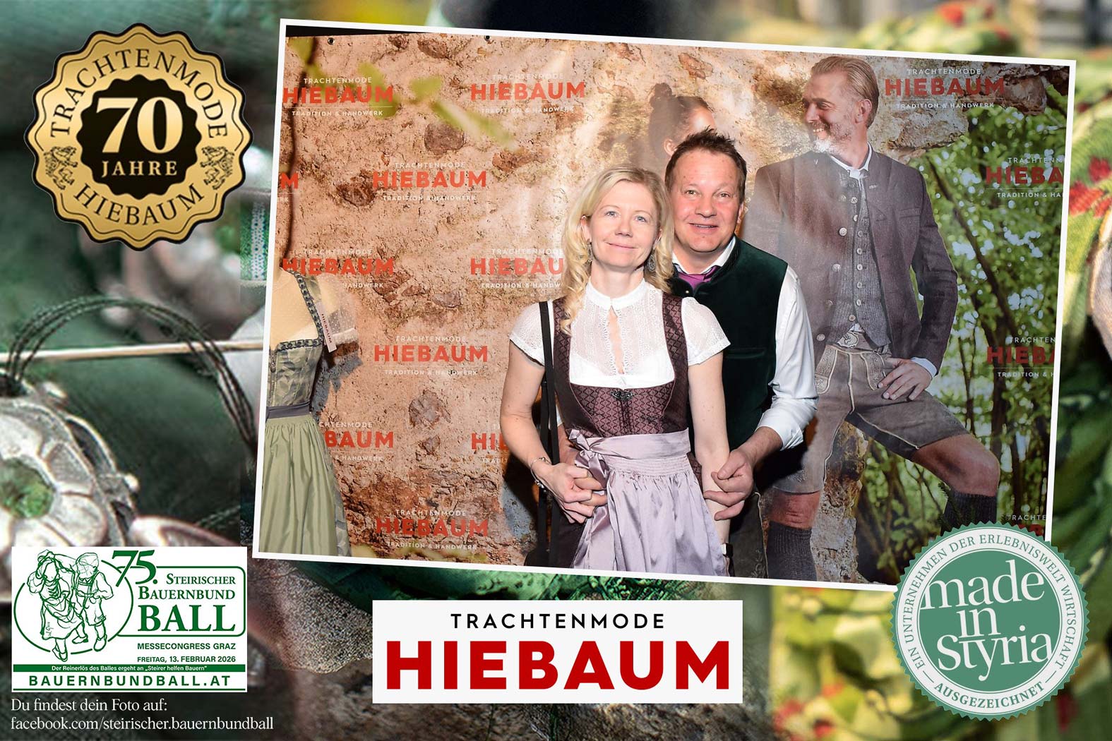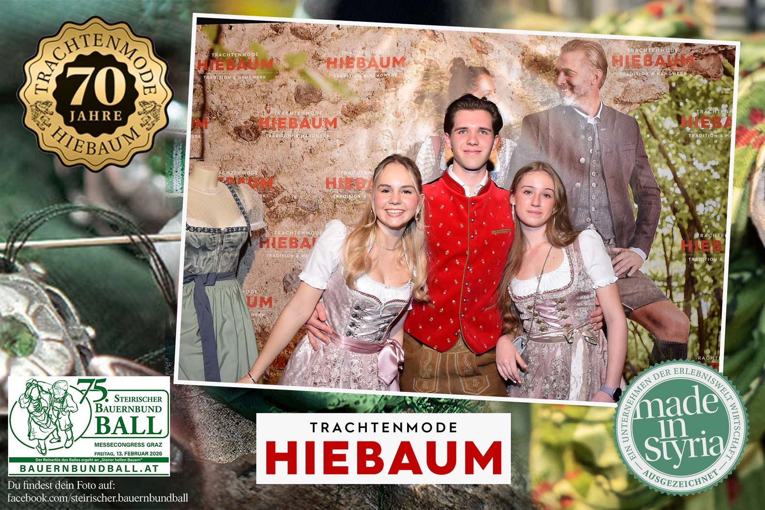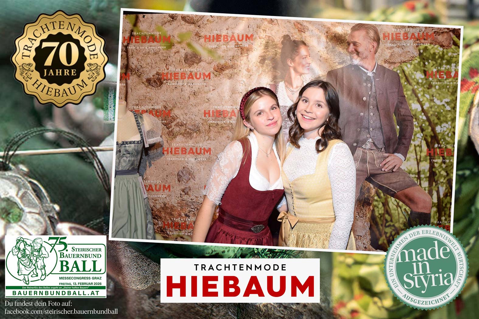 Trachtenmode Hiebaum war offizieller Partner des steirischen Bauernbundballs 2026. Zahlreiche Besucher haben sich in unserer Fotobox am Bauernbundball fotografieren lassen.