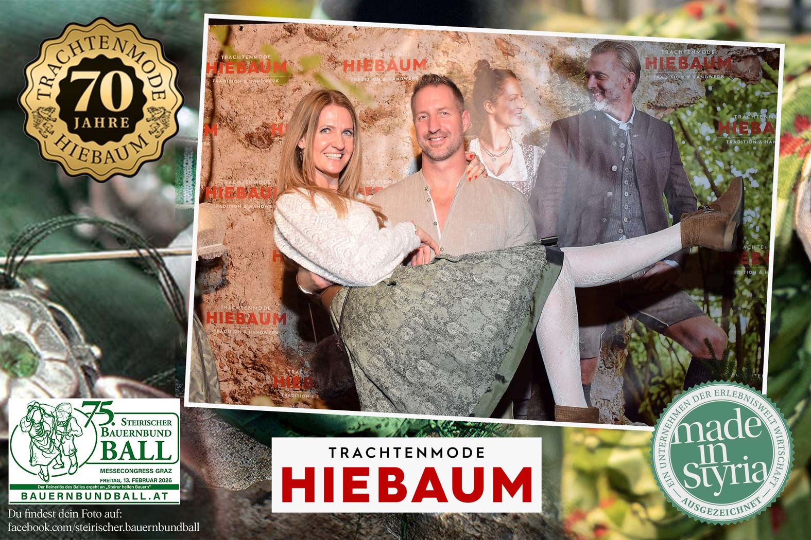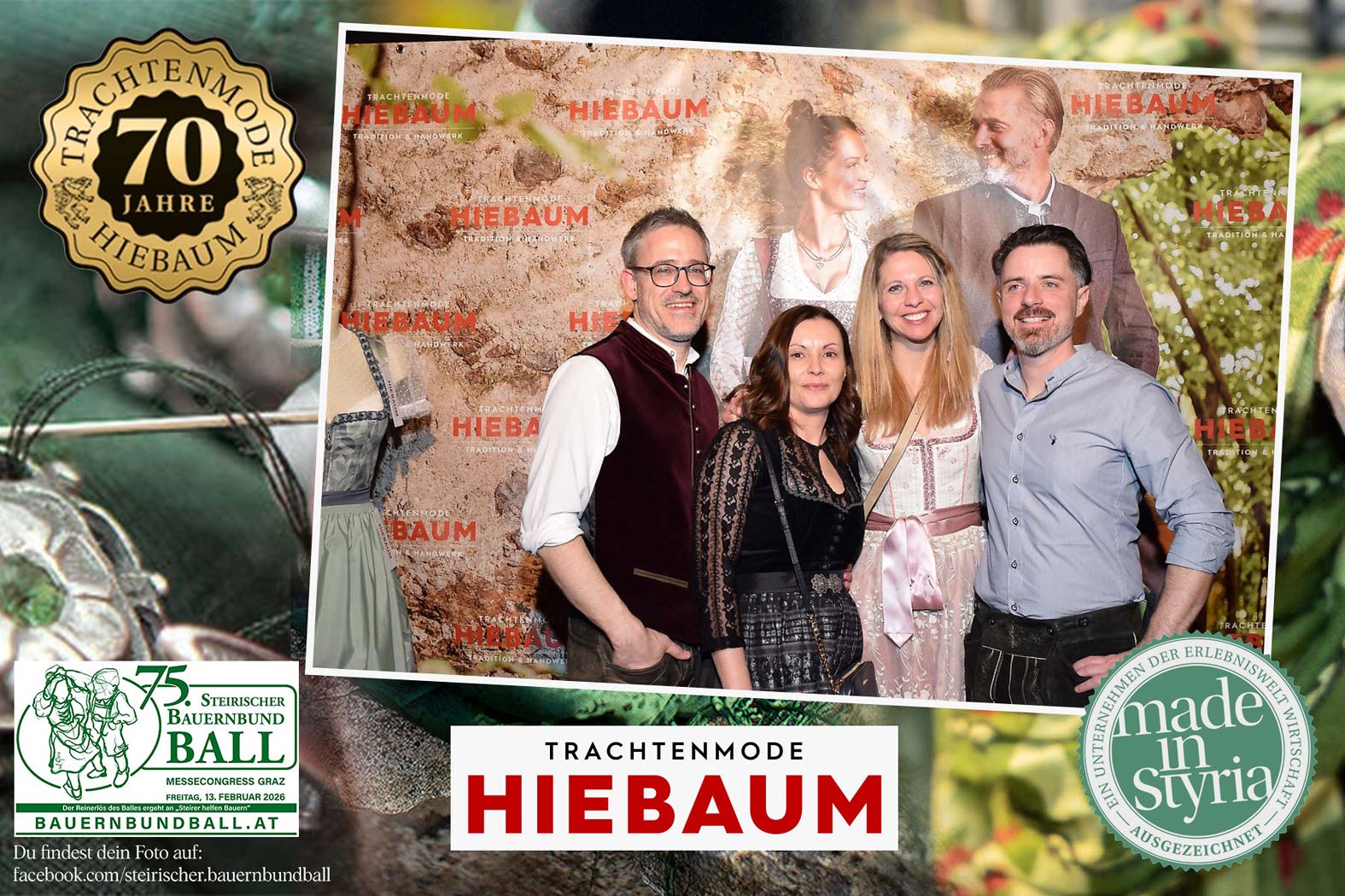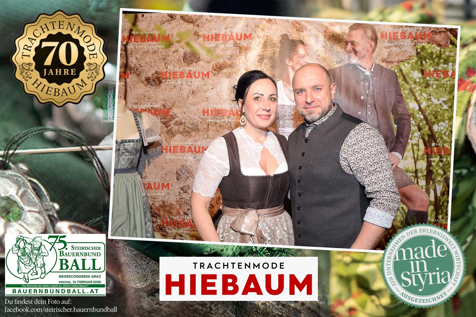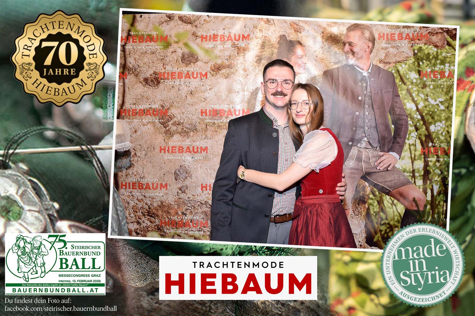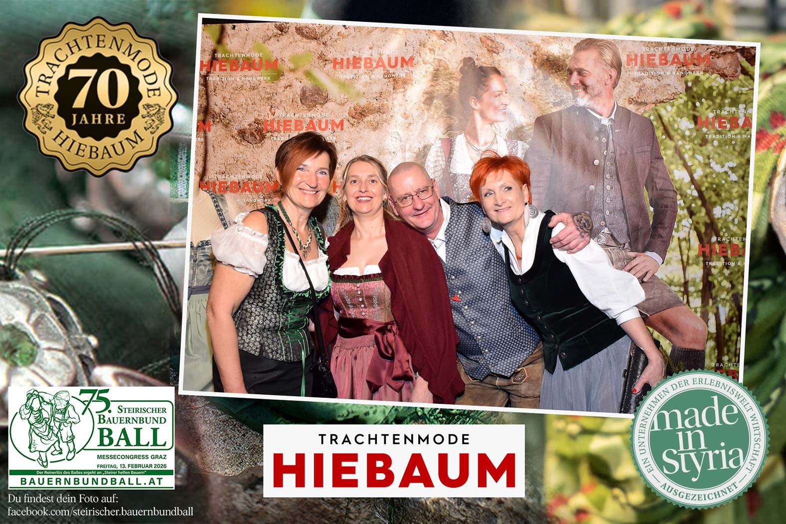 Trachtenmode Hiebaum war offizieller Partner des steirischen Bauernbundballs 2026. Zahlreiche Besucher haben sich in unserer Fotobox am Bauernbundball fotografieren lassen.