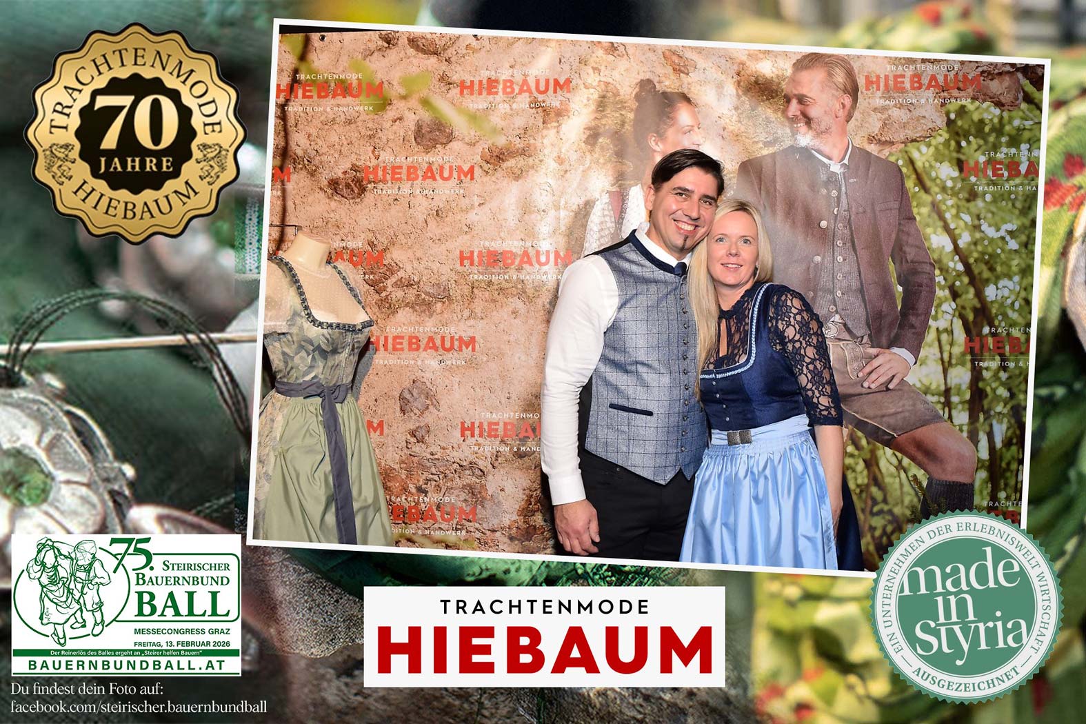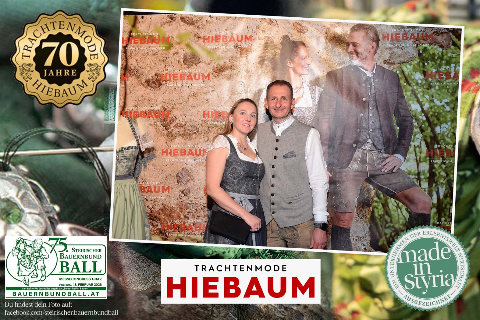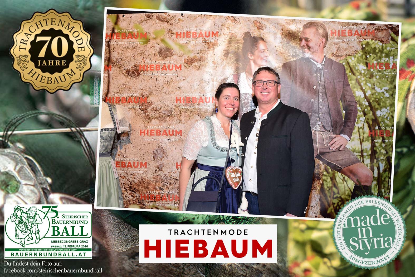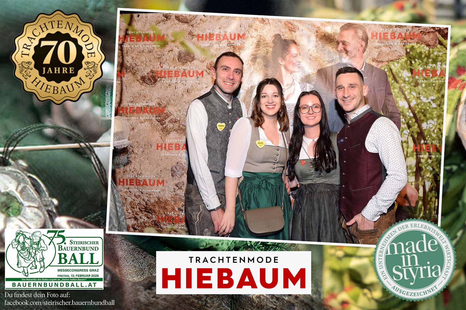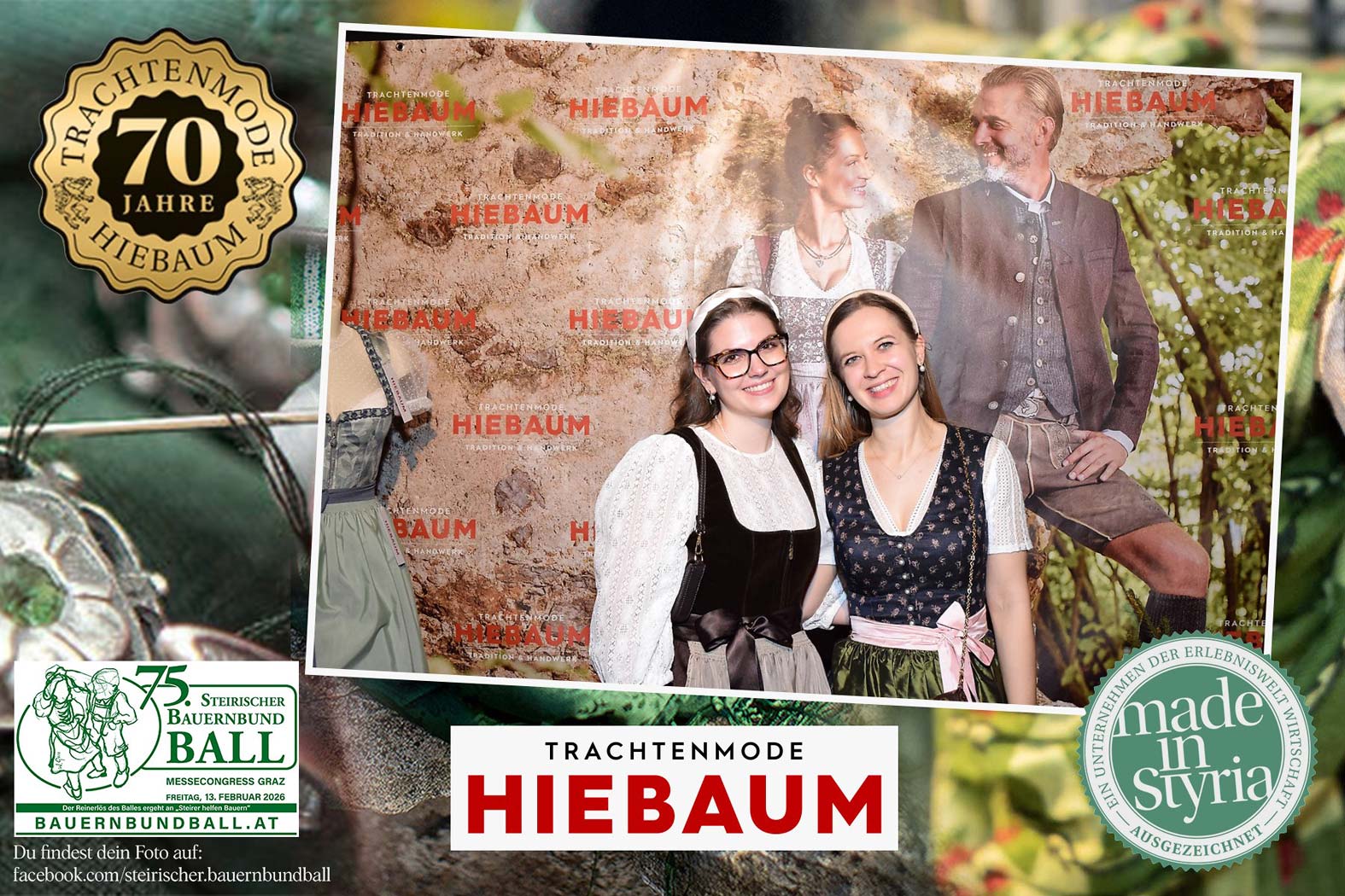 Trachtenmode Hiebaum war offizieller Partner des steirischen Bauernbundballs 2026. Zahlreiche Besucher haben sich in unserer Fotobox am Bauernbundball fotografieren lassen.