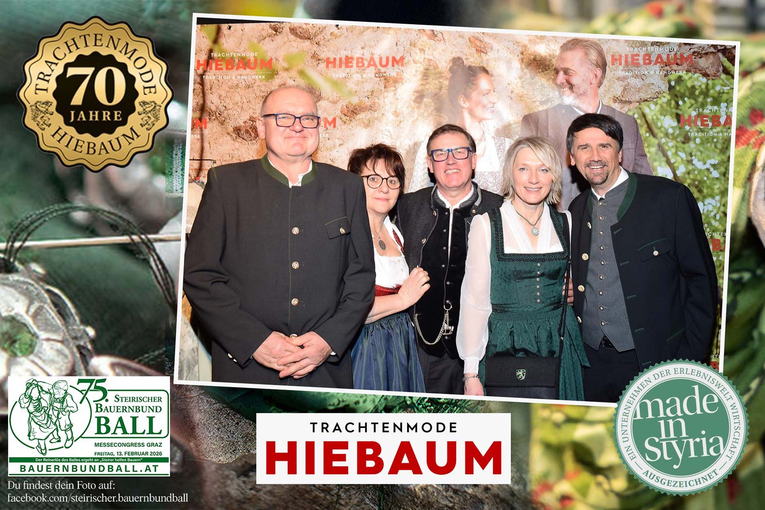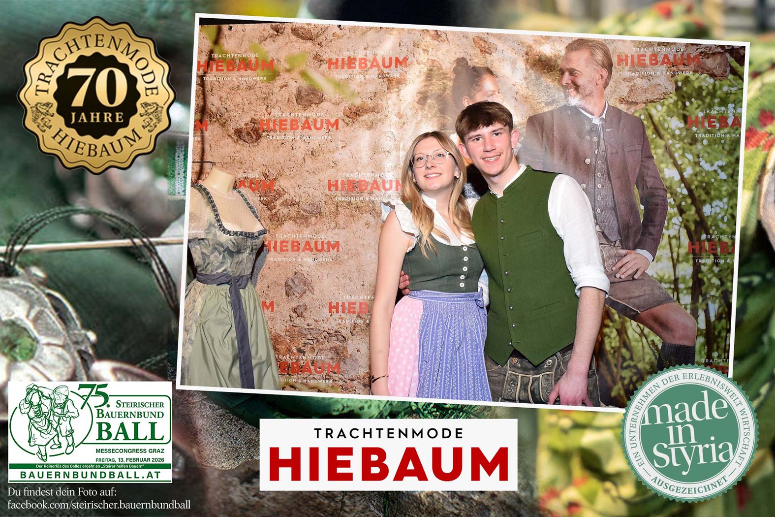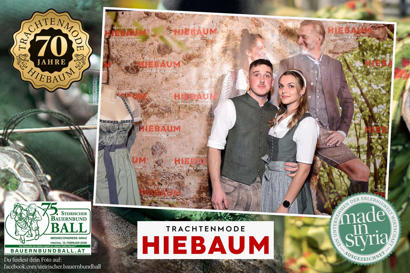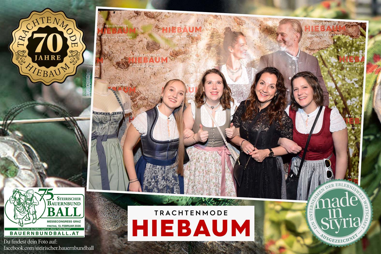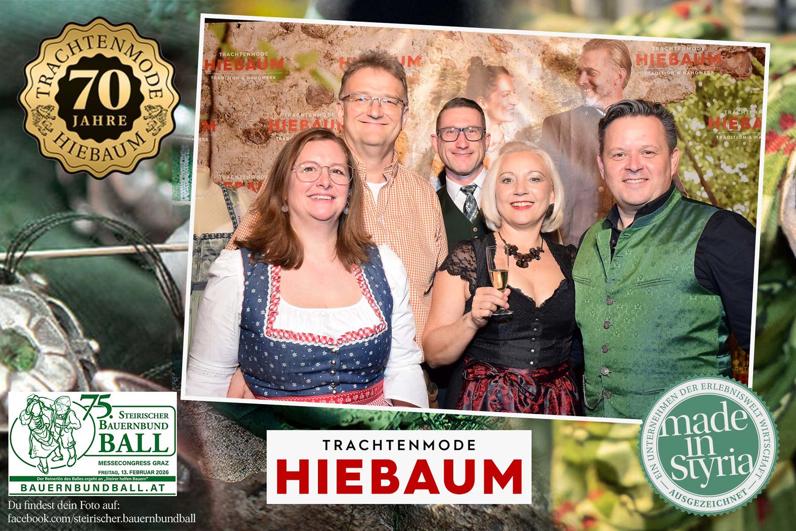 Trachtenmode Hiebaum war offizieller Partner des steirischen Bauernbundballs 2026. Zahlreiche Besucher haben sich in unserer Fotobox am Bauernbundball fotografieren lassen.
