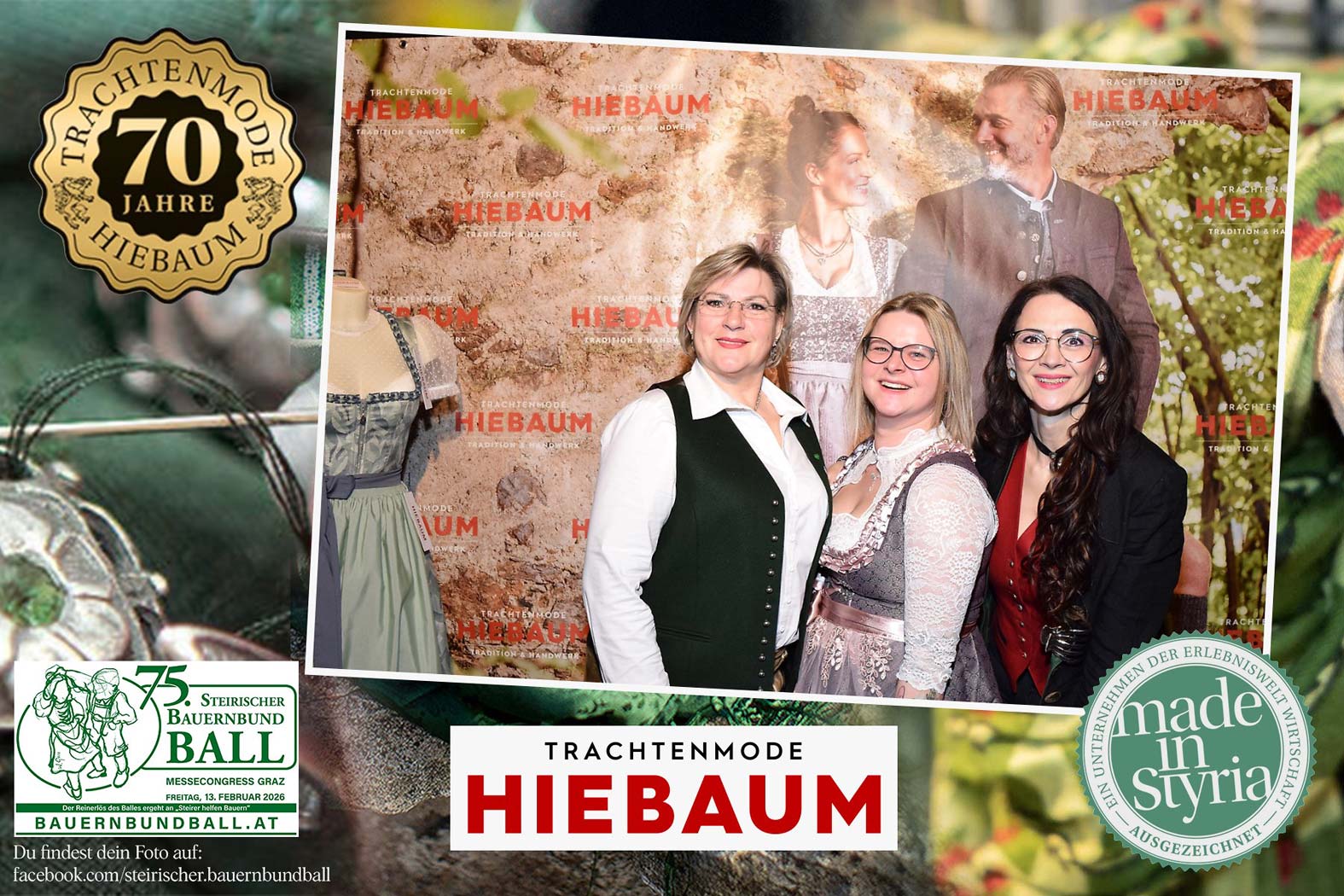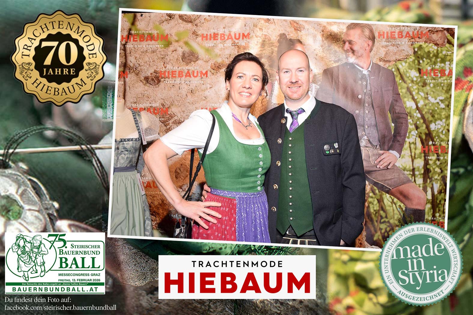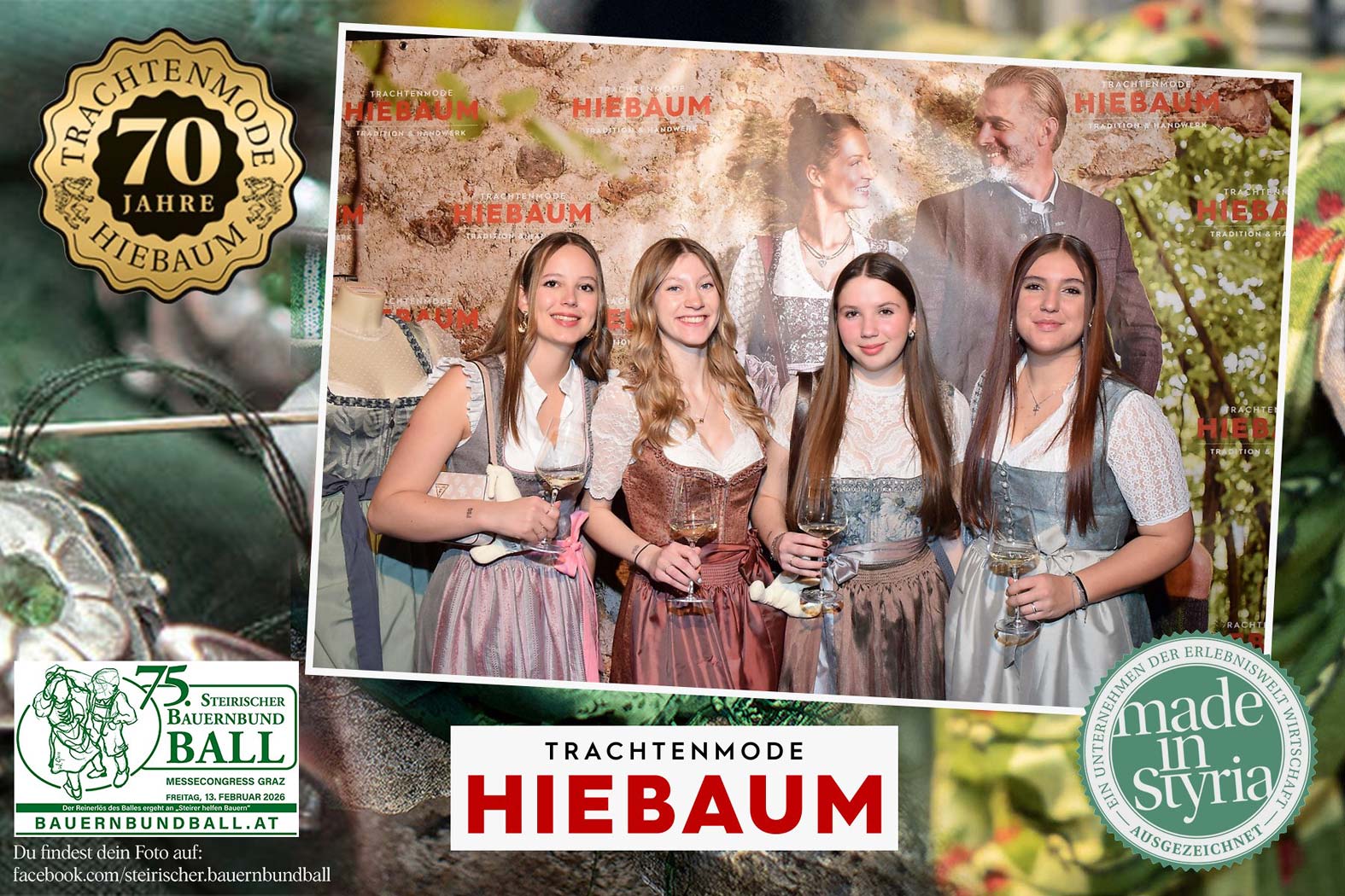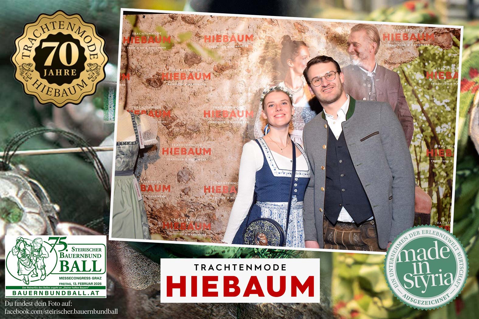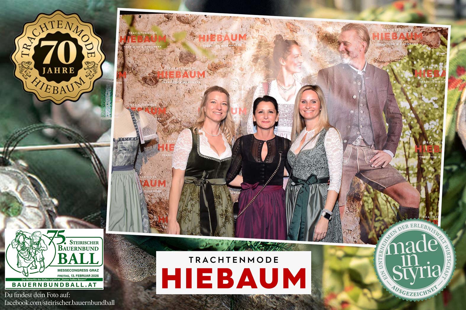 Trachtenmode Hiebaum war offizieller Partner des steirischen Bauernbundballs 2026. Zahlreiche Besucher haben sich in unserer Fotobox am Bauernbundball fotografieren lassen.