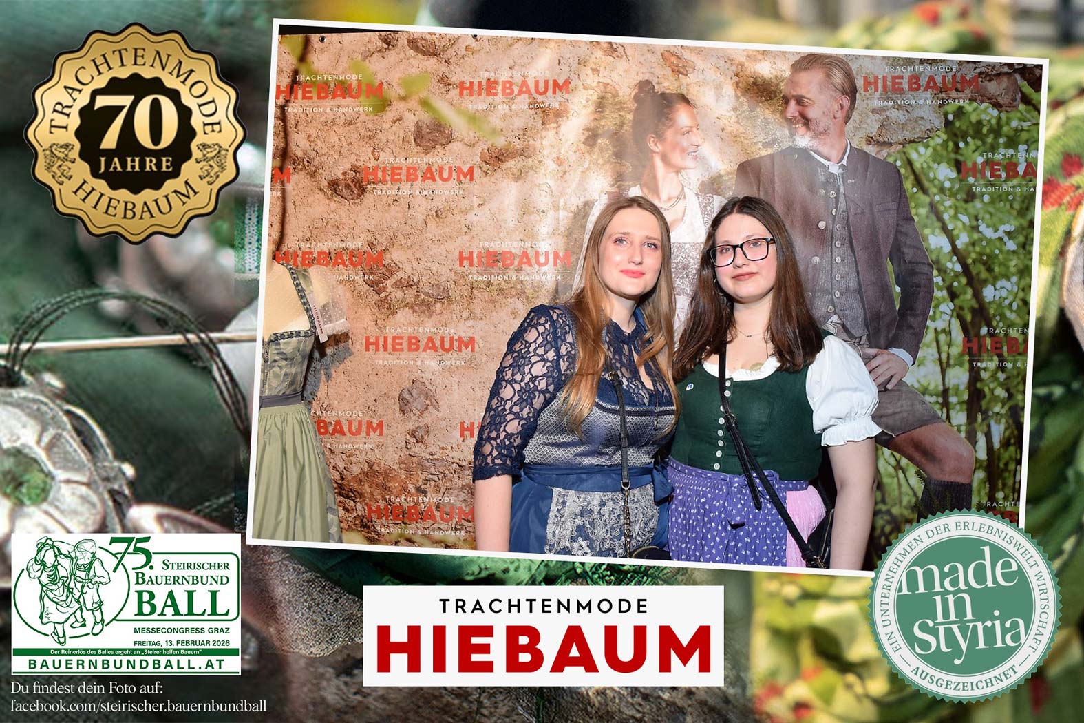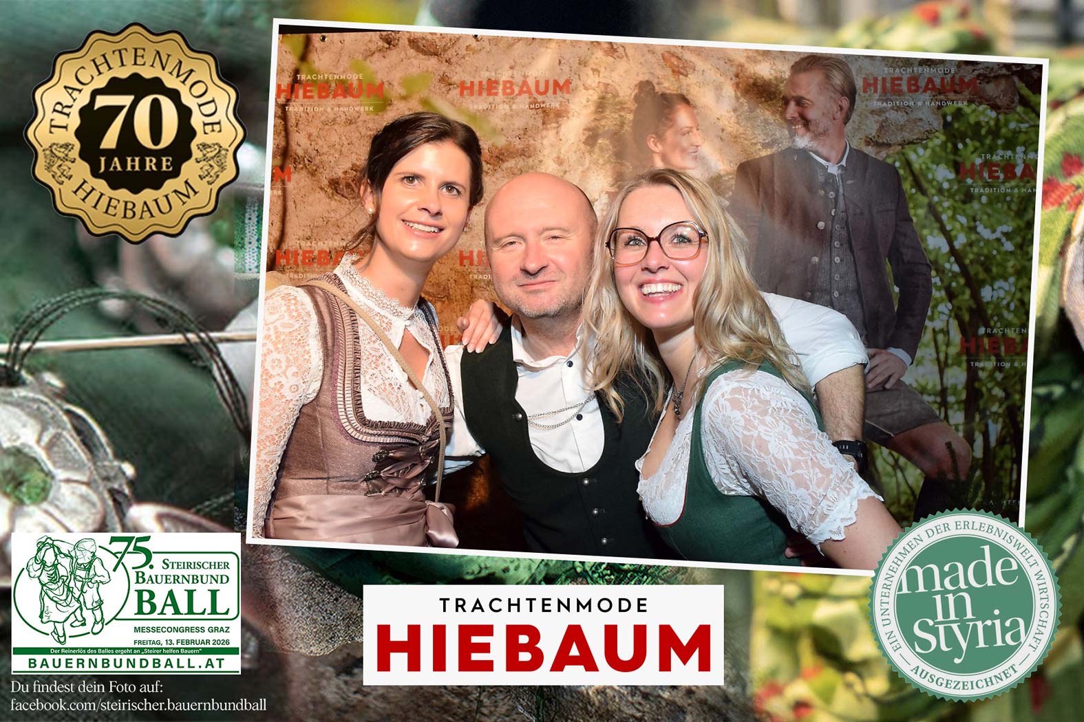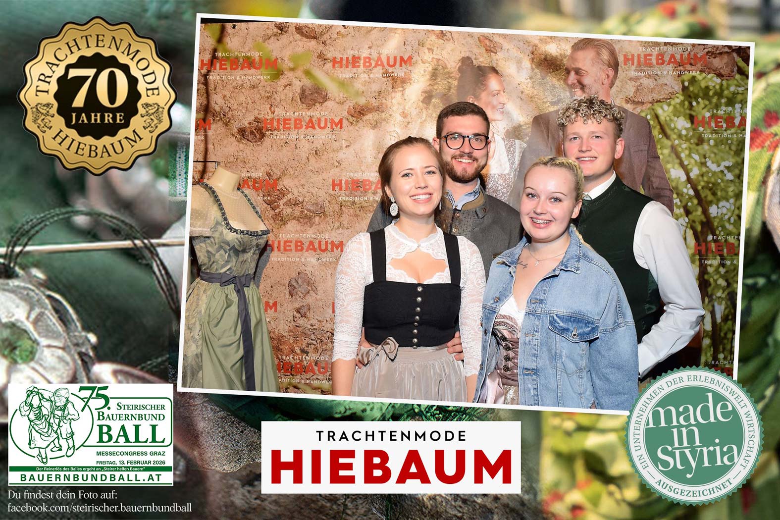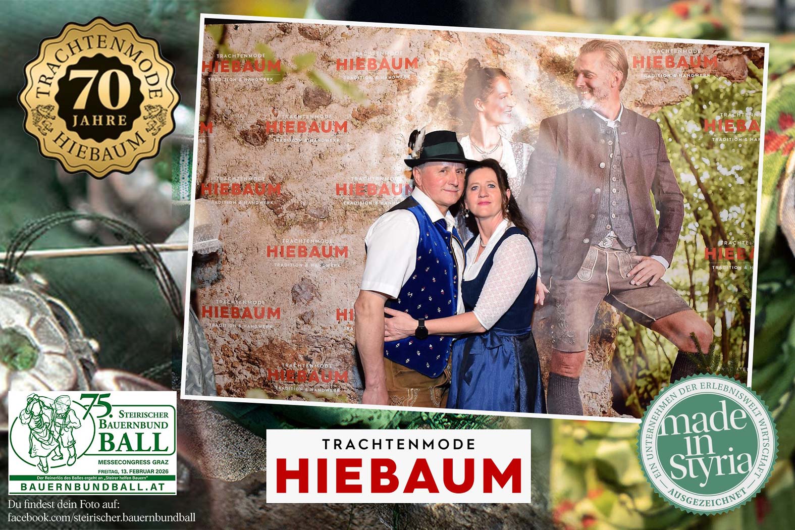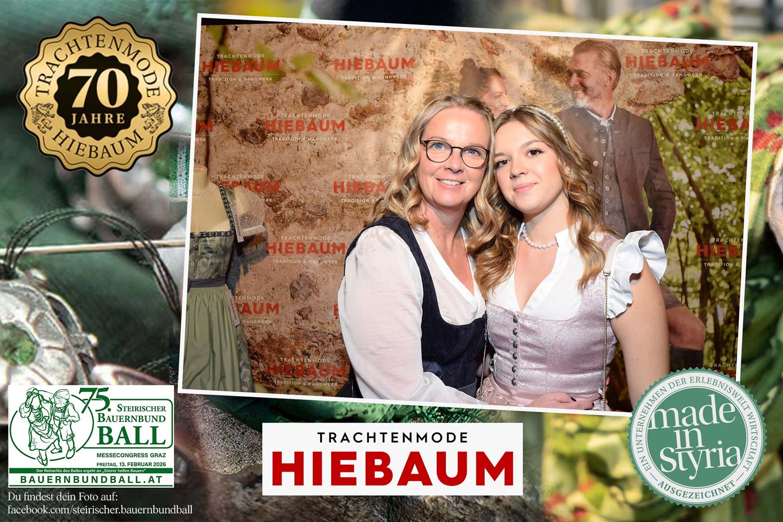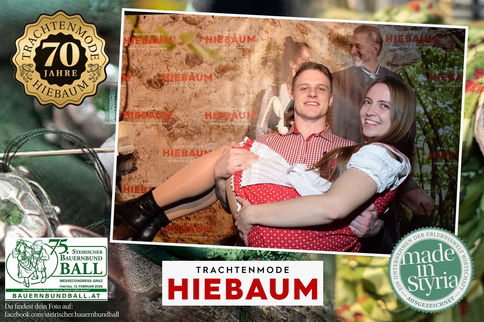 Trachtenmode Hiebaum war offizieller Partner des steirischen Bauernbundballs 2026. Zahlreiche Besucher haben sich in unserer Fotobox am Bauernbundball fotografieren lassen.