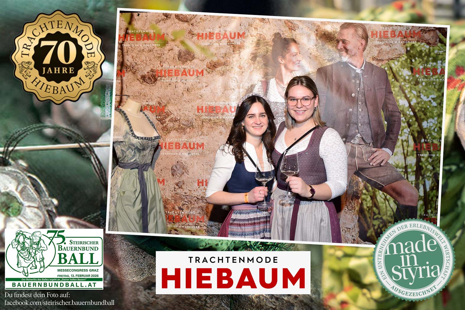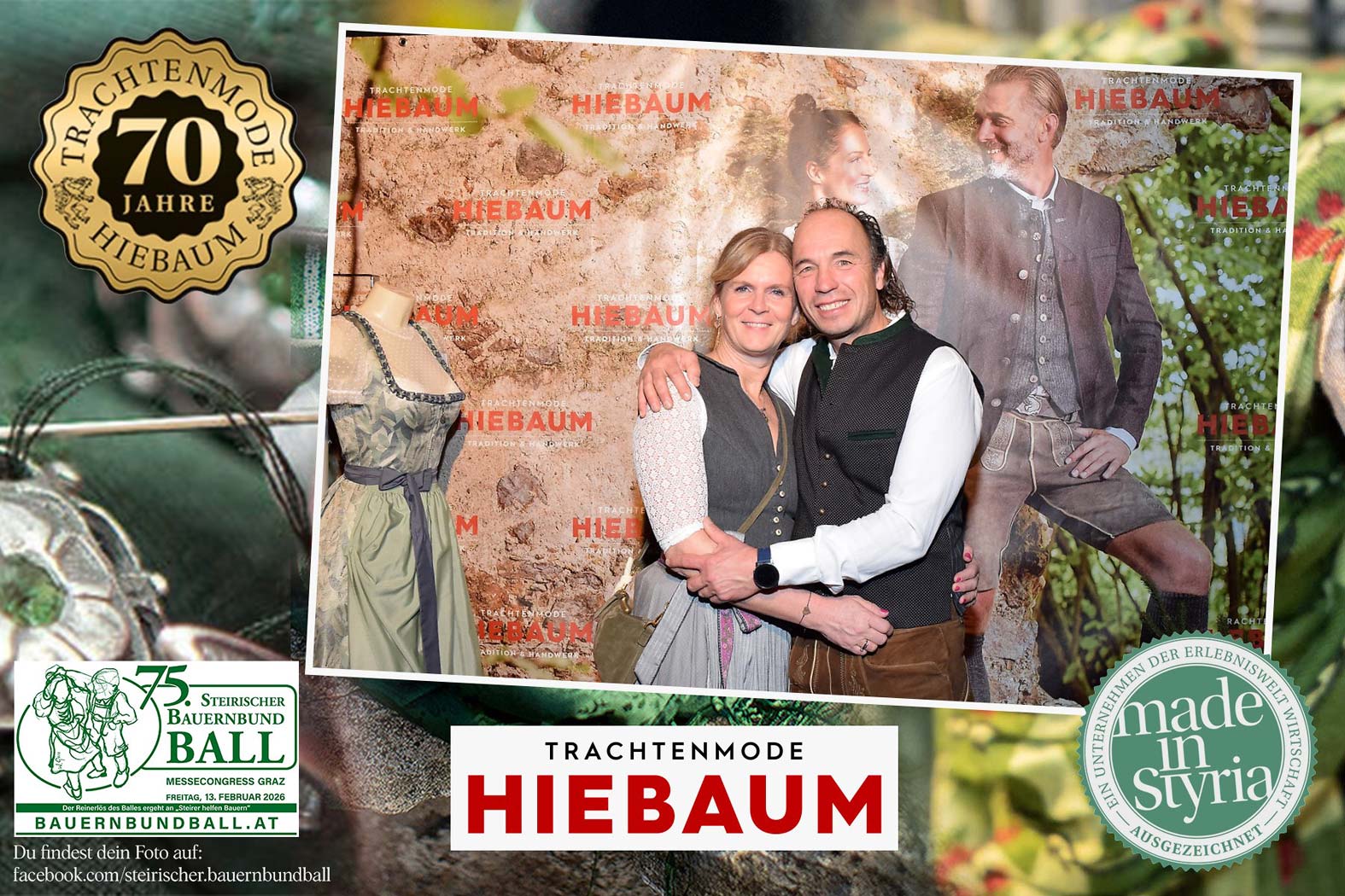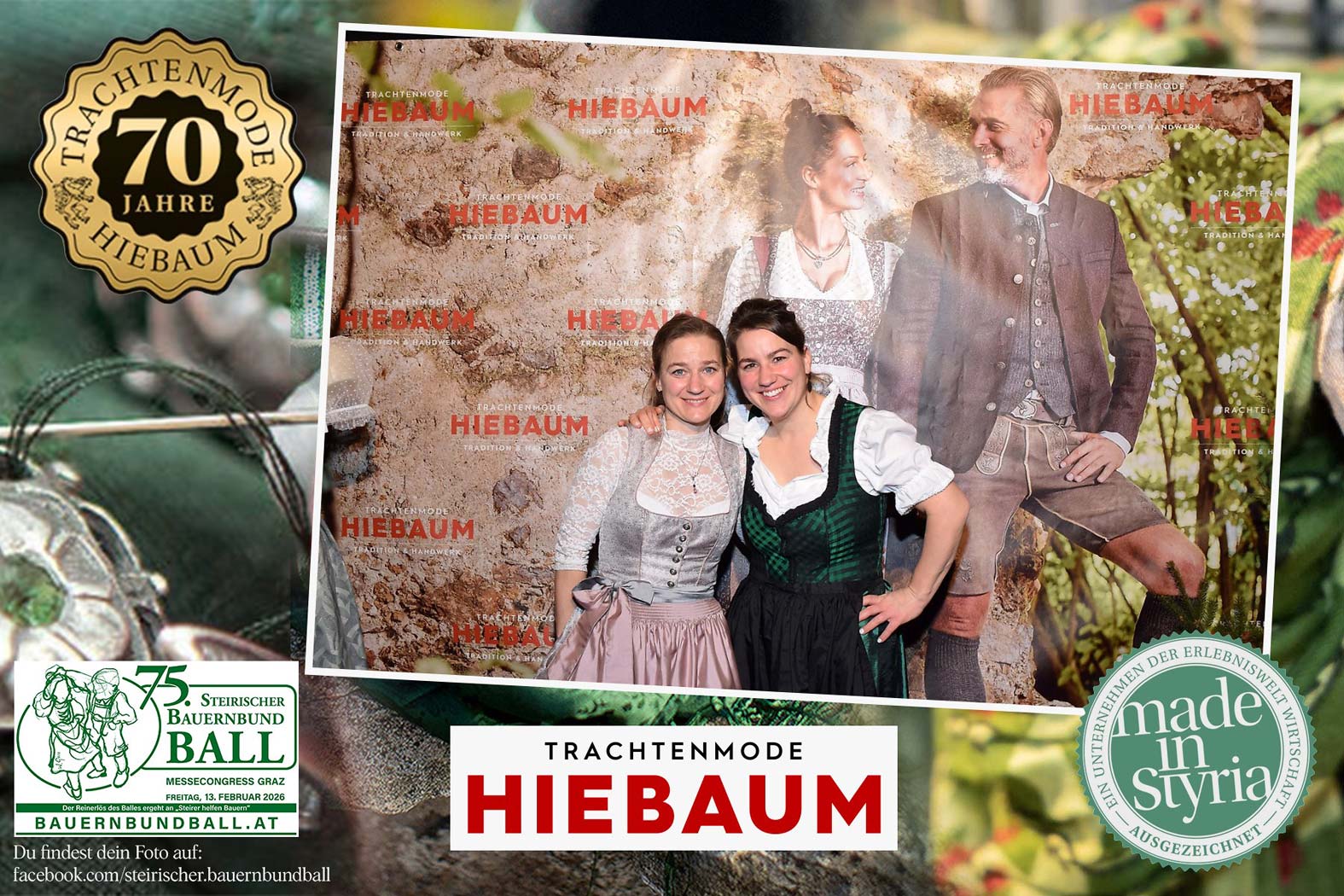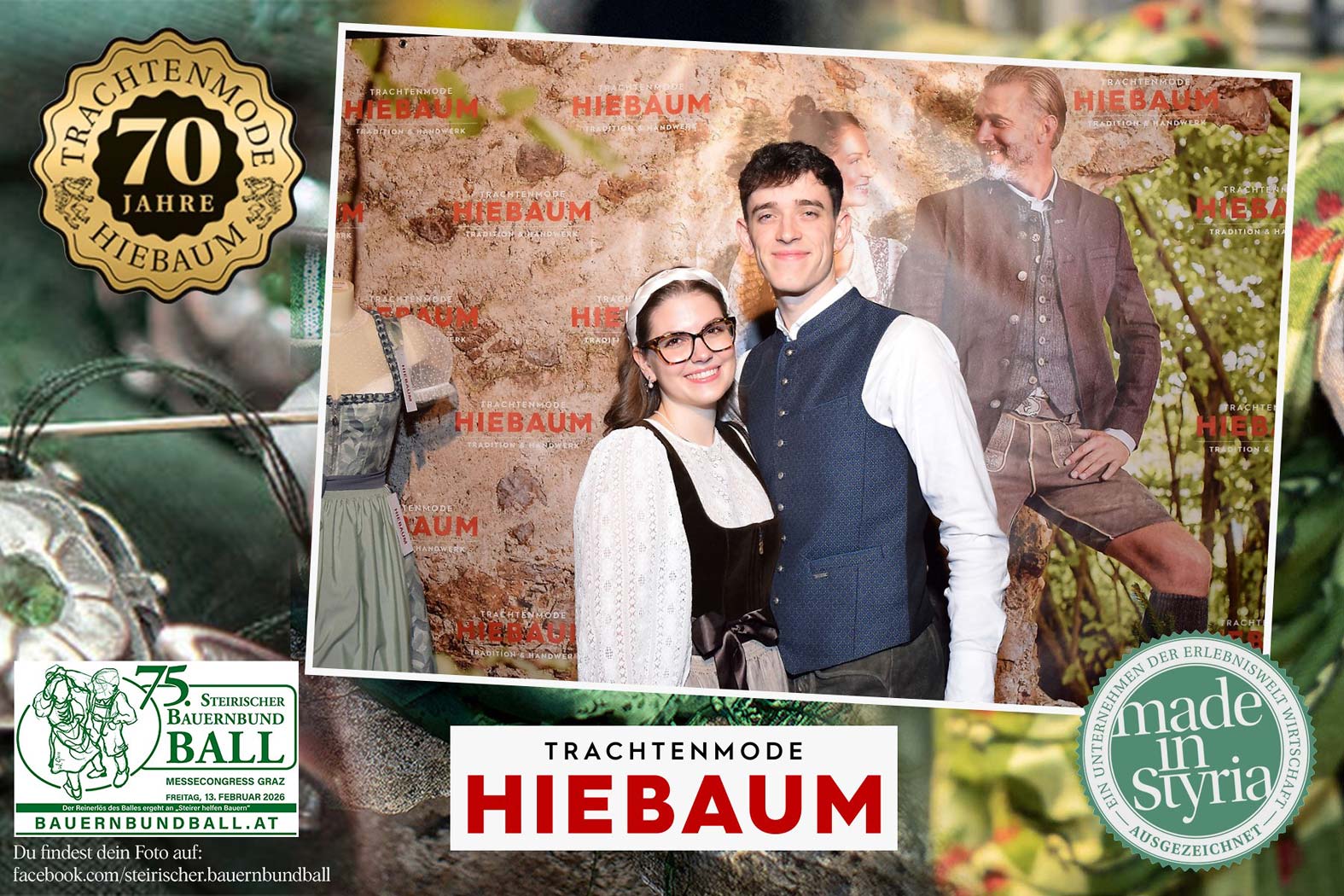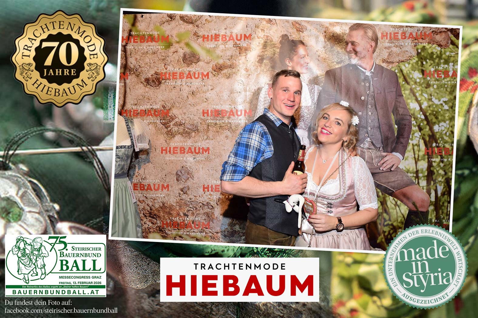 Trachtenmode Hiebaum war offizieller Partner des steirischen Bauernbundballs 2026. Zahlreiche Besucher haben sich in unserer Fotobox am Bauernbundball fotografieren lassen.