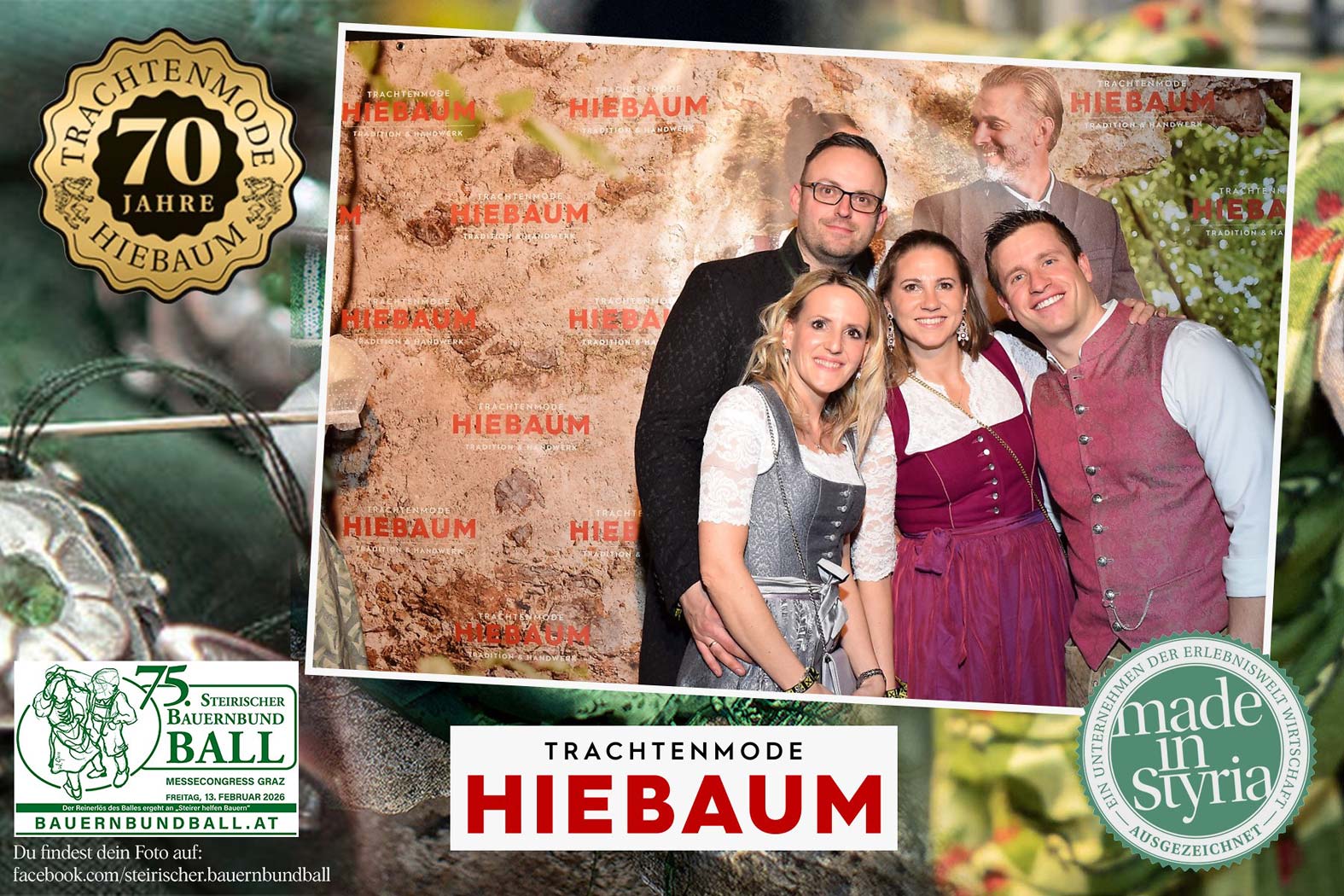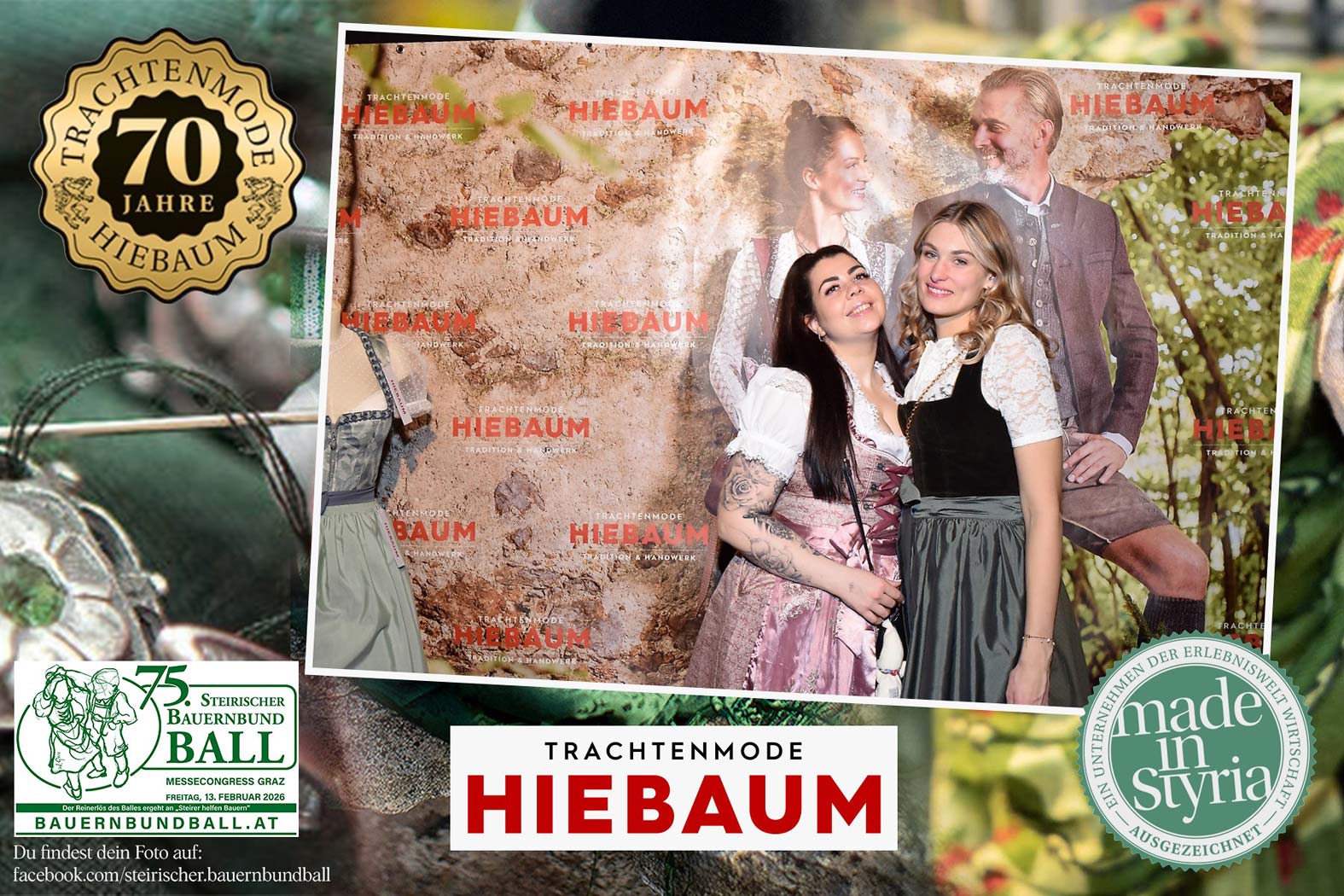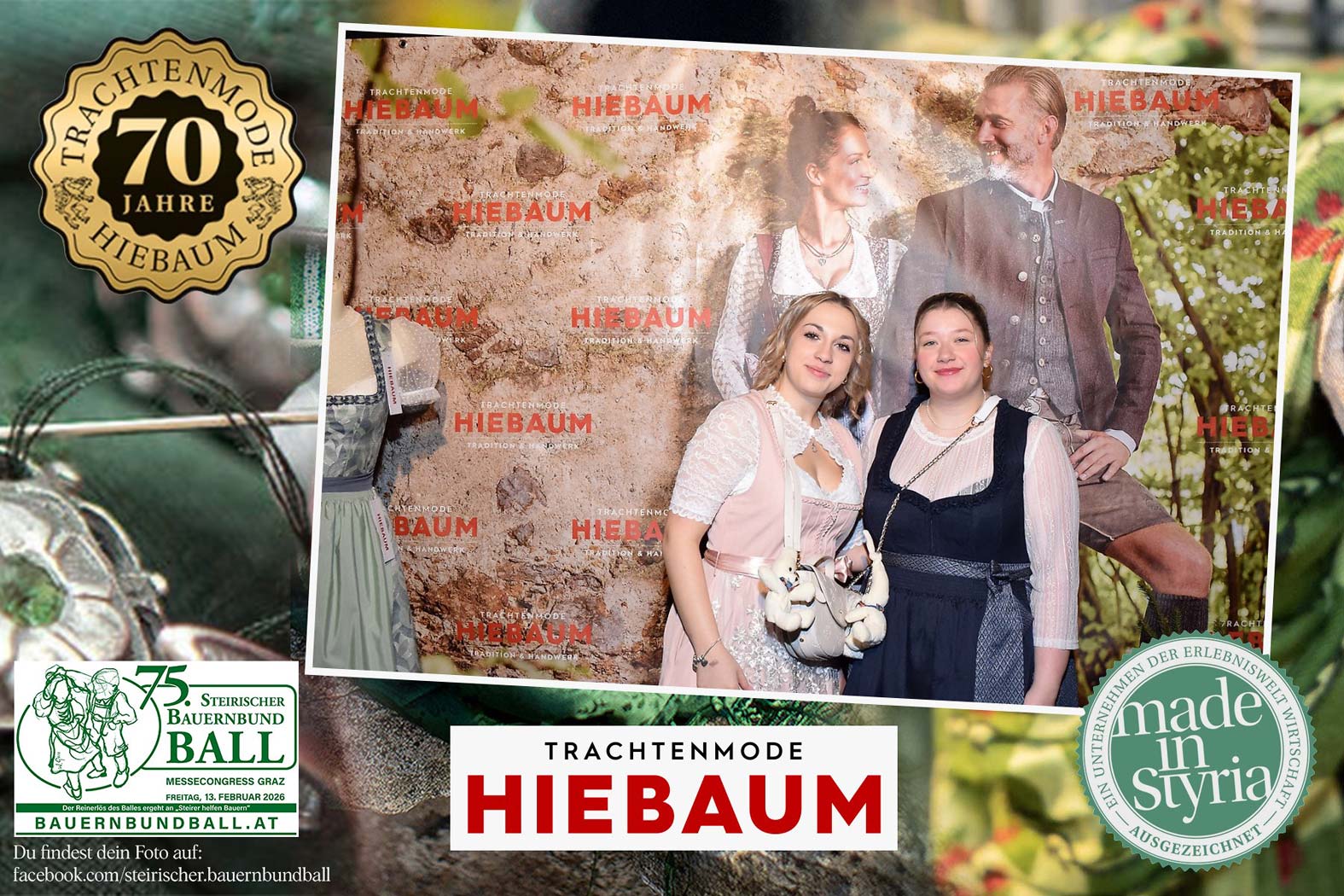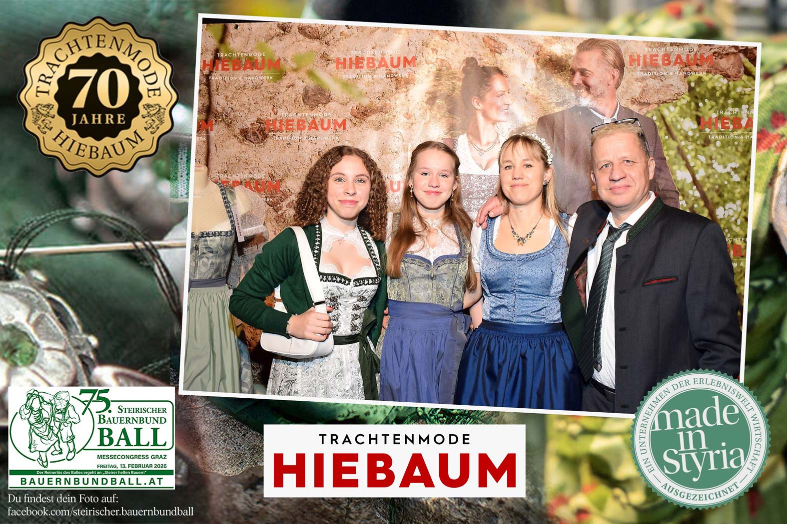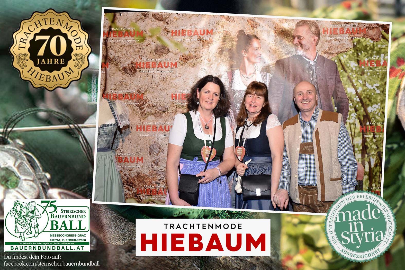 Trachtenmode Hiebaum war offizieller Partner des steirischen Bauernbundballs 2026. Zahlreiche Besucher haben sich in unserer Fotobox am Bauernbundball fotografieren lassen.