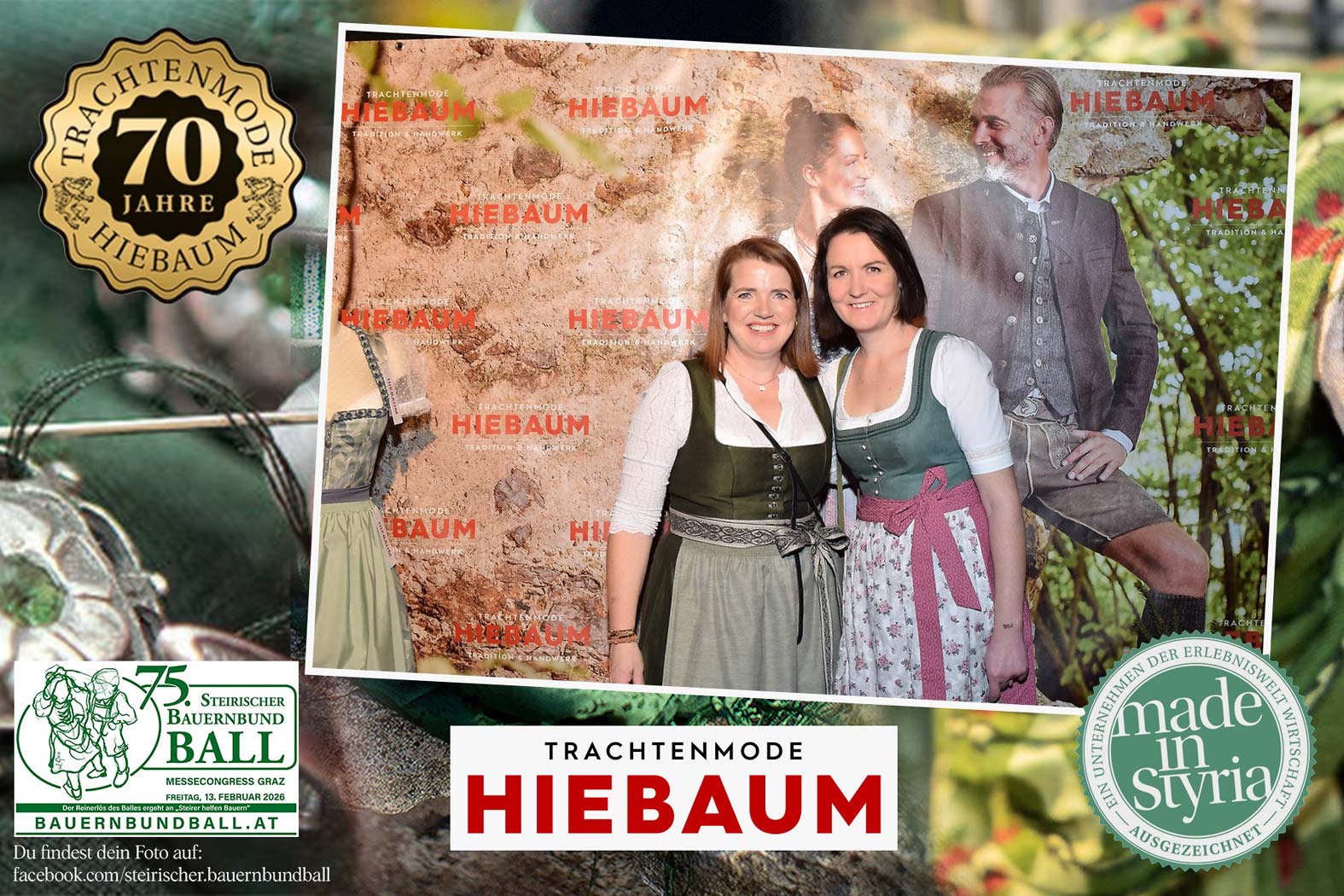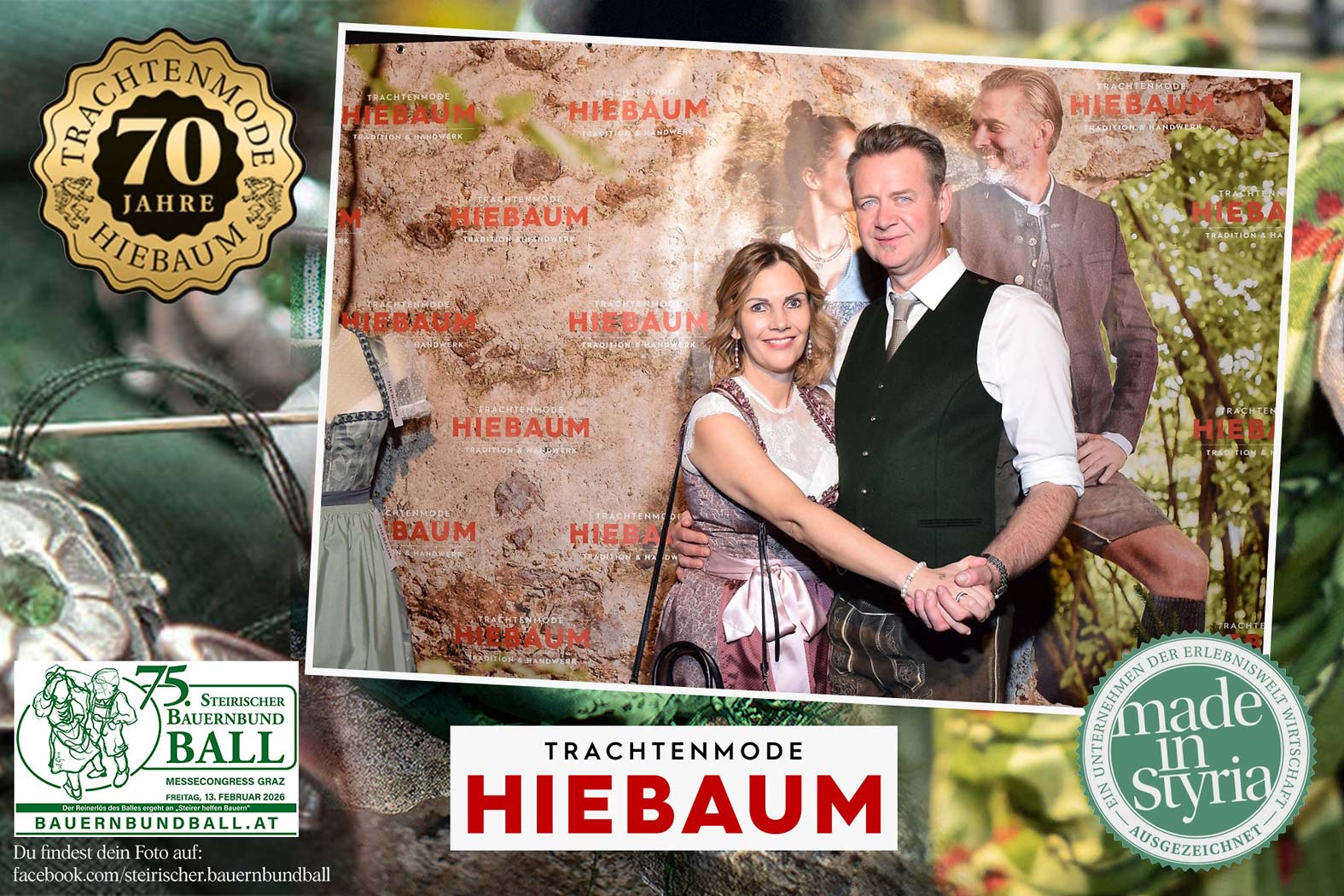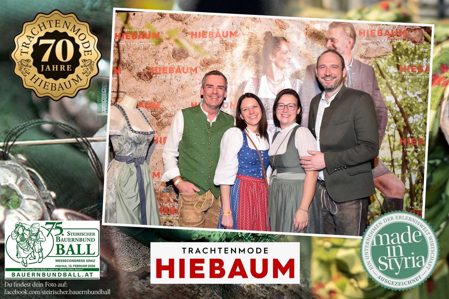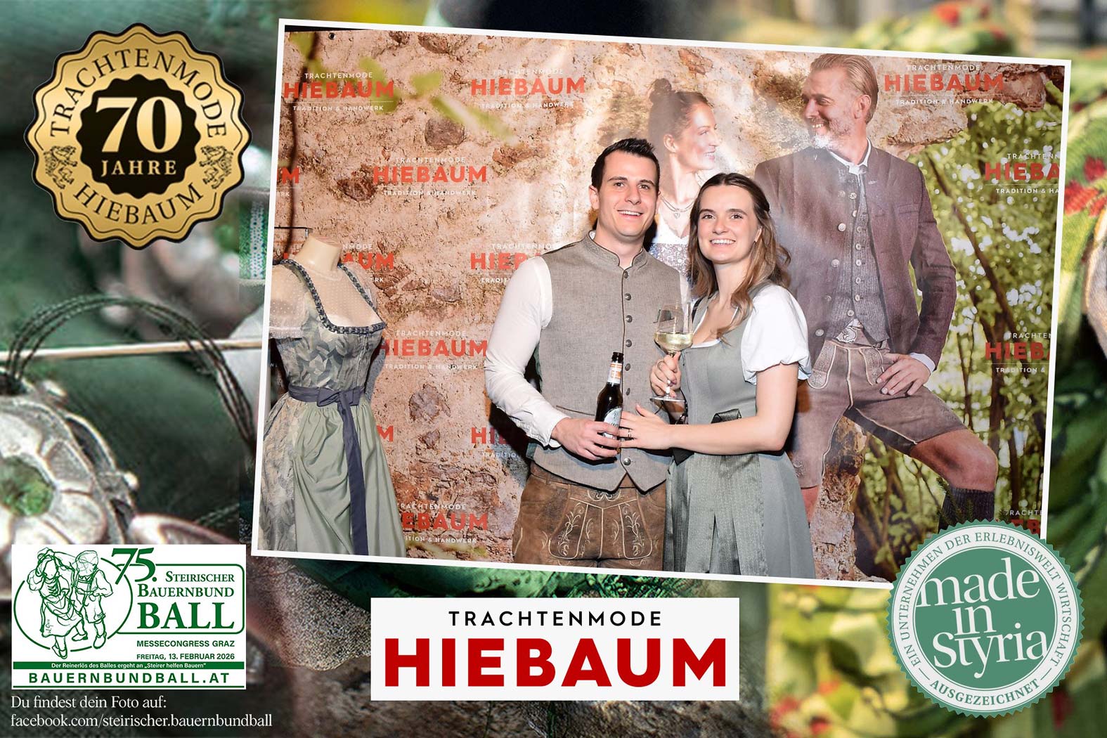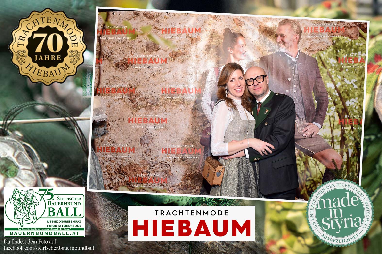 Trachtenmode Hiebaum war offizieller Partner des steirischen Bauernbundballs 2026. Zahlreiche Besucher haben sich in unserer Fotobox am Bauernbundball fotografieren lassen.