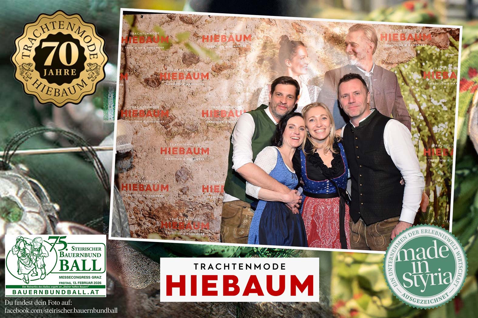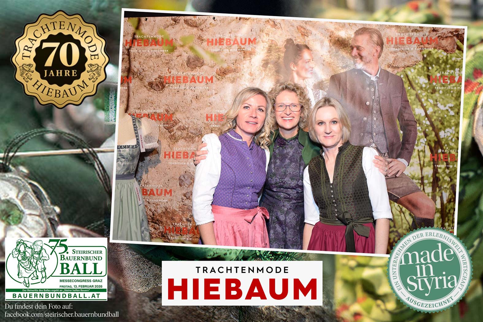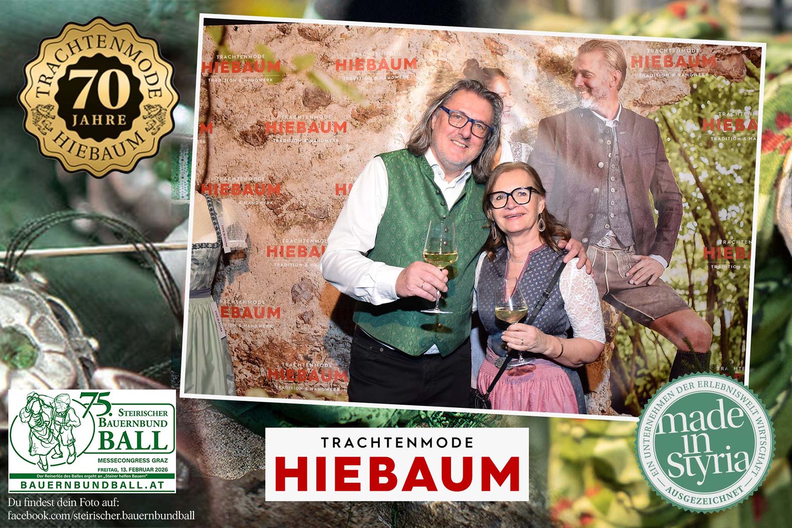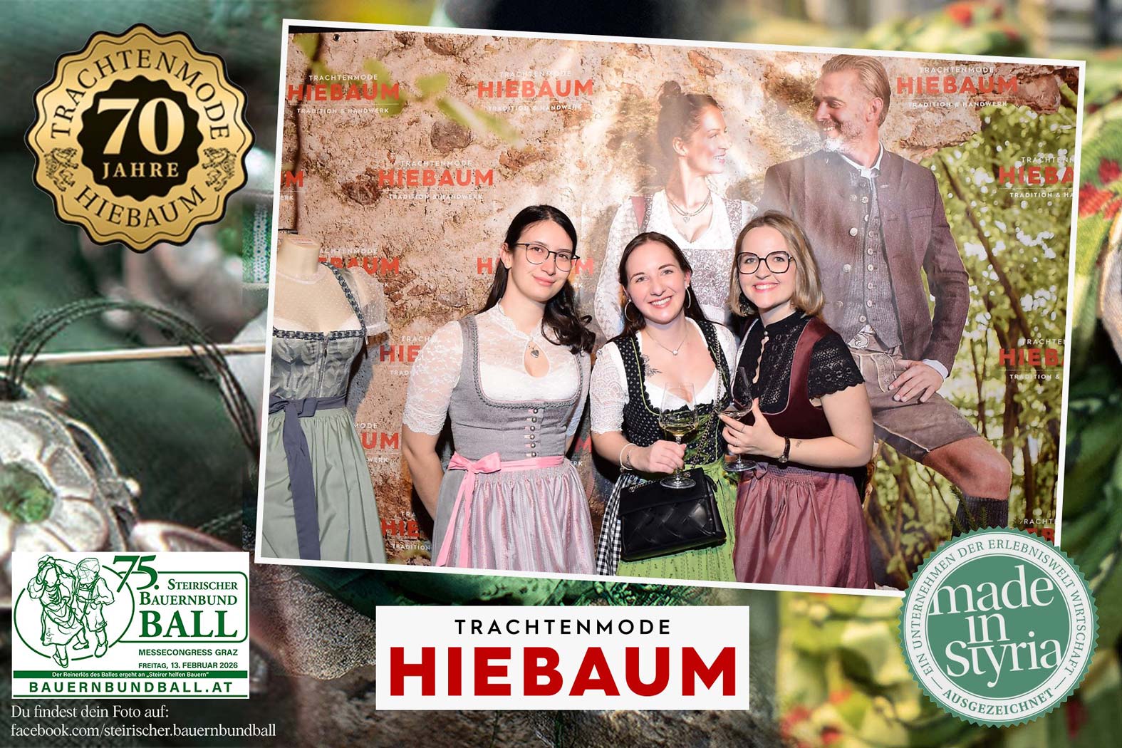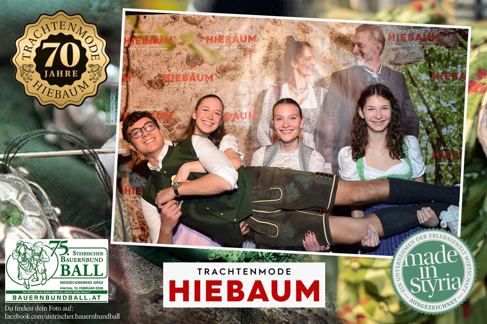 Trachtenmode Hiebaum war offizieller Partner des steirischen Bauernbundballs 2026. Zahlreiche Besucher haben sich in unserer Fotobox am Bauernbundball fotografieren lassen.