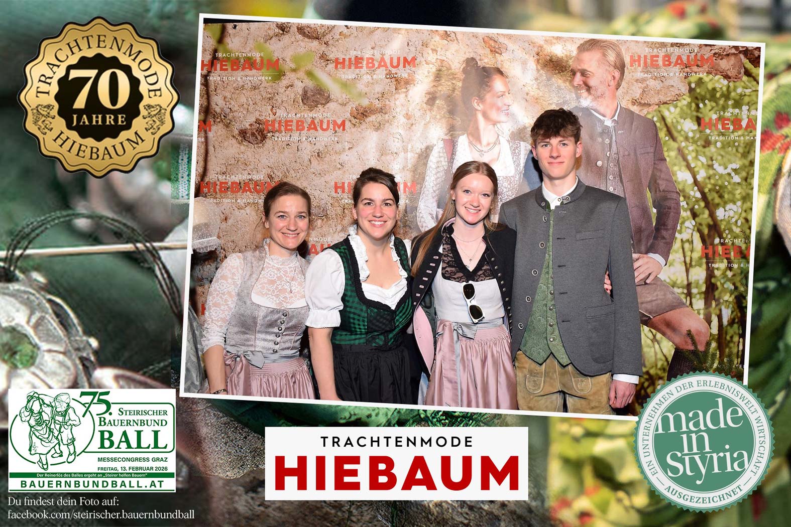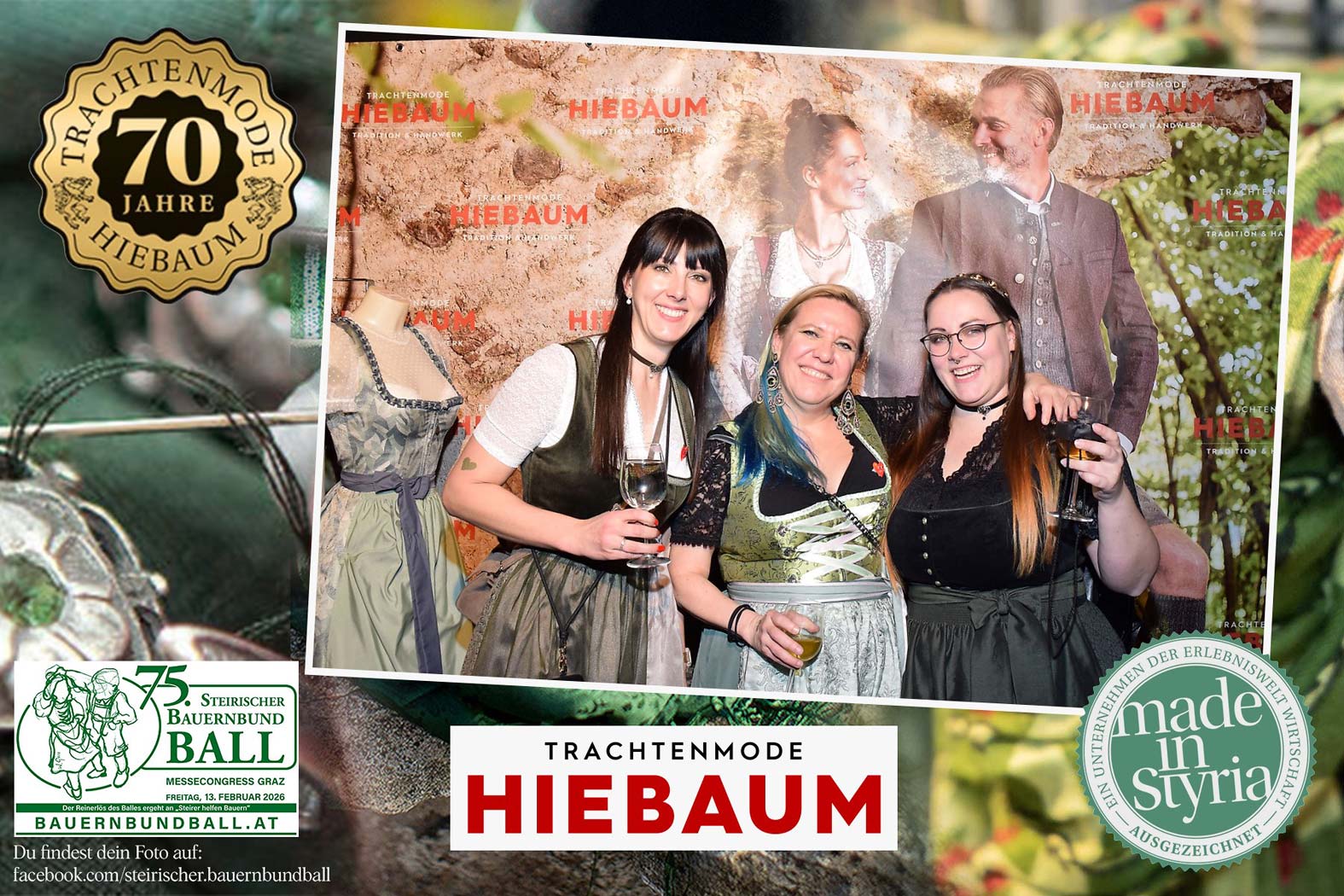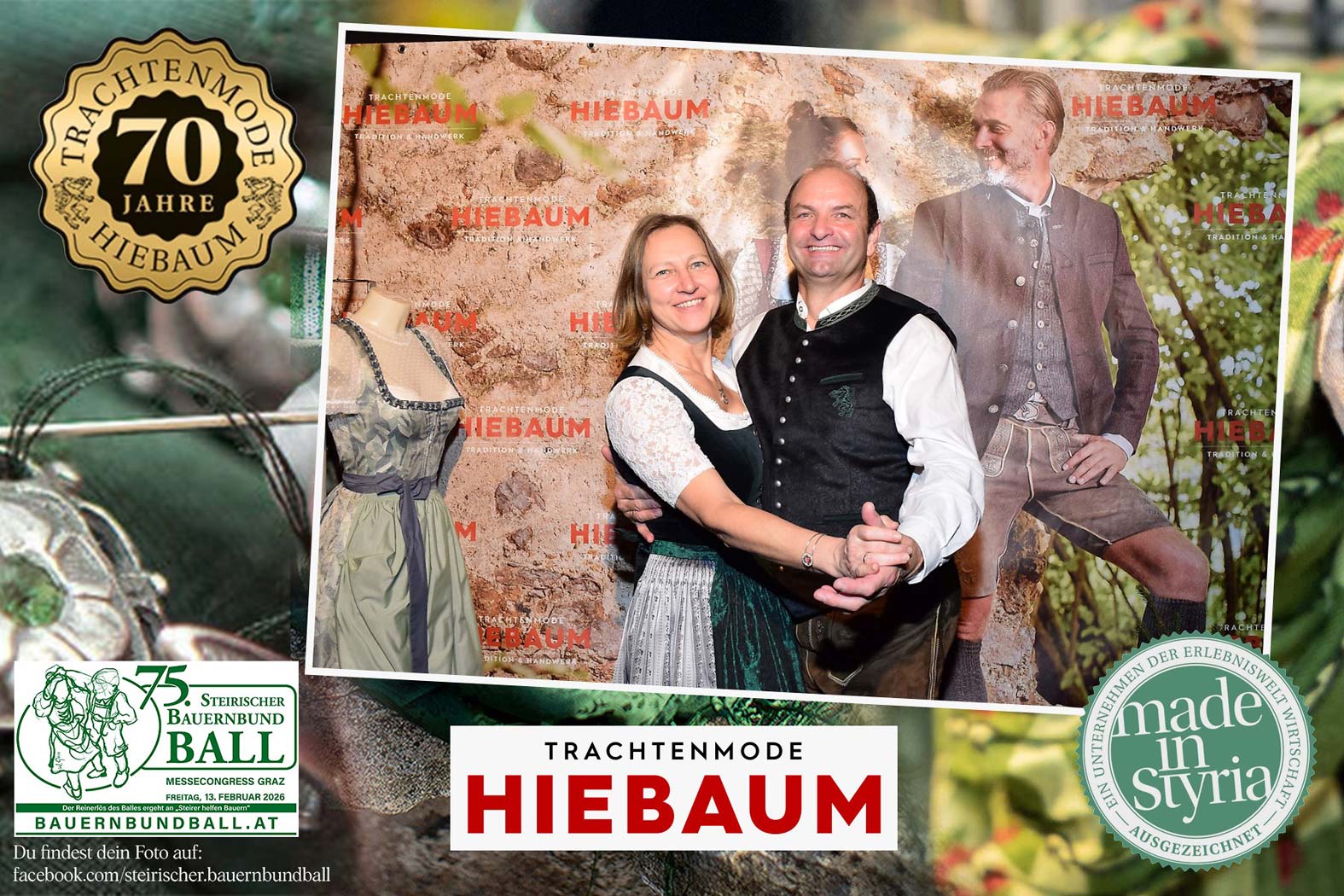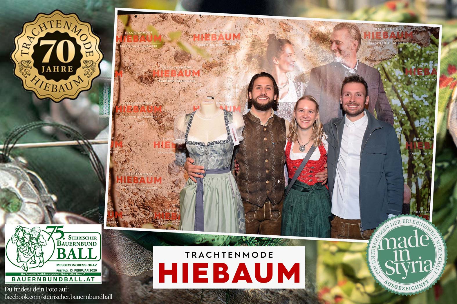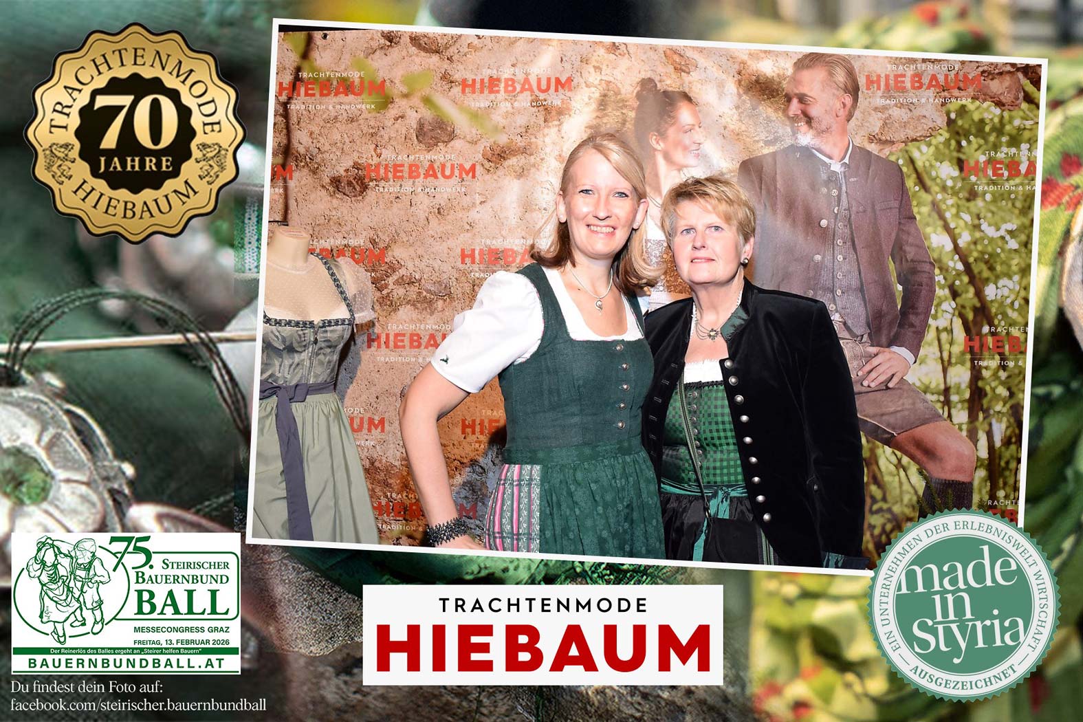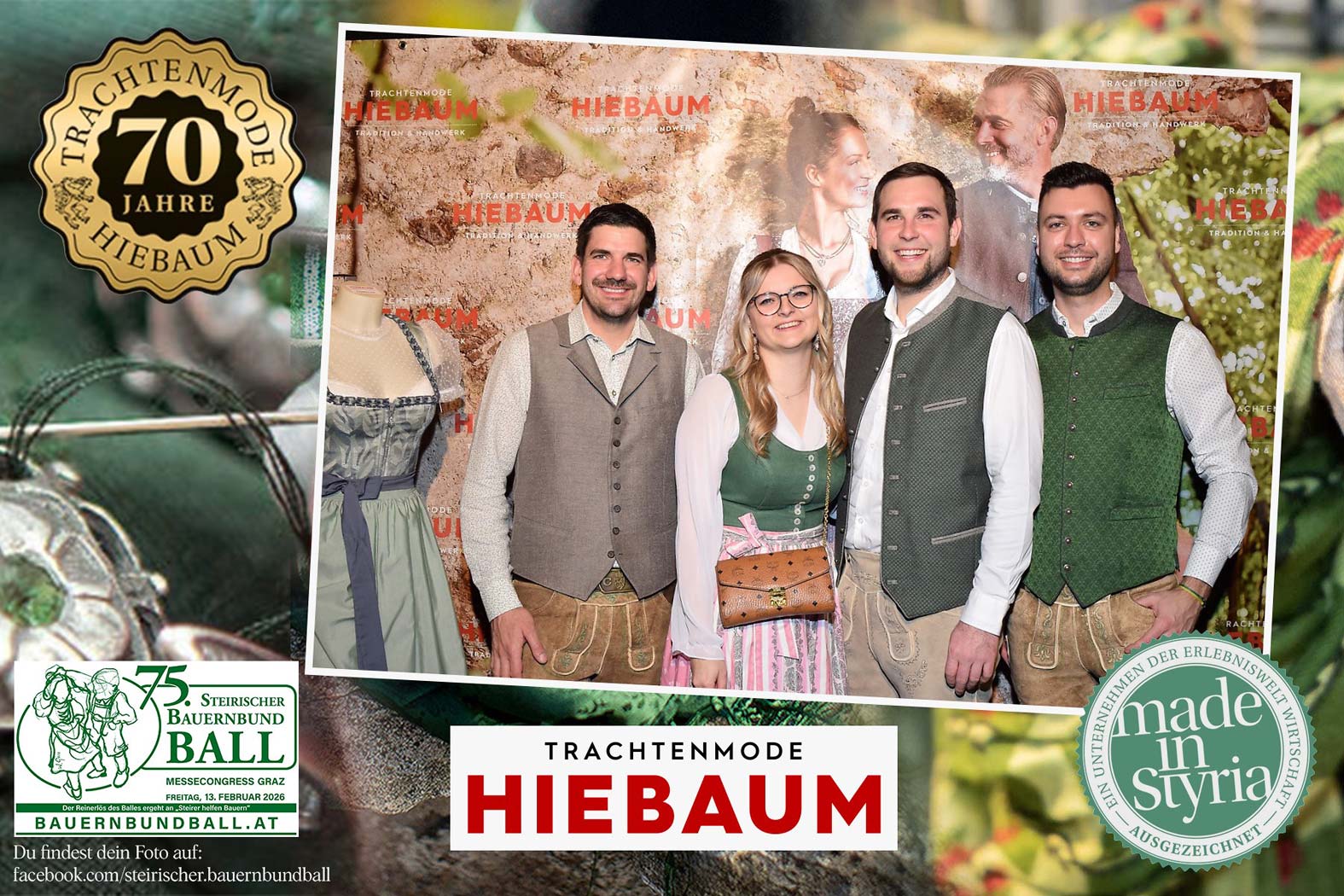 Trachtenmode Hiebaum war offizieller Partner des steirischen Bauernbundballs 2026. Zahlreiche Besucher haben sich in unserer Fotobox am Bauernbundball fotografieren lassen.