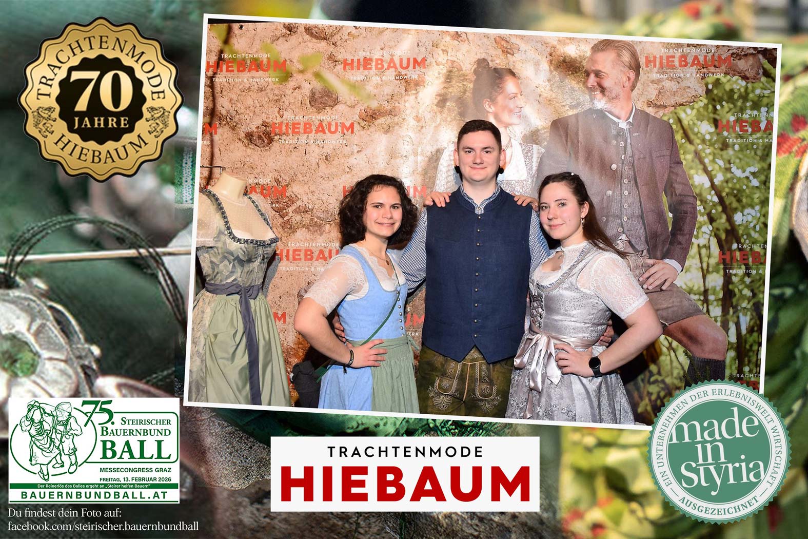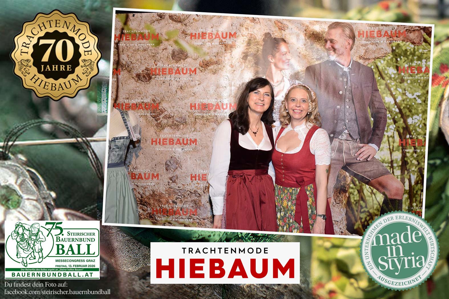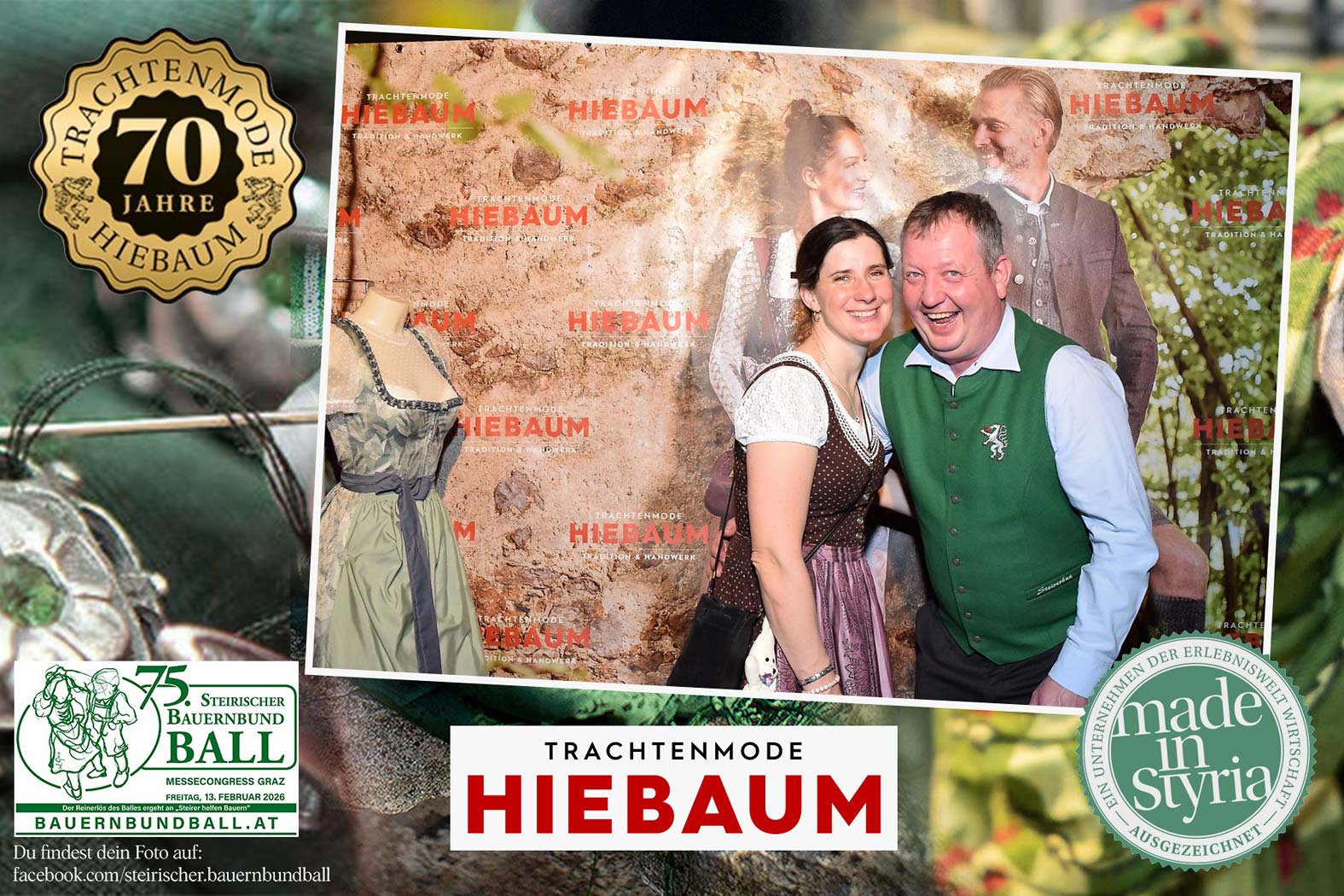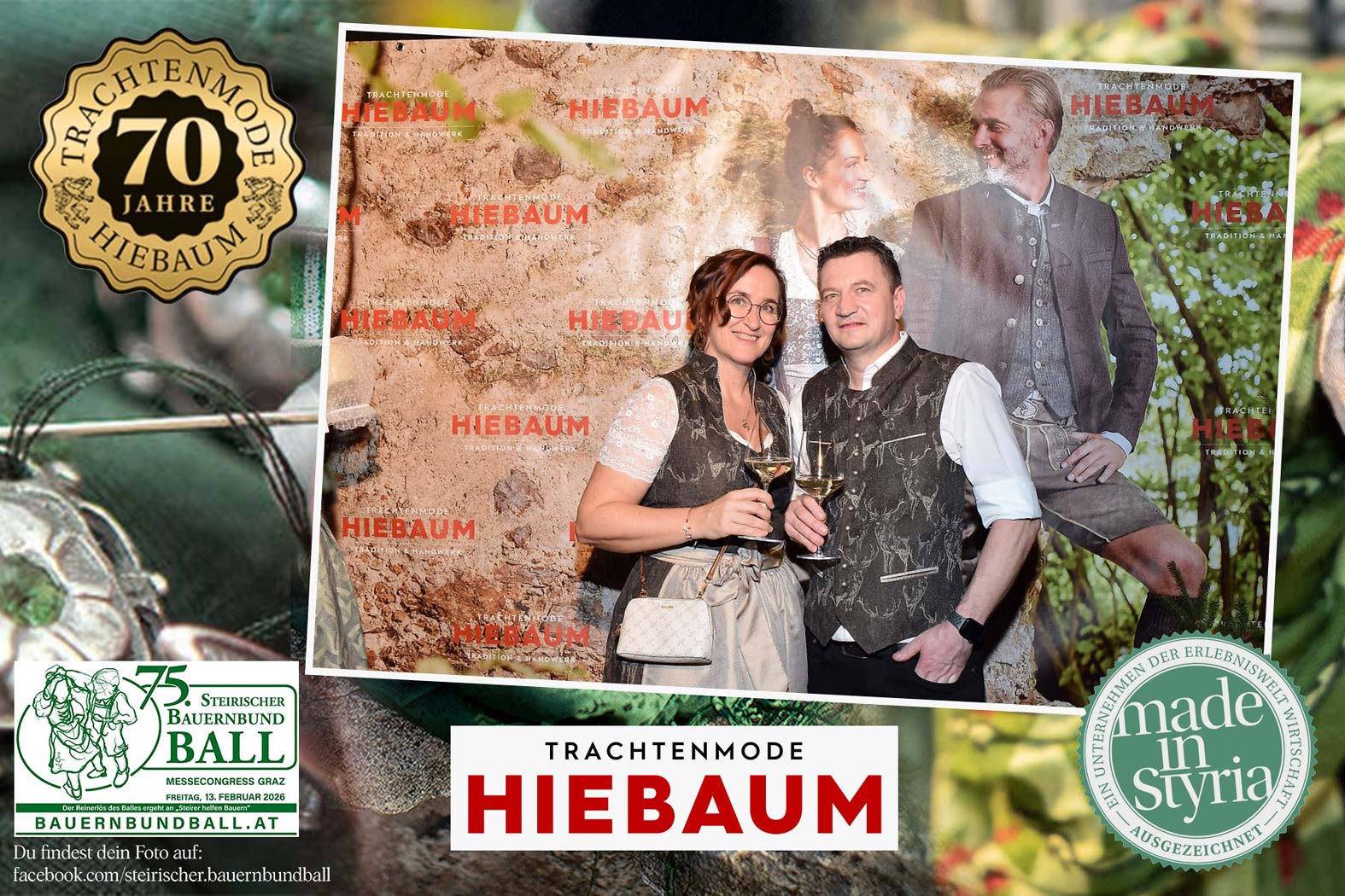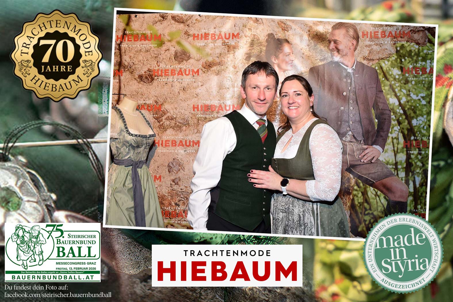 Trachtenmode Hiebaum war offizieller Partner des steirischen Bauernbundballs 2026. Zahlreiche Besucher haben sich in unserer Fotobox am Bauernbundball fotografieren lassen.
