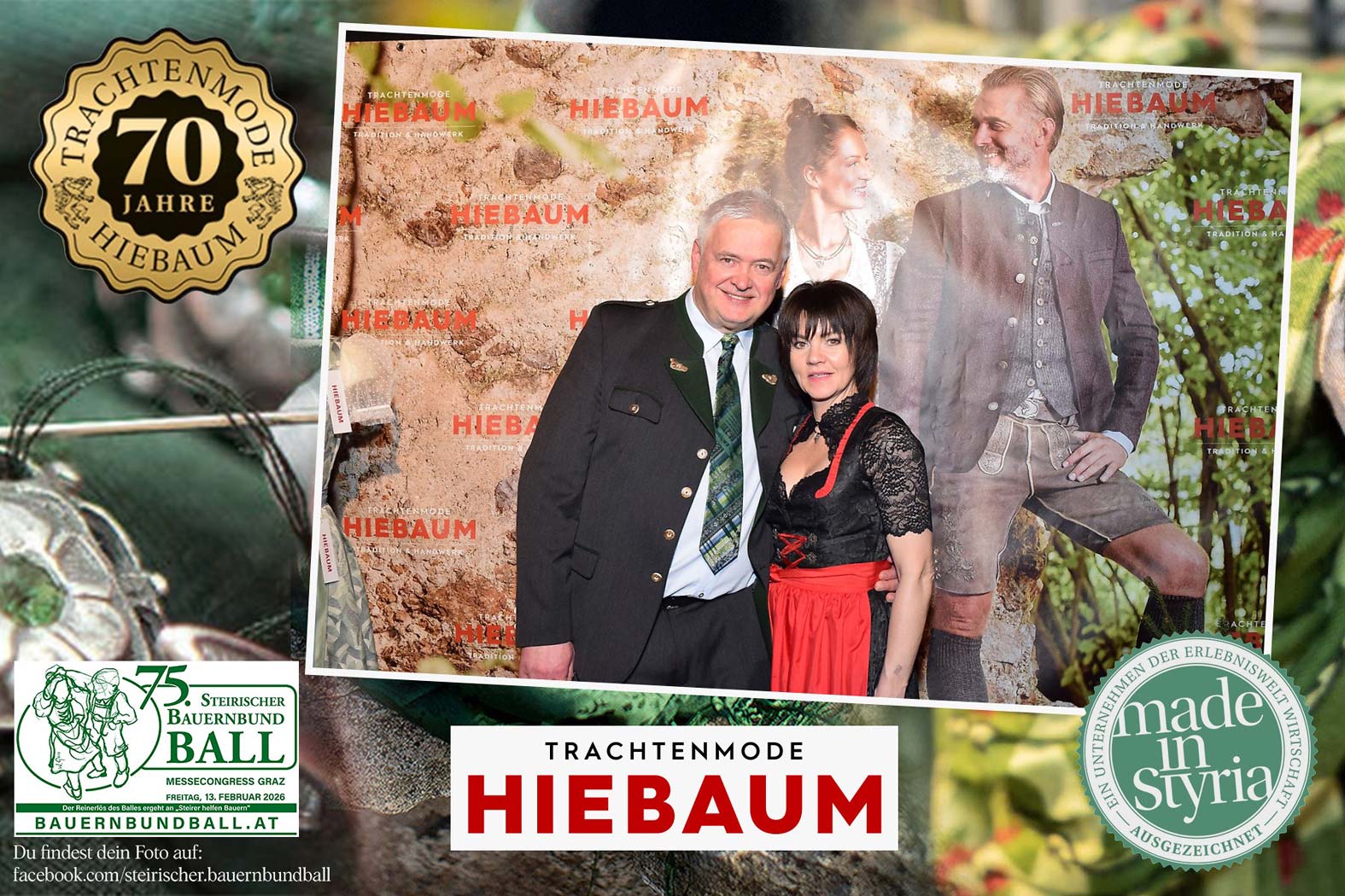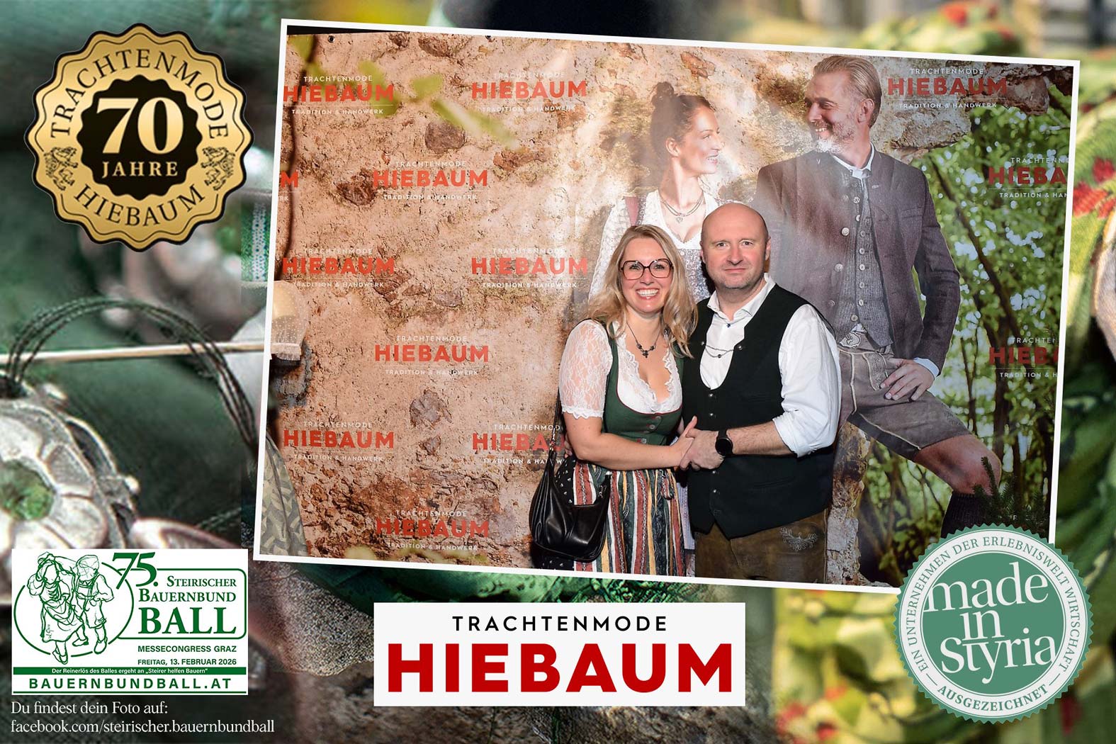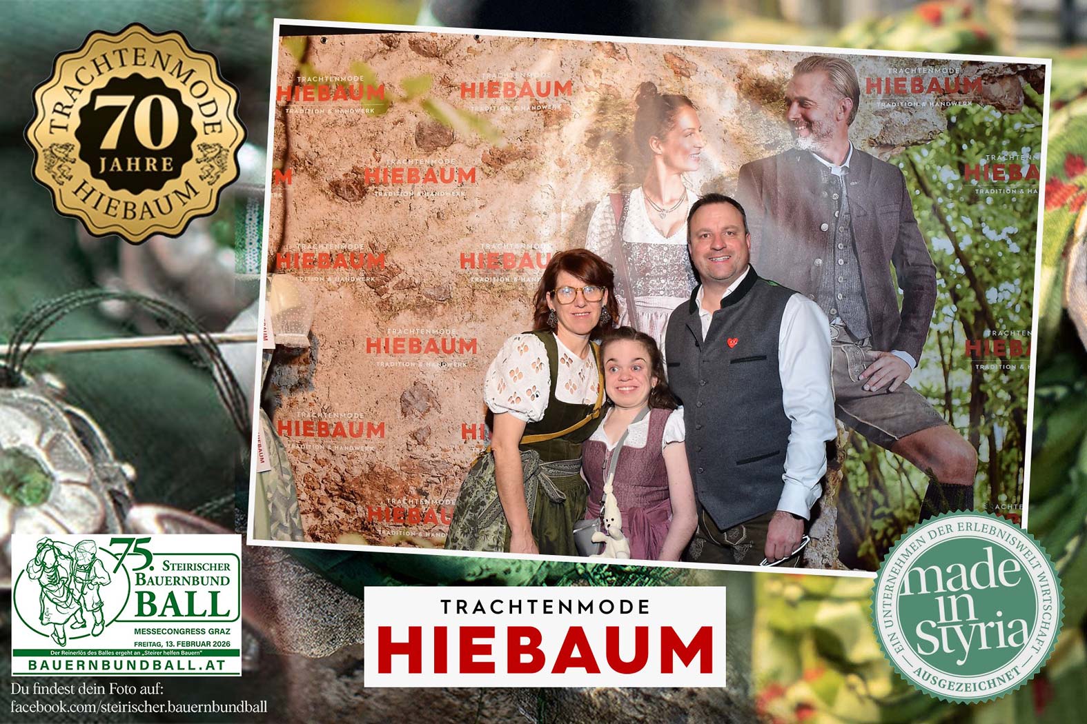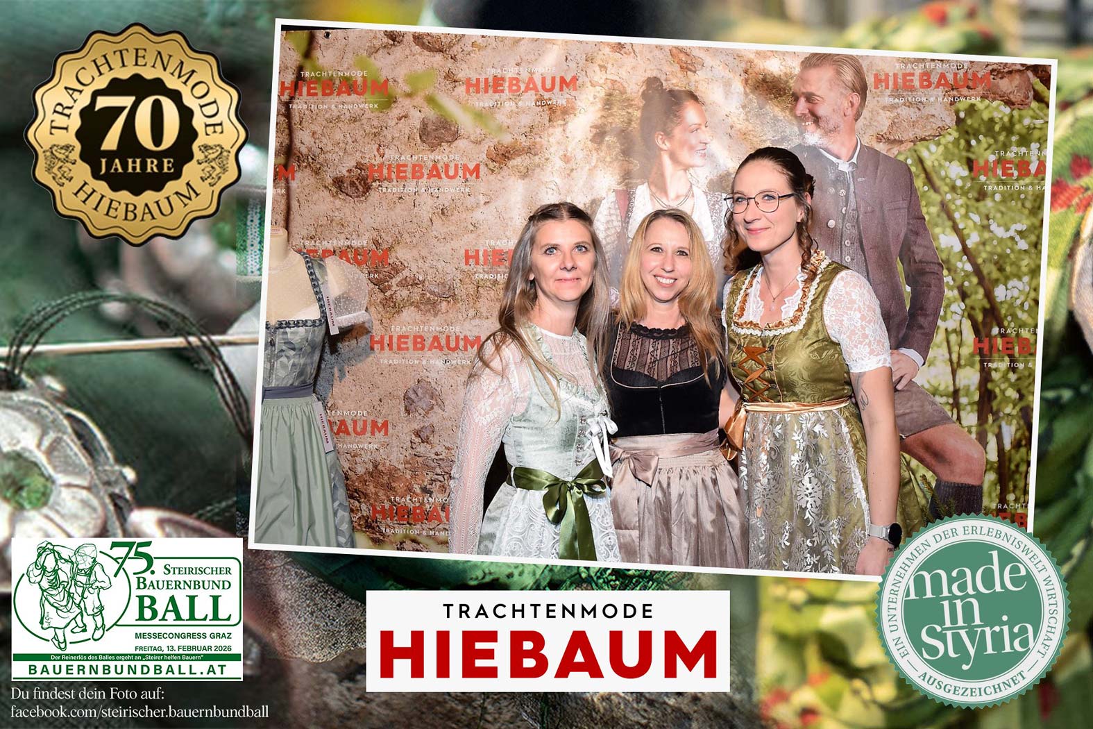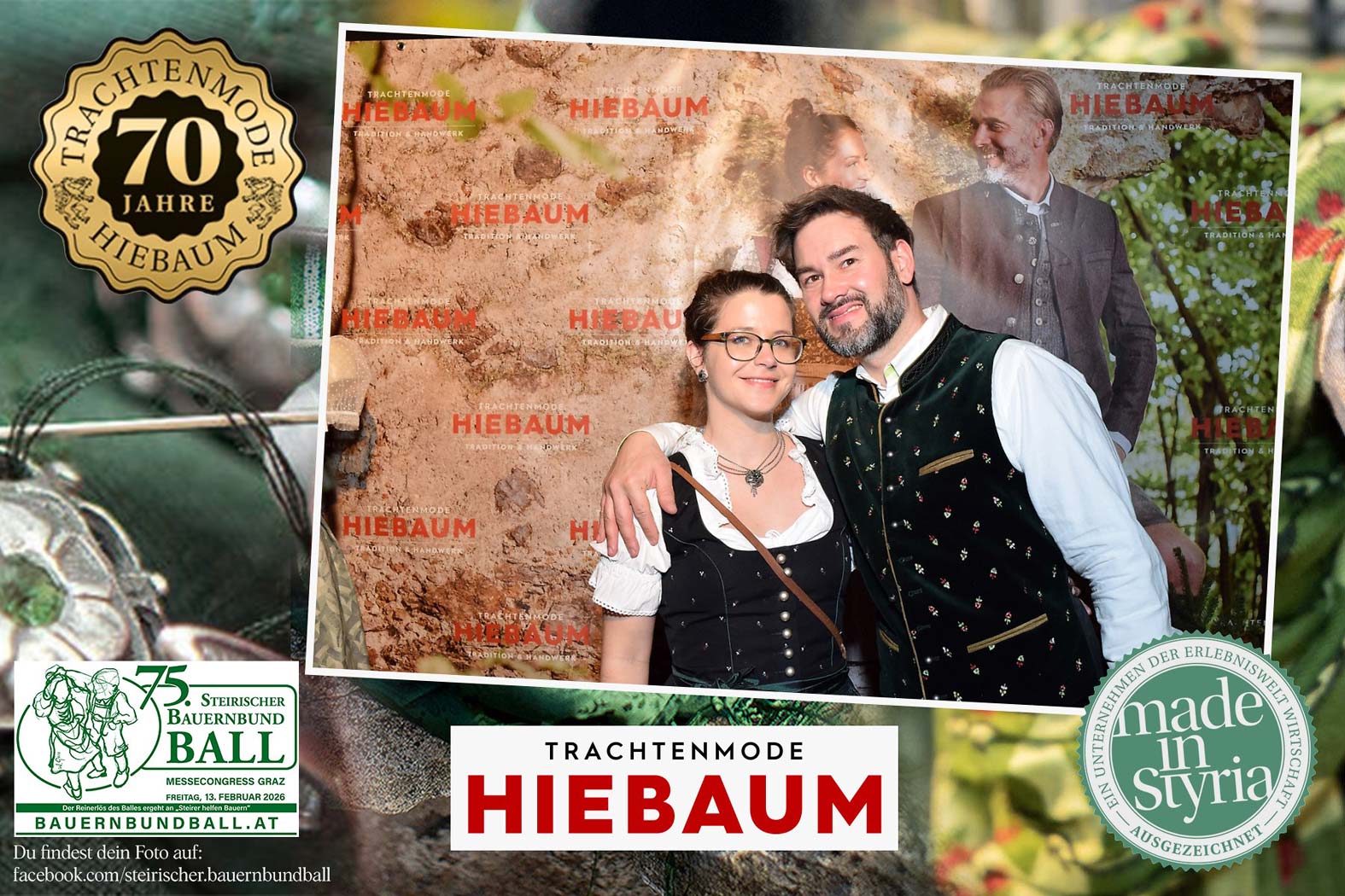Trachtenmode Hiebaum war offizieller Partner des steirischen Bauernbundballs 2026. Zahlreiche Besucher haben sich in unserer Fotobox am Bauernbundball fotografieren lassen.