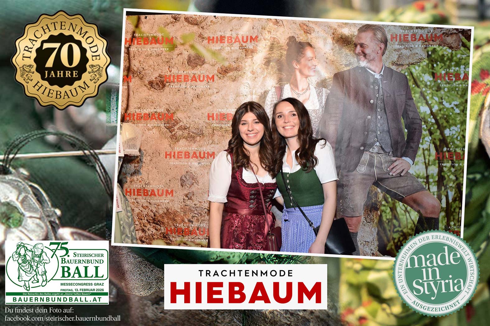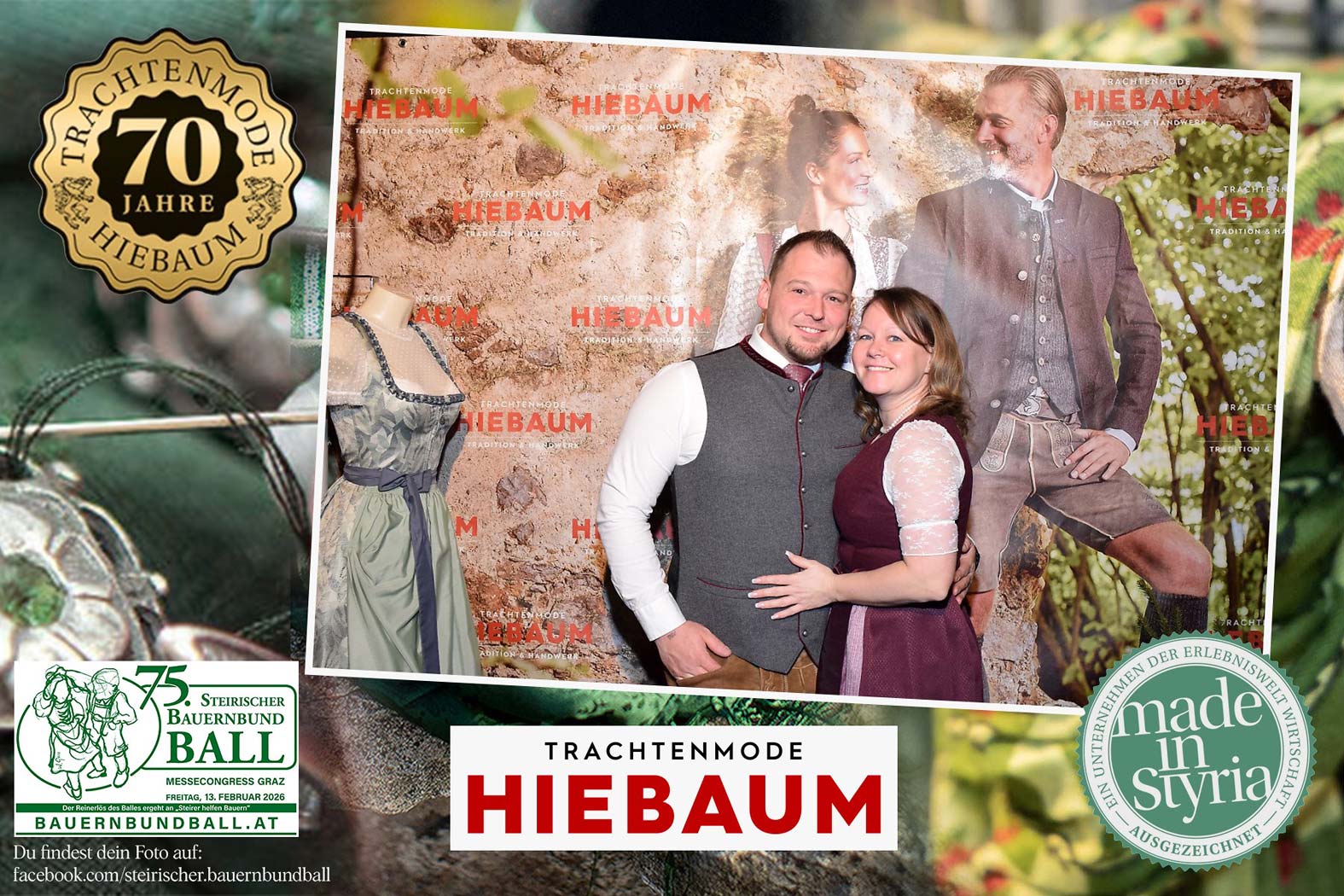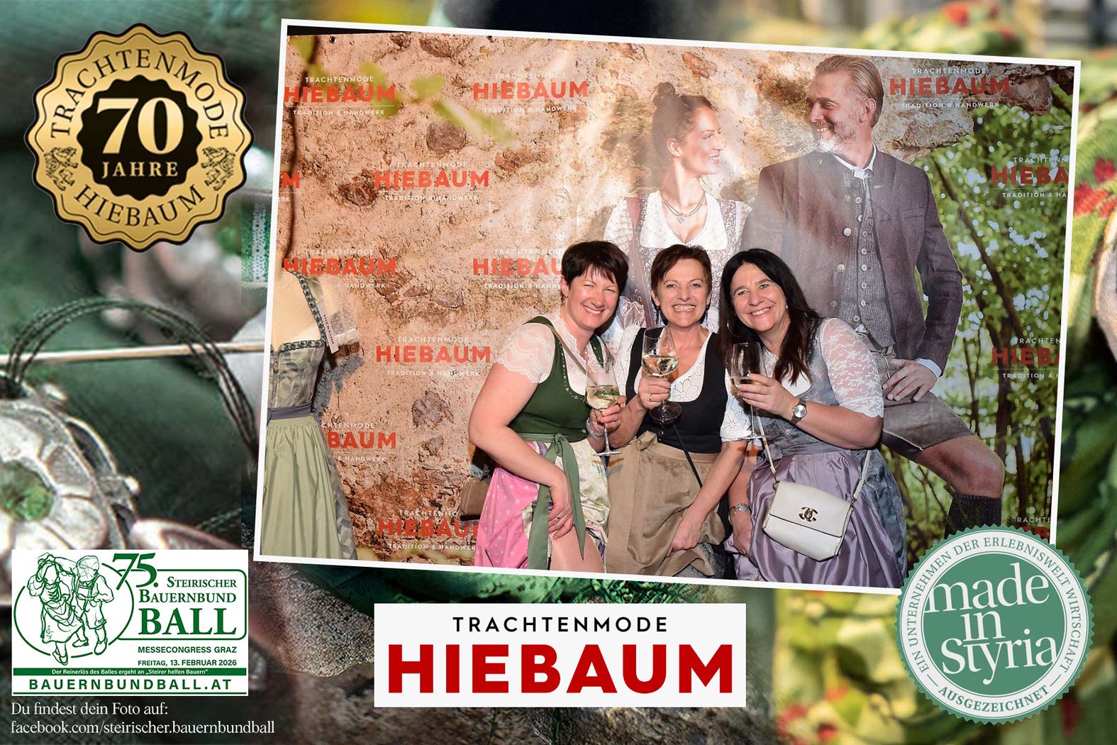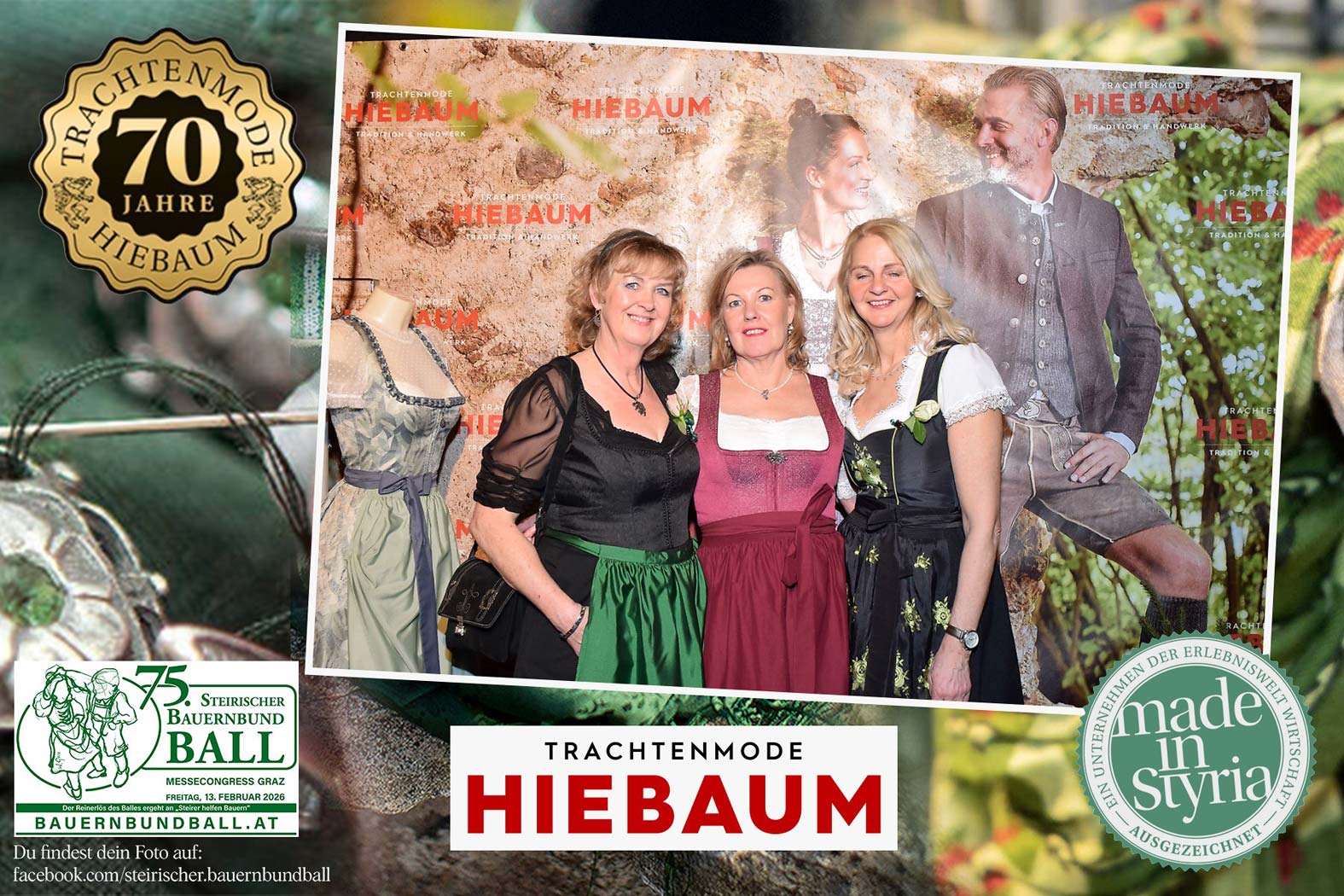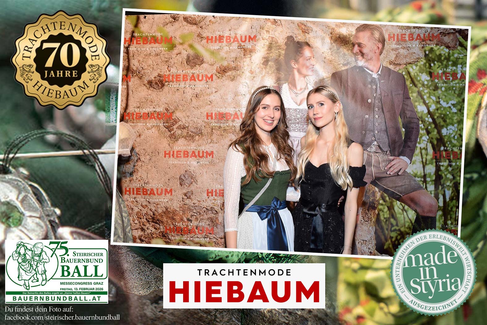 Trachtenmode Hiebaum war offizieller Partner des steirischen Bauernbundballs 2026. Zahlreiche Besucher haben sich in unserer Fotobox am Bauernbundball fotografieren lassen.