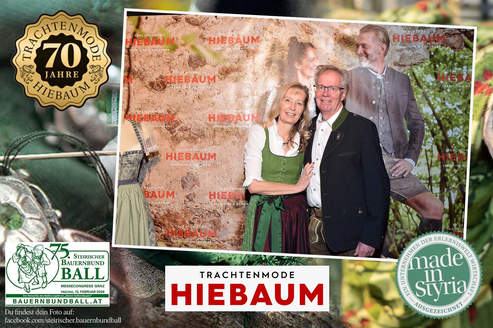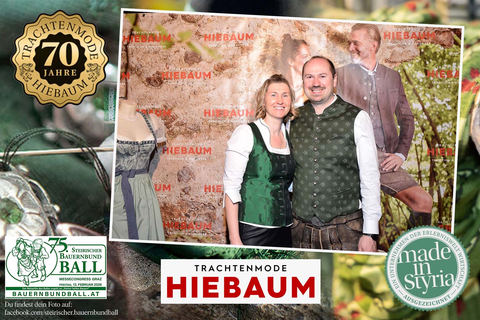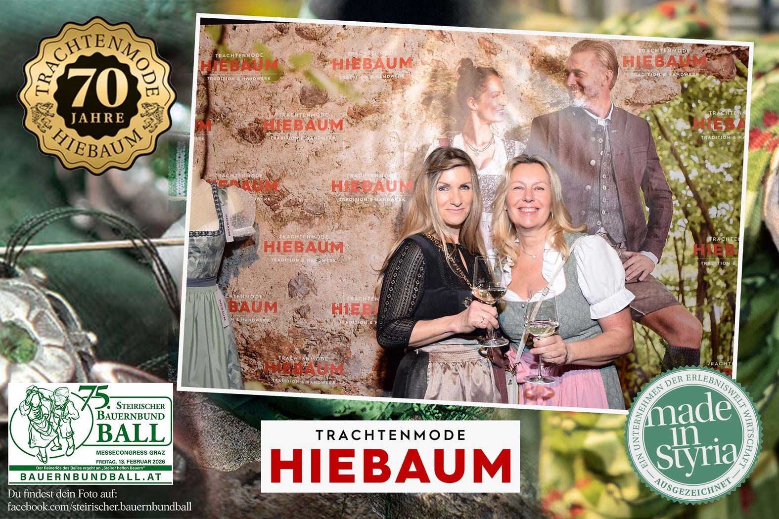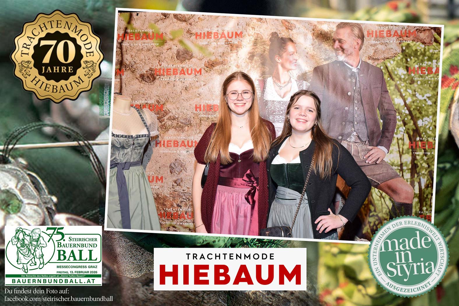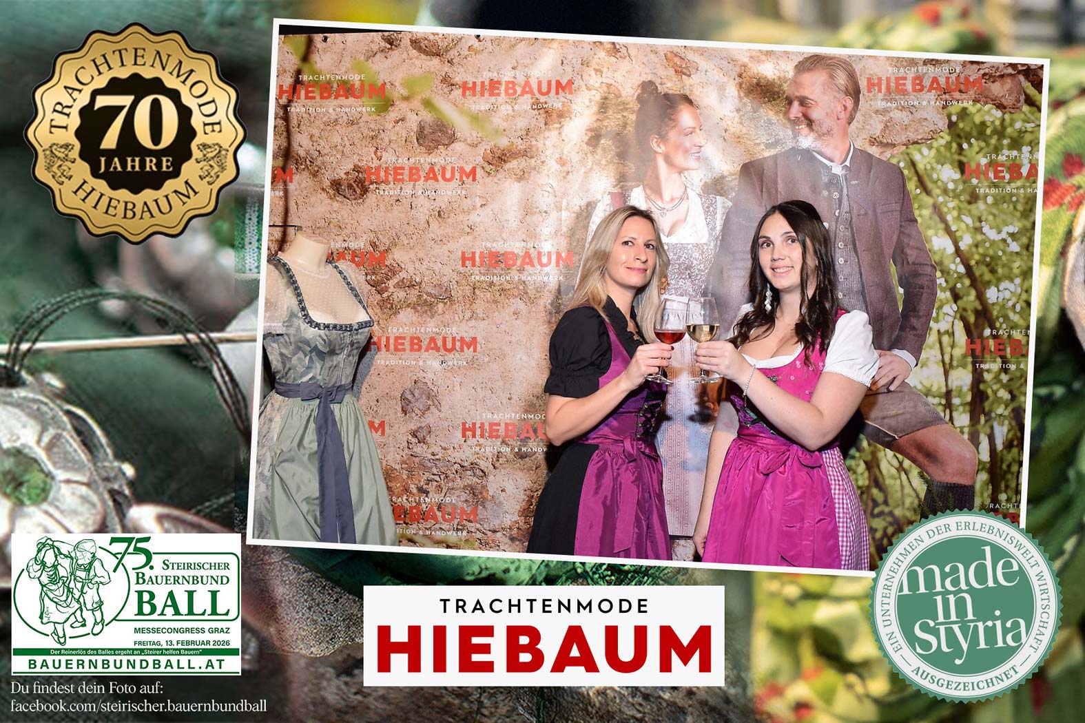Trachtenmode Hiebaum war offizieller Partner des steirischen Bauernbundballs 2026. Zahlreiche Besucher haben sich in unserer Fotobox am Bauernbundball fotografieren lassen.