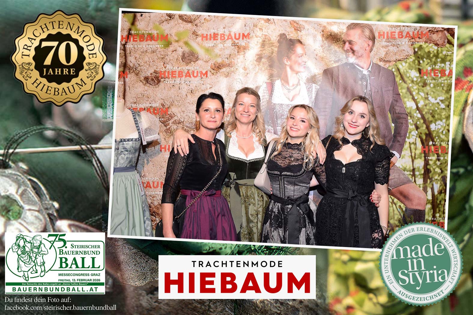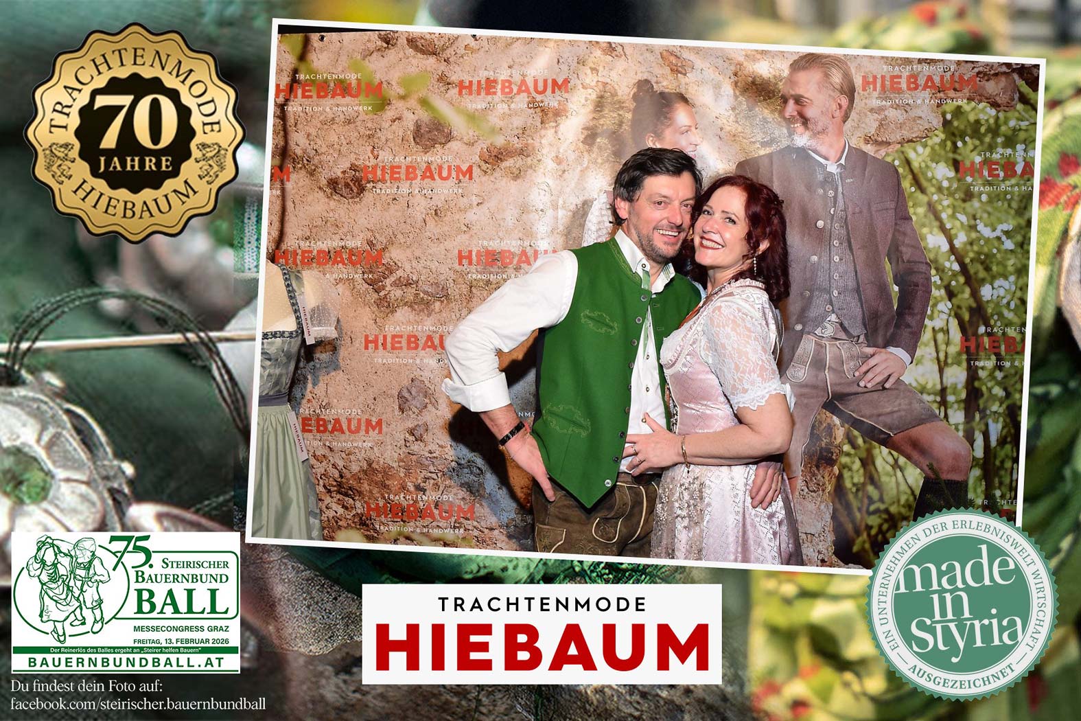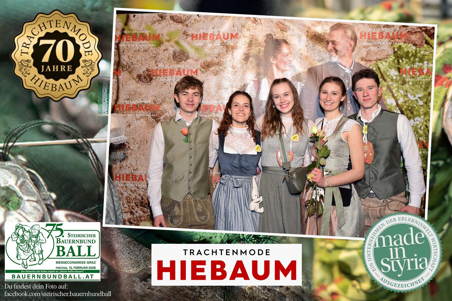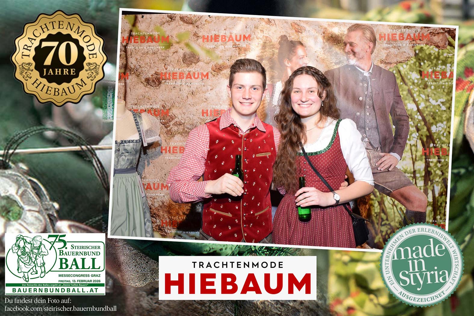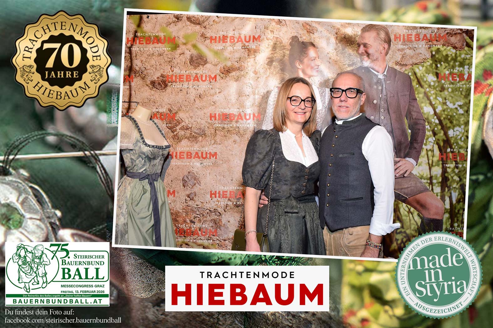 Trachtenmode Hiebaum war offizieller Partner des steirischen Bauernbundballs 2026. Zahlreiche Besucher haben sich in unserer Fotobox am Bauernbundball fotografieren lassen.