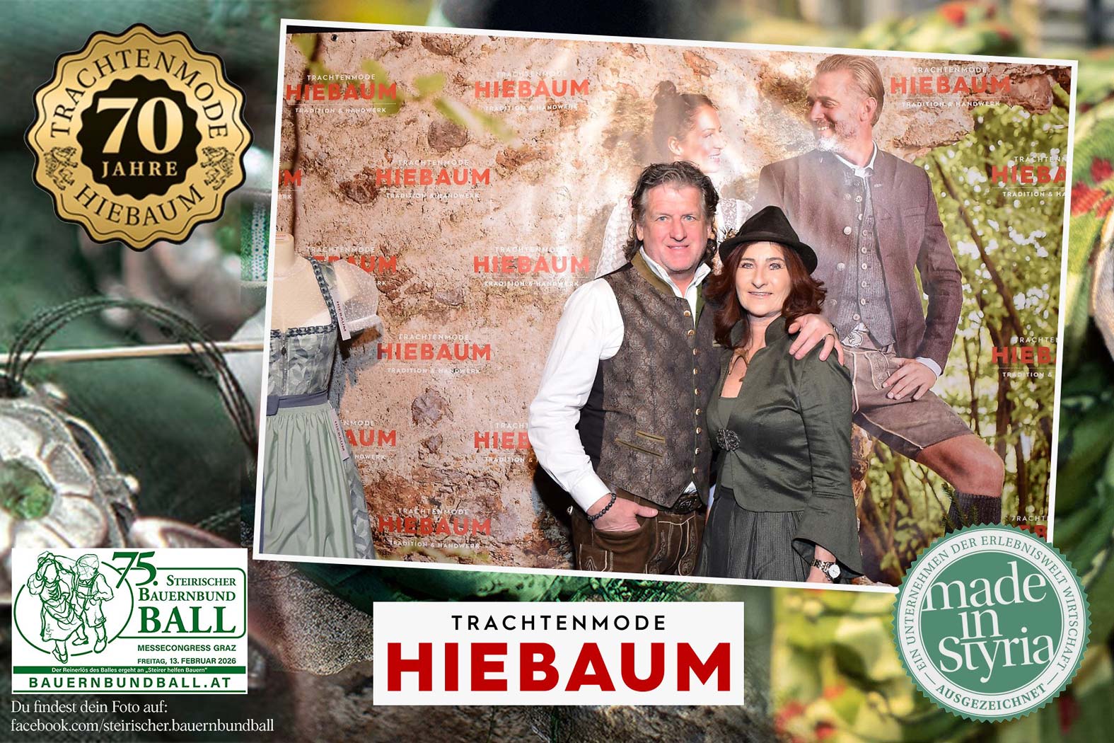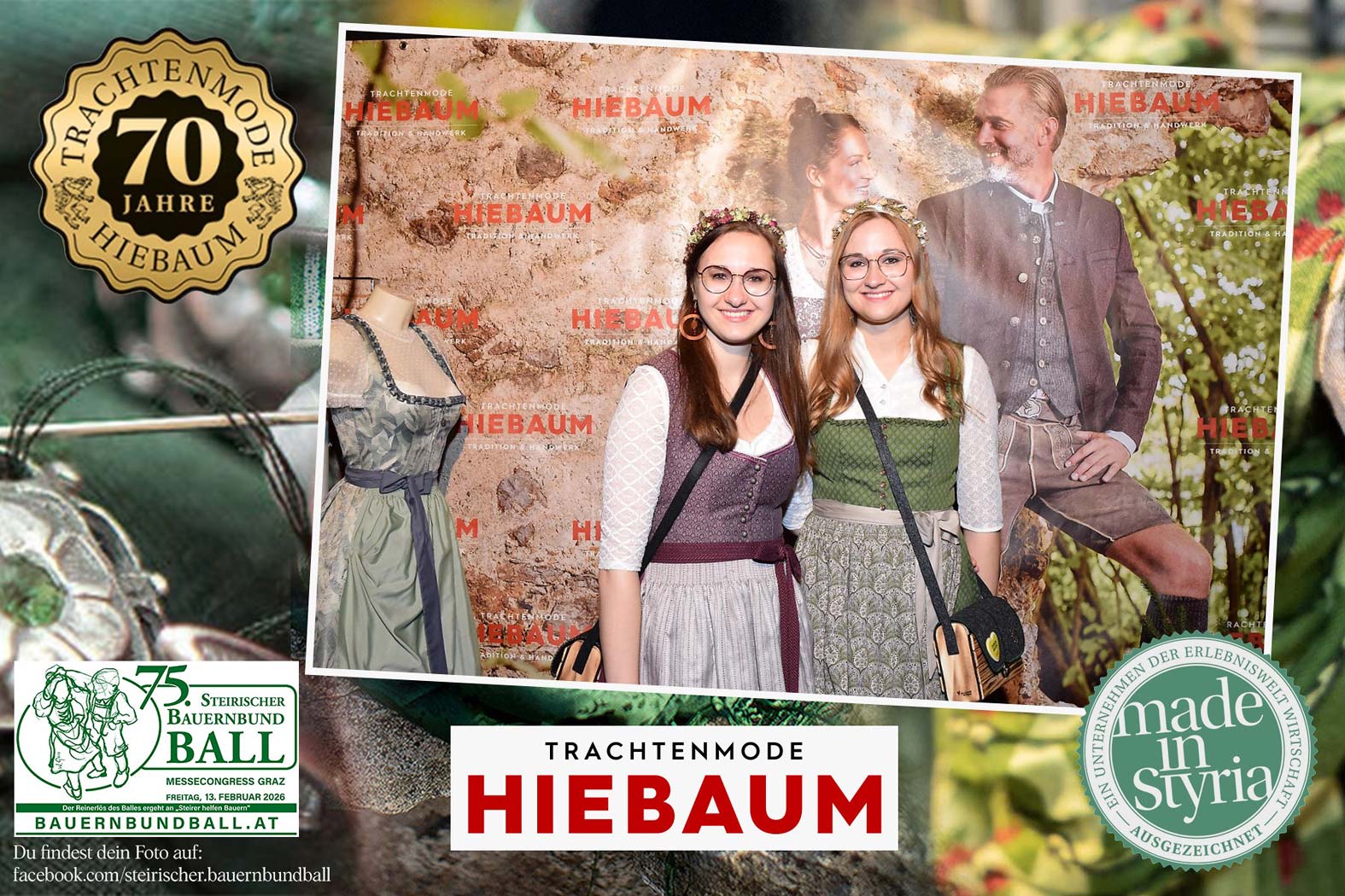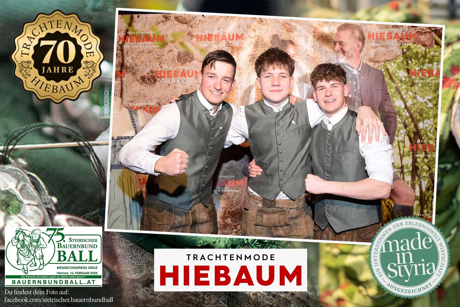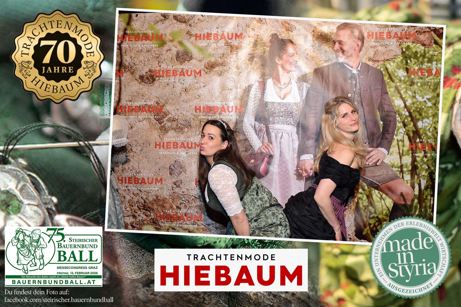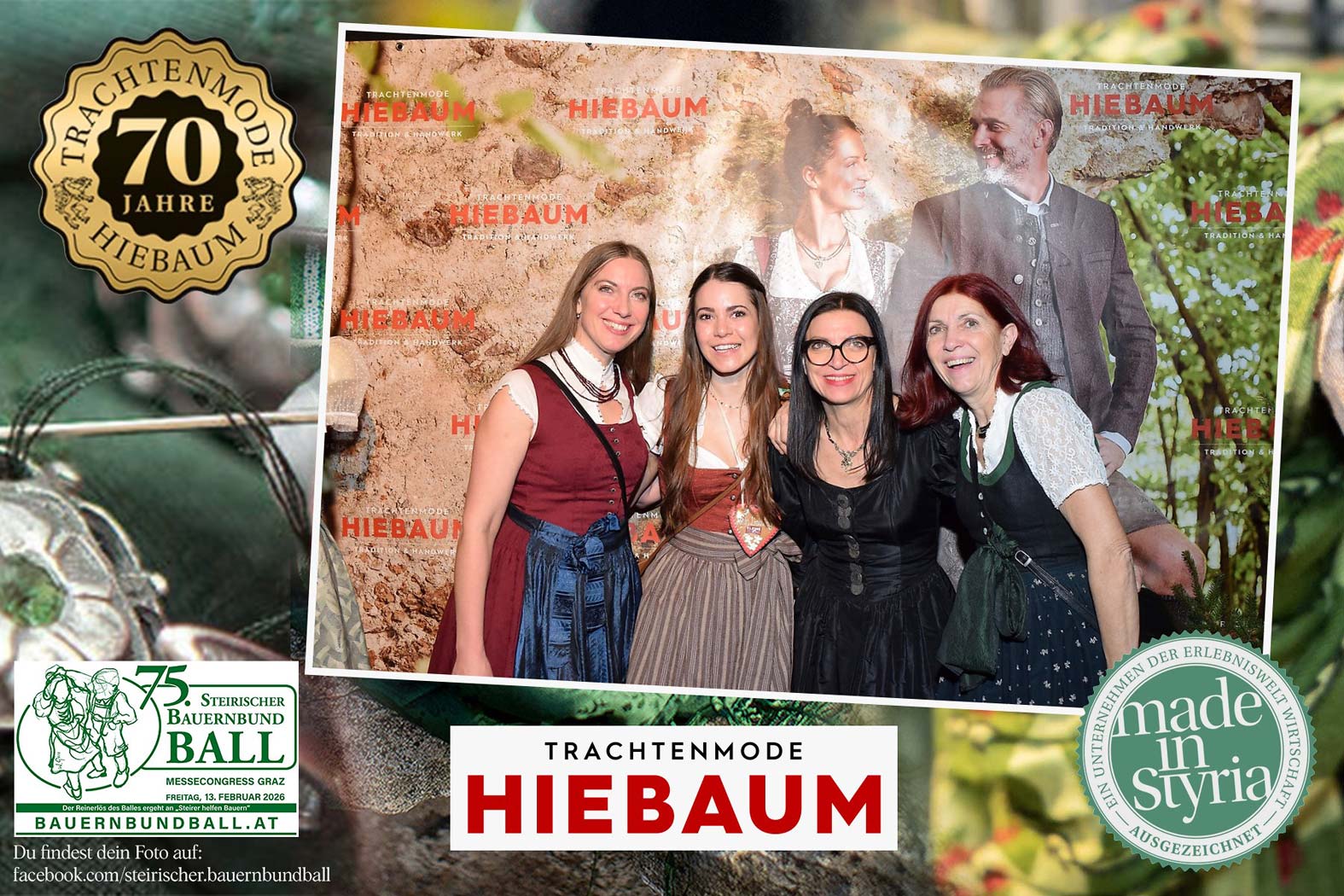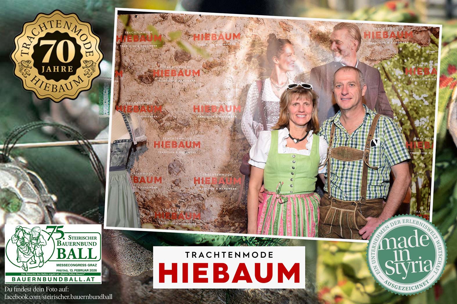 Trachtenmode Hiebaum war offizieller Partner des steirischen Bauernbundballs 2026. Zahlreiche Besucher haben sich in unserer Fotobox am Bauernbundball fotografieren lassen.