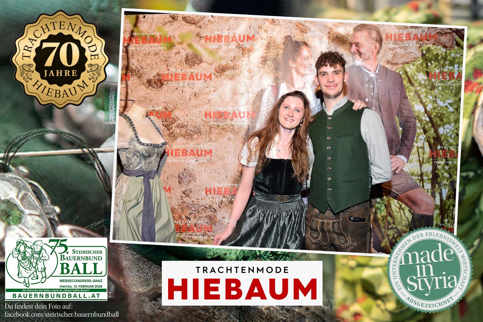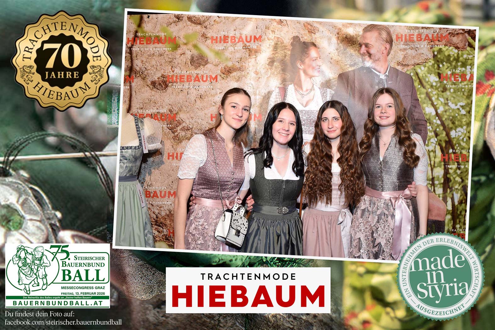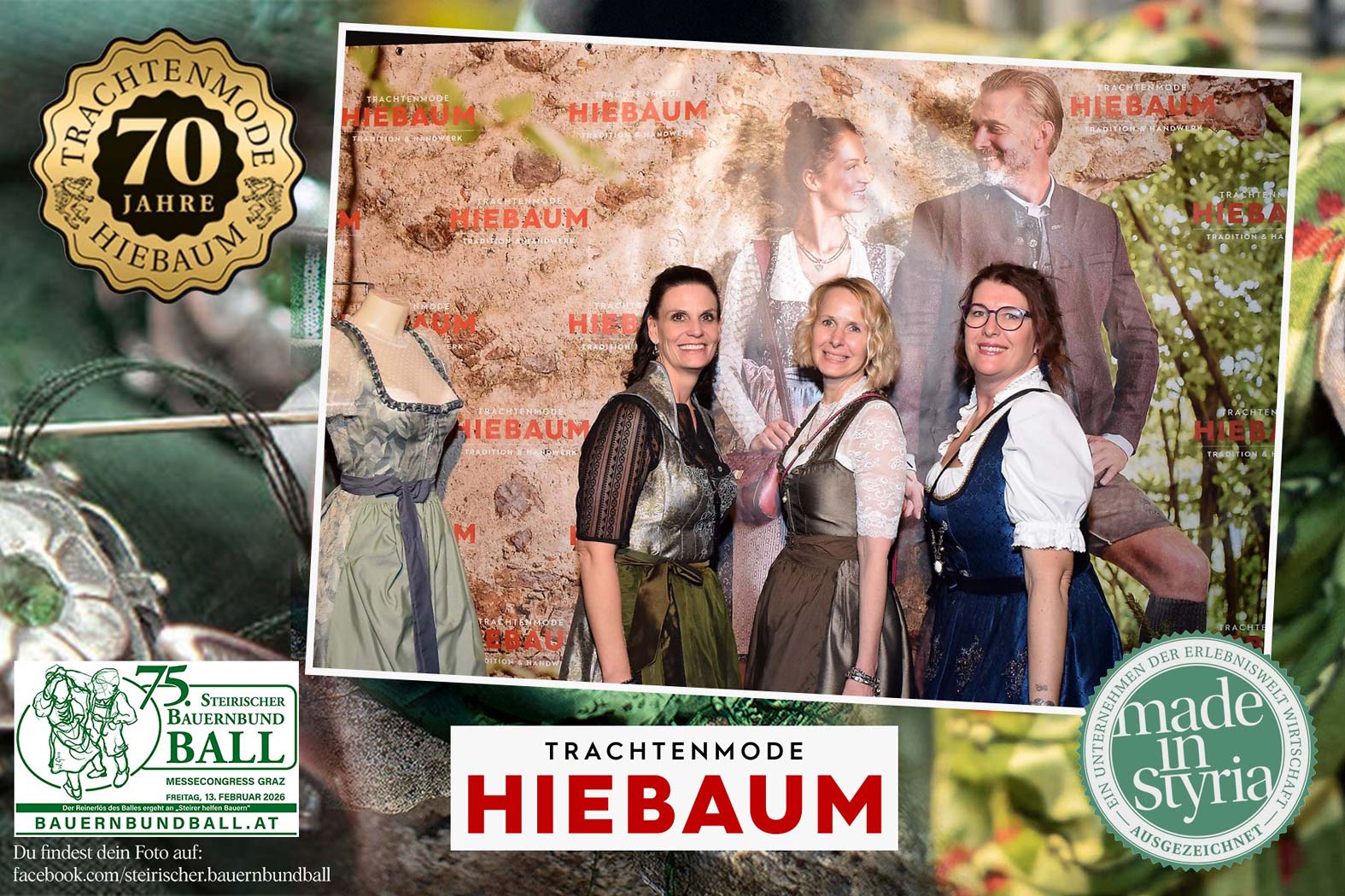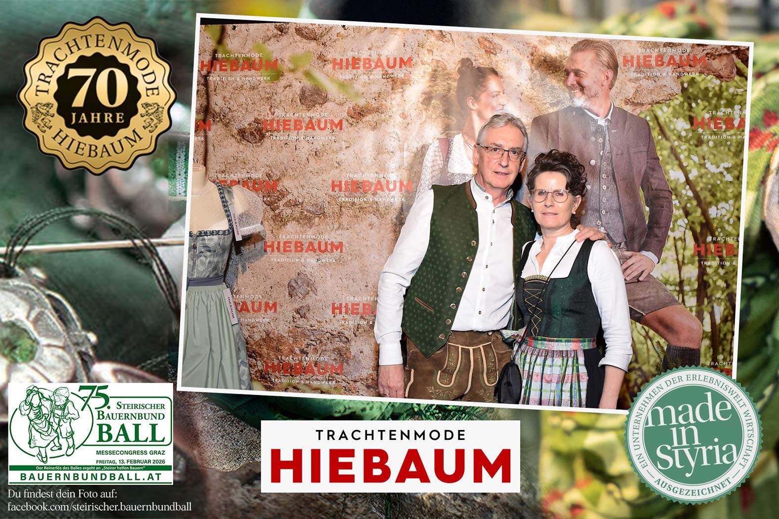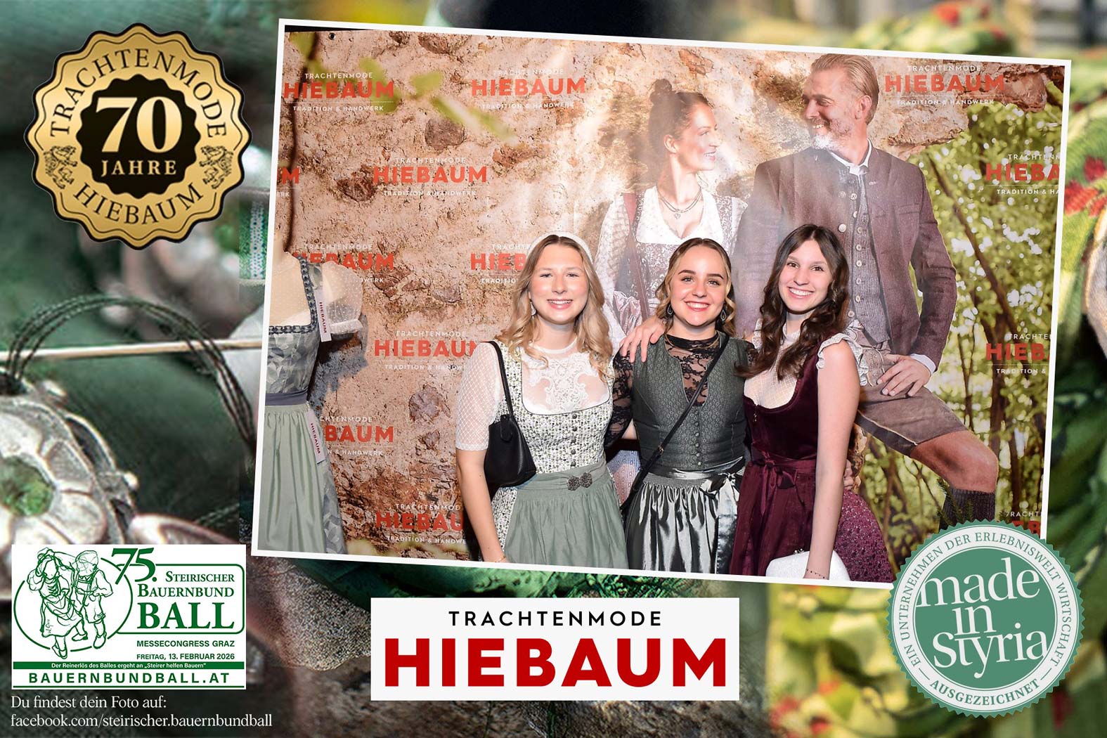 Trachtenmode Hiebaum war offizieller Partner des steirischen Bauernbundballs 2026. Zahlreiche Besucher haben sich in unserer Fotobox am Bauernbundball fotografieren lassen.