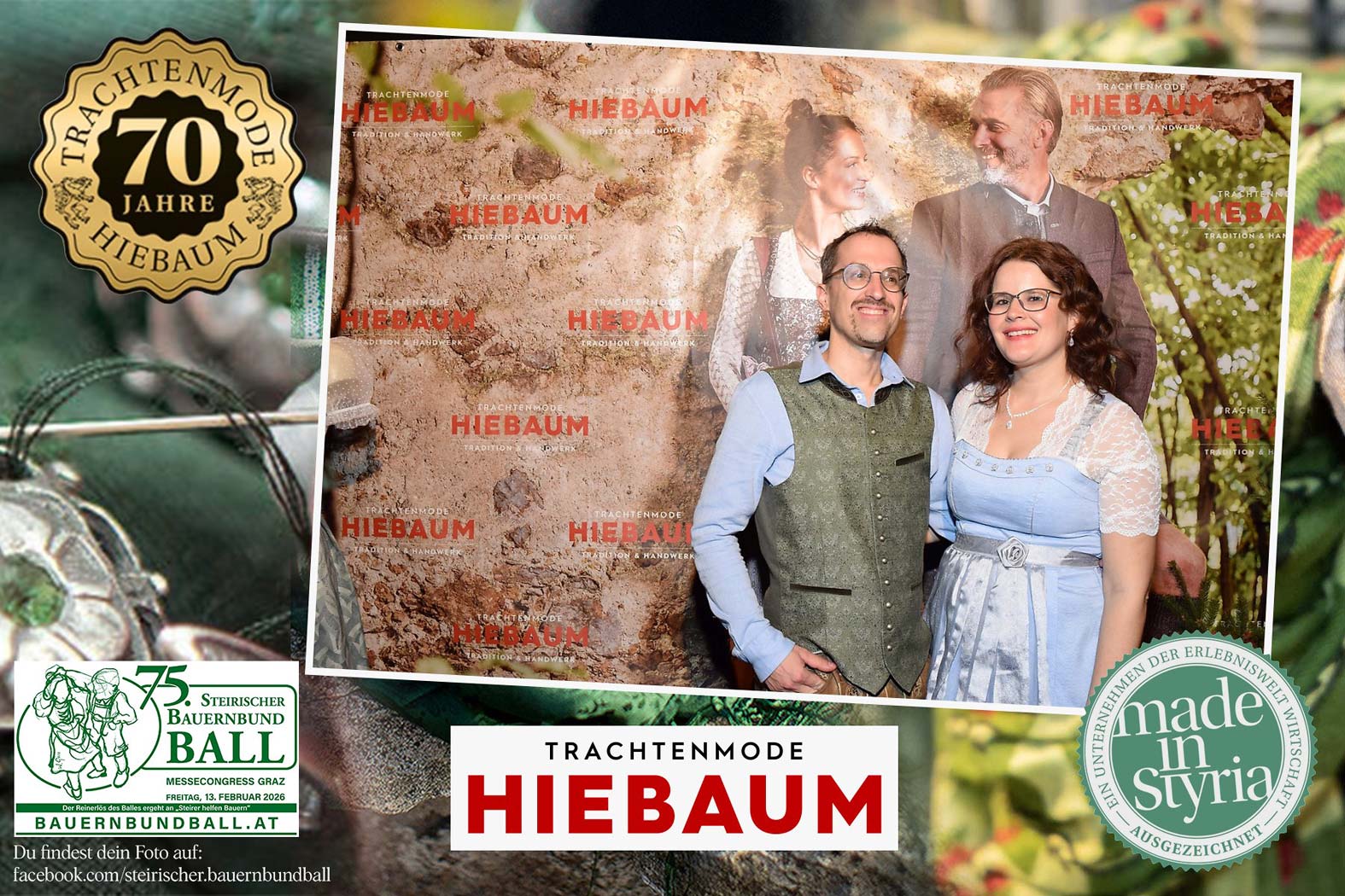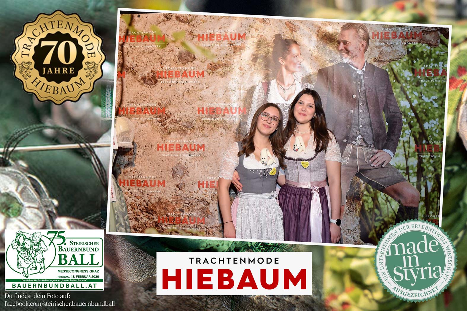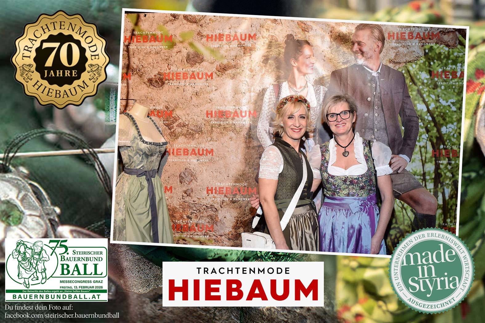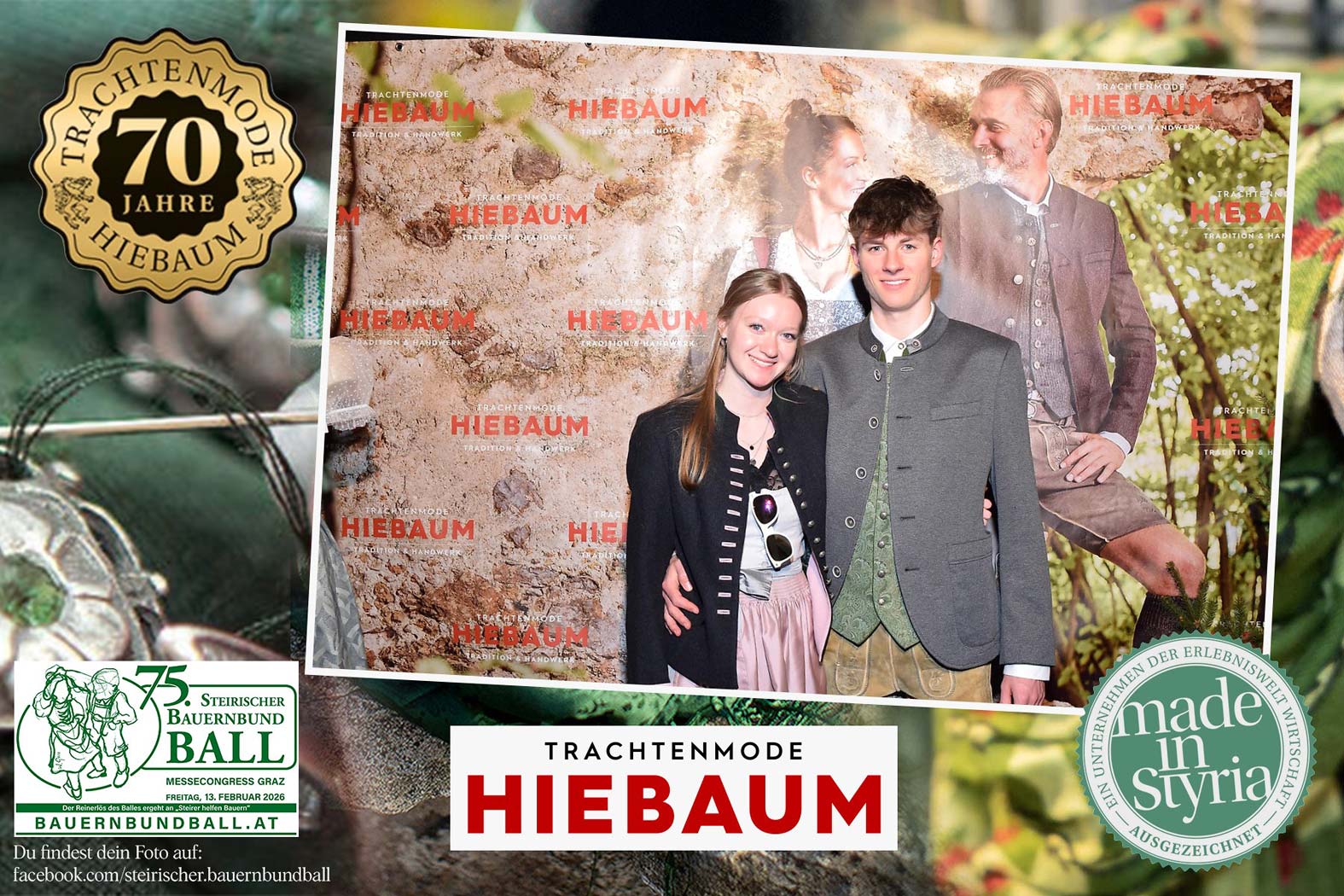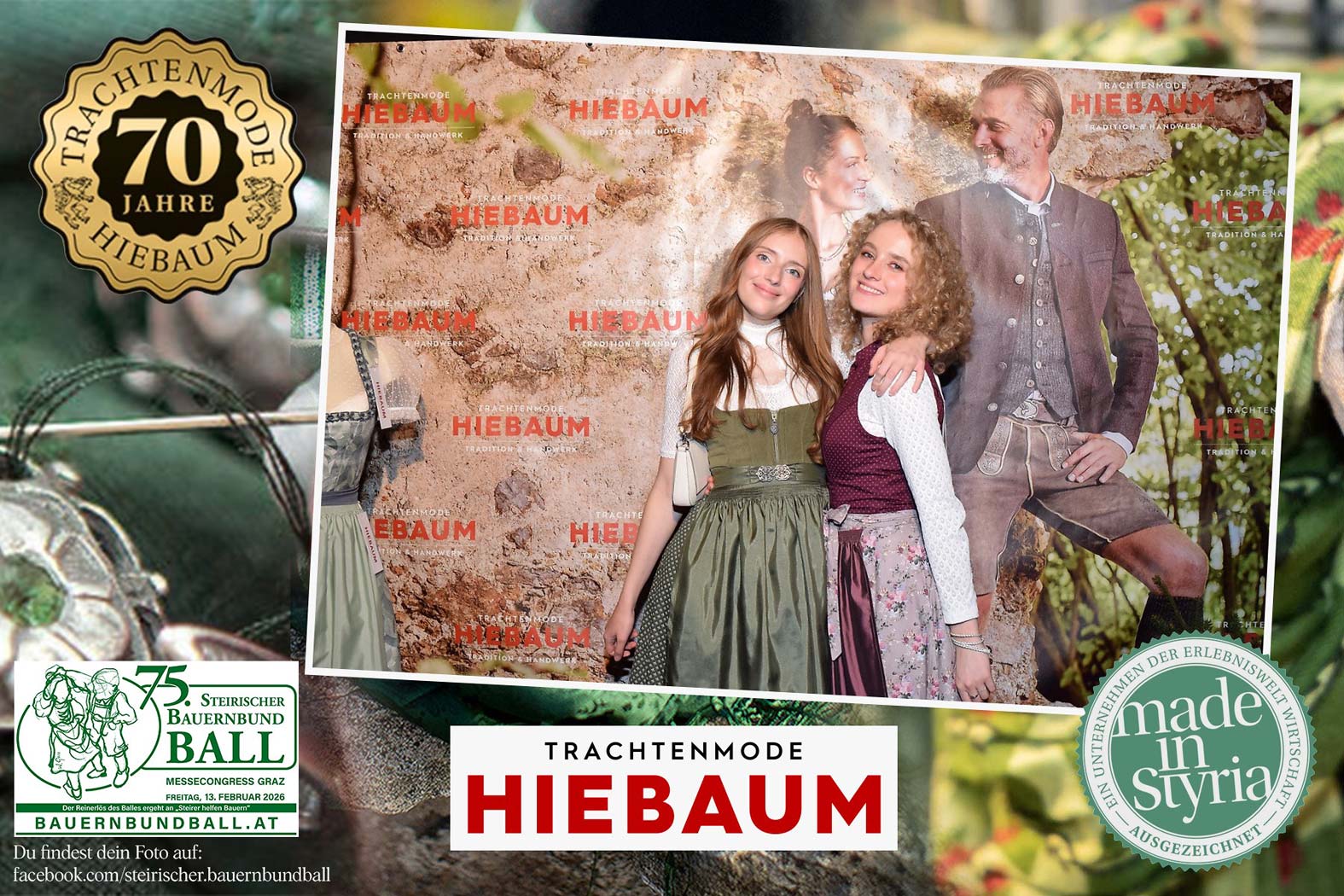 Trachtenmode Hiebaum war offizieller Partner des steirischen Bauernbundballs 2026. Zahlreiche Besucher haben sich in unserer Fotobox am Bauernbundball fotografieren lassen.